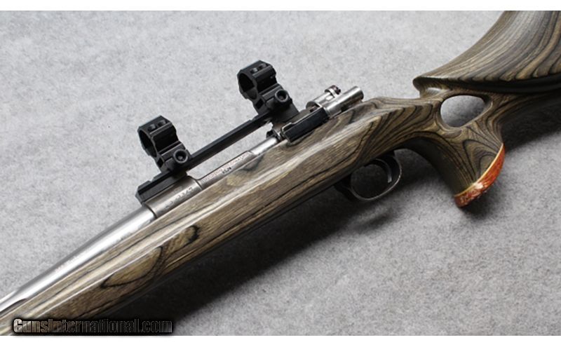 Description: Green laminate thumbhole stock with a stainless steel barrel. Minor chips and scrathes. Overall in very good condition. SOLD Caliber Info: .243 Winchester Metal Condition: Very Good Wood Condition: Good Exhibits Few Scratches and Chips Bore Condition: Very Good, Bright and Sharp Barrels: 24 Triggers: Factory Trigger Stock: Green Laminate Thumbhole Stock with a Raised Cheekpiece Stock Dimensions: LOP 14 Fore End: Green Laminate Butt Pad: Black Rubber Recoil Pad Weight: 10.45 lbs Sights: Scope Base and Rings Item Location: Farmington, UT |