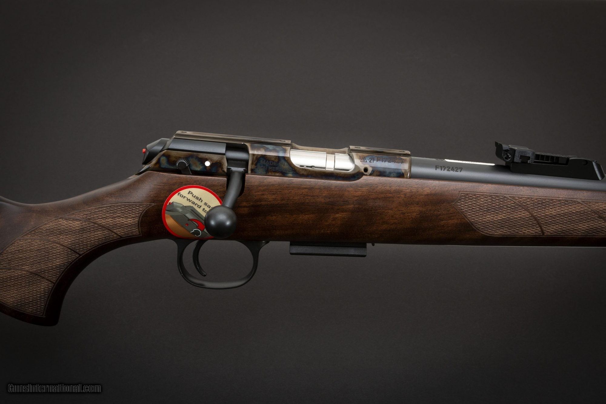 Description: Description: We were especially picky when considering a bolt-action addition to our Turnbull Finished series. While we proudly outfit the line with quintessentially American brands, we’re pleased to report that our choice – the CZ 457 Lux – already has a solid reputation among discerning shooters here in the States. The 457’s quality, features, ergonomics and accuracy make this .22 exceptionally well-suited to American tastes. Action The 457’s receiver is color case hardened using our restoration-grade, bone charcoal method. Our signature process imparts a range of blues and blondes rarely seen on modern firearms, a spectrum simply not achievable through other means of case hardening. The receiver’s slotted design provides shorter bolt travel and a smaller footprint compared to its Model 455 predecessor. It’s been slab-sided as well to further reduce weight. The 457’s designers also changed the bolt throw from 90 to 60 degrees, reducing the risk of interfering with optics should you choose that option over the rifle’s factory iron sights. Like its predecessor, the 457 boasts a user-interchangeable barrel system. Those familiar with the 455 will also be happy to know that the 457 sports a trigger mechanism that is fully adjustable for weight, pre-travel and over-travel. And perhaps the most anticipated improvement is the 457’s American-style, push-to-fire safety. Wood The elegant lines of the CZ 457 Lux are enhanced by its premium oiled Turkish walnut, sanded and finished by master craftsmen. Typically referred to as “hogback” in style, American shooters will consider the stock to be more in the Monte Carlo tradition with raised comb and cheekpiece, promoting proper head positioning for iron sight usage. This is a well-appointed rimfire for all levels of shooting enthusiast, and we’re thrilled to have the exceptional 457 Lux from CZ-USA added to our line of Turnbull Finished favorites. Contact us for more information and additional photographs. SOLD Rifle Caliber: .22 WMR (.22 Magnum) Manufacturer: CZ Model: 457 Lux Serial Number: F172427 Barrel Length: 24.8 Condition: New Action: Bolt Stock: Turkish Walnut LOP: 13-3/4" LOP Finish: Turnbull Restoration Bone Charcoal Color Case Hardening Weight: 6.1 lbs. Sights: Adjustable rear, Integrated 11mm Dovetail front Item Location: NY |