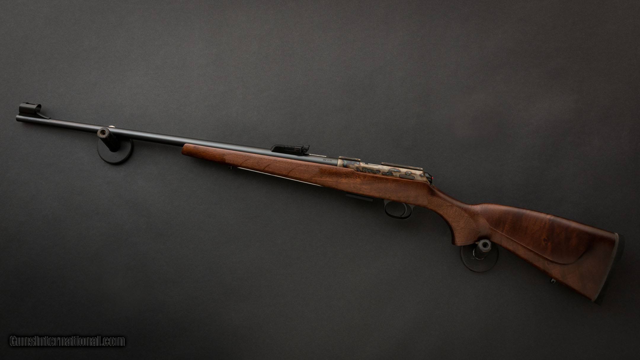 Description: Description: We were especially picky when considering a bolt-action addition to our Turnbull Finished series. While we proudly outfit the line with quintessentially American brands, we’re pleased to report that our choice – the CZ 457 Lux – already has a solid reputation among discerning shooters here in the States. The 457’s quality, features, ergonomics and accuracy make this .22 exceptionally well-suited to American tastes. Action The 457’s receiver is color case hardened using our restoration-grade, bone charcoal method. Our signature process imparts a range of blues and blondes rarely seen on modern firearms, a spectrum simply not achievable through other means of case hardening. The receiver’s slotted design provides shorter bolt travel and a smaller footprint compared to its Model 455 predecessor. It’s been slab-sided as well to further reduce weight. The 457’s designers also changed the bolt throw from 90 to 60 degrees, reducing the risk of interfering with optics should you choose that option over the rifle’s factory iron sights. Like its predecessor, the 457 boasts a user-interchangeable barrel system. Those familiar with the 455 will also be happy to know that the 457 sports a trigger mechanism that is fully adjustable for weight, pre-travel and over-travel. And perhaps the most anticipated improvement is the 457’s American-style, push-to-fire safety. Wood The elegant lines of the CZ 457 Lux are enhanced by its premium oiled Turkish walnut, sanded and finished by master craftsmen. Typically referred to as “hogback” in style, American shooters will consider the stock to be more in the Monte Carlo tradition with raised comb and cheekpiece, promoting proper head positioning for iron sight usage. This is a well-appointed rimfire for all levels of shooting enthusiast, and we’re thrilled to have the exceptional 457 Lux from CZ-USA added to our line of Turnbull Finished favorites. Contact us for more information and additional photographs. SOLD Rifle Caliber: .22 WMR (.22 Magnum) Manufacturer: CZ Model: 457 Lux Serial Number: F172433 Barrel Length: 24.8 Condition: New Action: Bolt Stock: Turkish Walnut LOP: 13-3/4" LOP Finish: Turnbull Bone Charcoal Case Hardening Weight: 6.1 lbs. Sights: Adjustable rear, Integrated 11mm Dovetail front Item Location: NY |