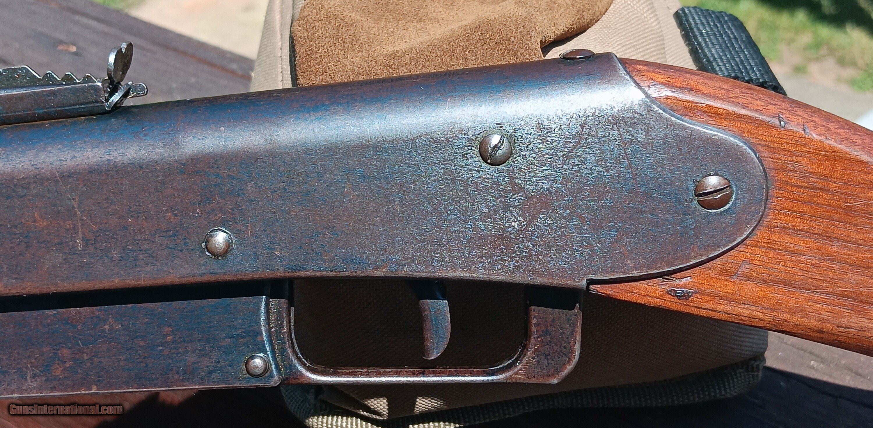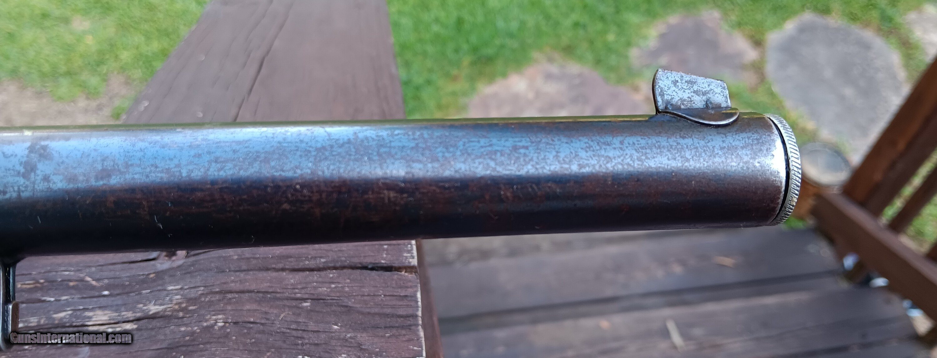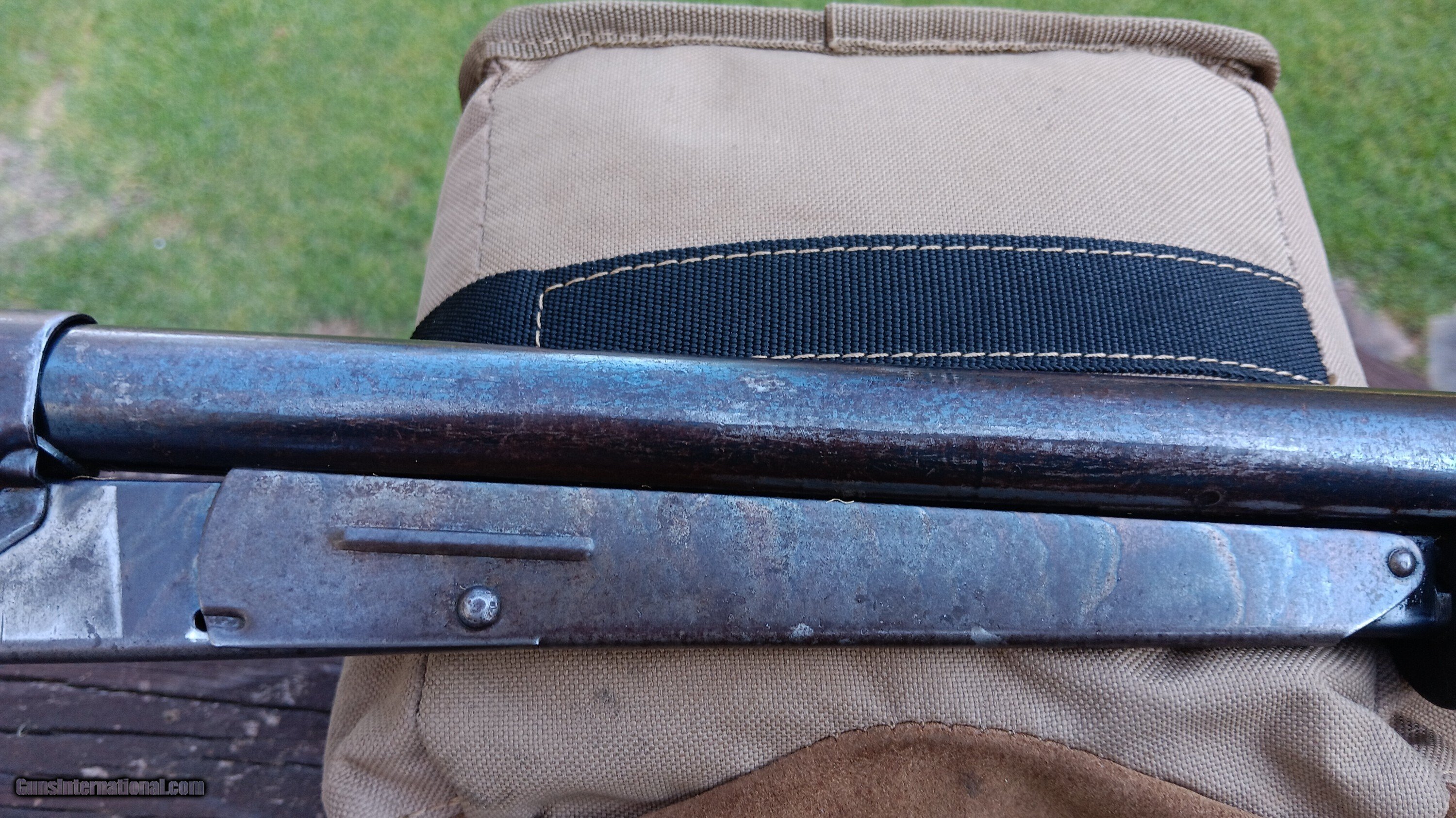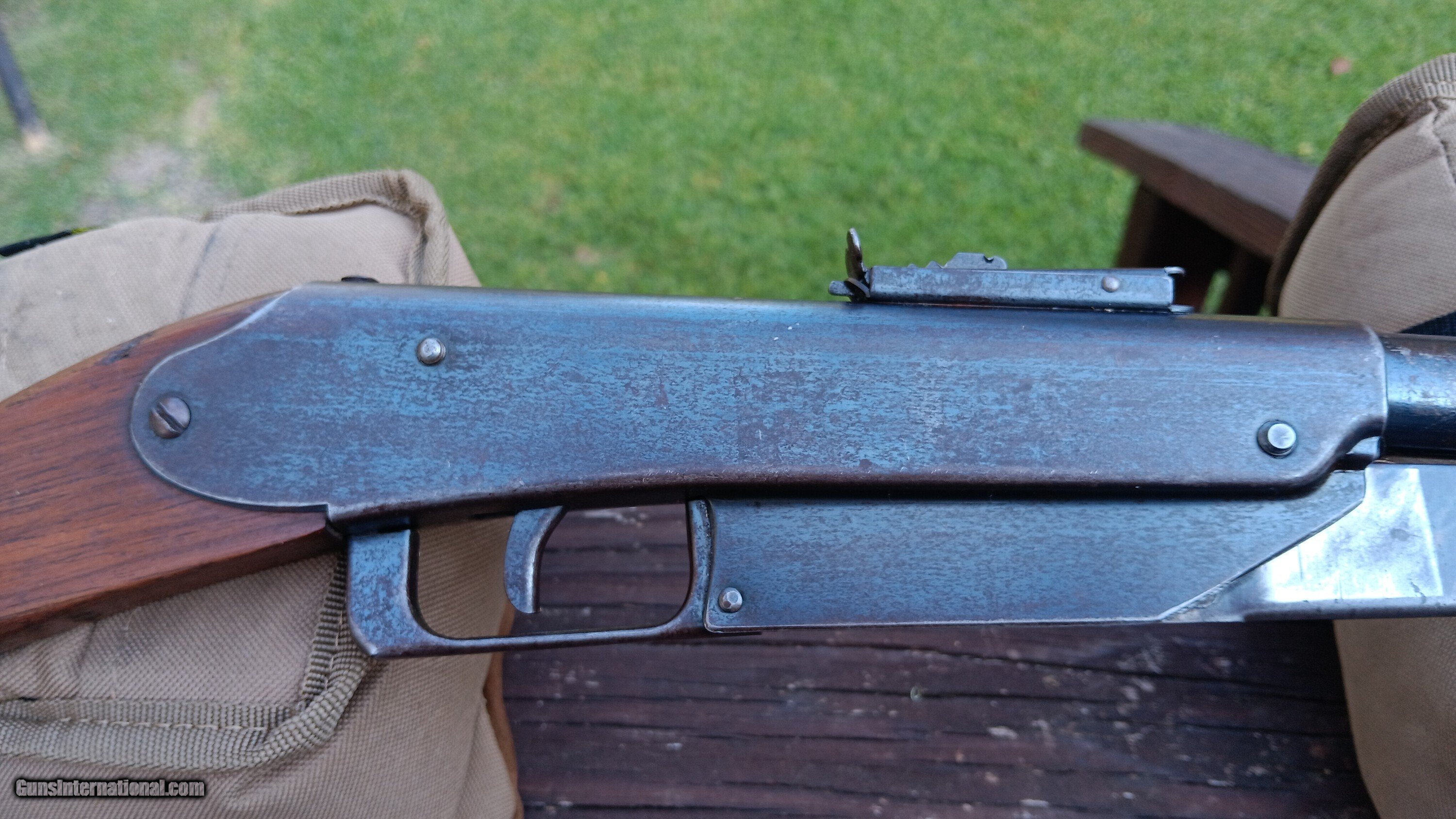 Description: Nostalgia...I love it! Here is an iconic Daisy No. 25 made sometime 1917 to 1926. Staight grip WALNUT stock, Case colored levers, metal has 30% blue, balance a brown patina. I have pictures in sunlight and ambient light because it looks so different in each. New Daisy main spring newly installed, and leather piston re-oiled. Shoots very strong and though not chronographed, it will easily shoot through the bottom of an aluminum can and zips right through both sides no problem! Shoots lead BBs and I am including a tin of Gamo lead BBs with the rifle. Tell your mom that lead BBs wont ricochet and shoot your eye out, kid! Really nice quality and you don't find anything like it today, even the 25s still made (in China). Curio/Relic: Yes Rifle Caliber: .177 (Air Rifle) Manufacturer: Daisy Model: 25 Serial Number: na Barrel Length: 18 Bore Info: Smoothbore Condition: VG Re-sealed Metal Condition: Vg+ Wood Condition: VG+ Weight: 3 lbs Sights: Adjustable Rear Manufacture Date: 1917-1926 Item Location: SC Price: $195.00 Contact Seller |