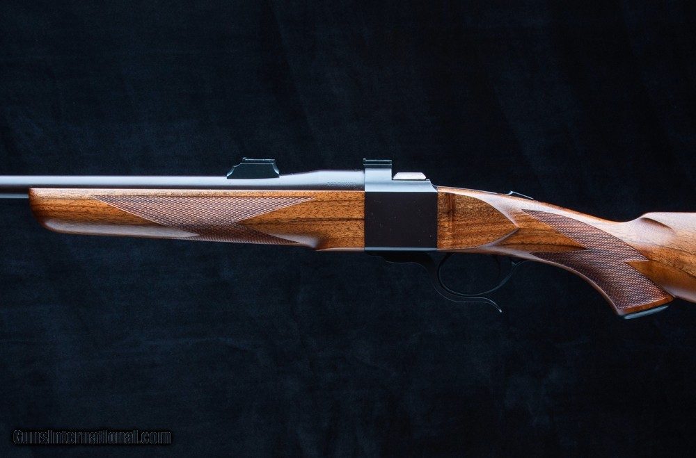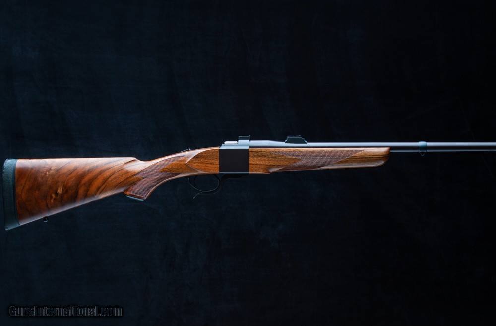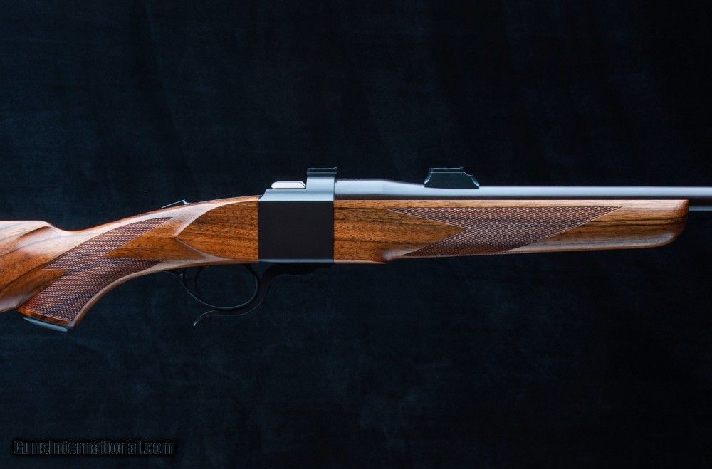 Description: This Dakota Arms Model 10 in 7mm Dakota based on Dakota's proprietary falling block action in a matte black finish w/ a tang safety, barrel band sling swivel and rear ball sling stud. English walnut stock and forend with forend point wrap checkering and 2 panel point checkering on the pistol grip, Dakota Arms grip cap, 1" black rubber pad, comes with muzzle break and Talley bases. Rifle Caliber: .300 Dakota Manufacturer: Dakota Arms Model: Model 10 Serial Number: 0238 Barrel Length: 24" with the break Bore Condition: Perfect Action: Falling Block LOP: 13 5/8 Finish: Blue Weight: 7.4 lbs Price: $4,495.00 Contact Seller |