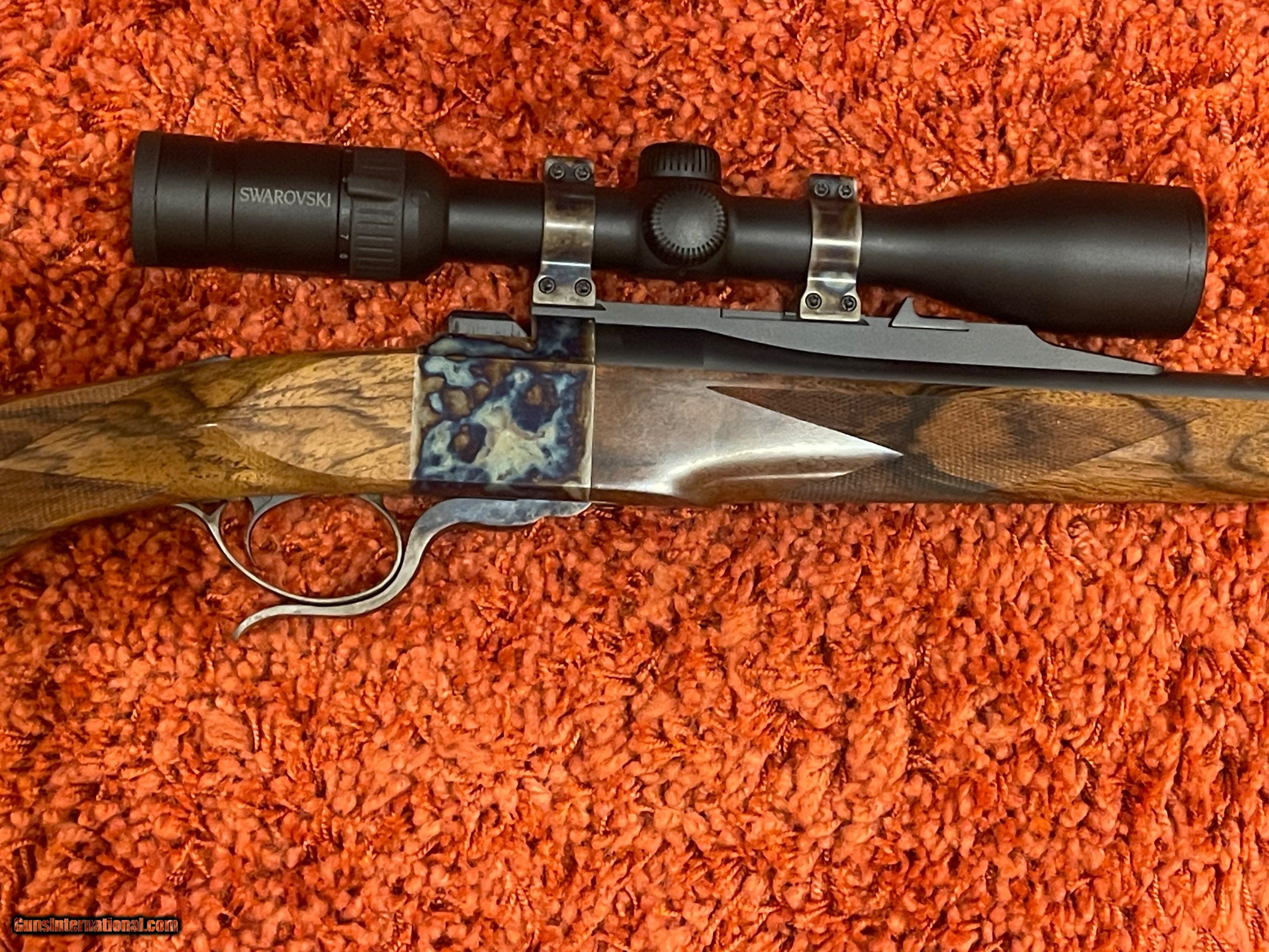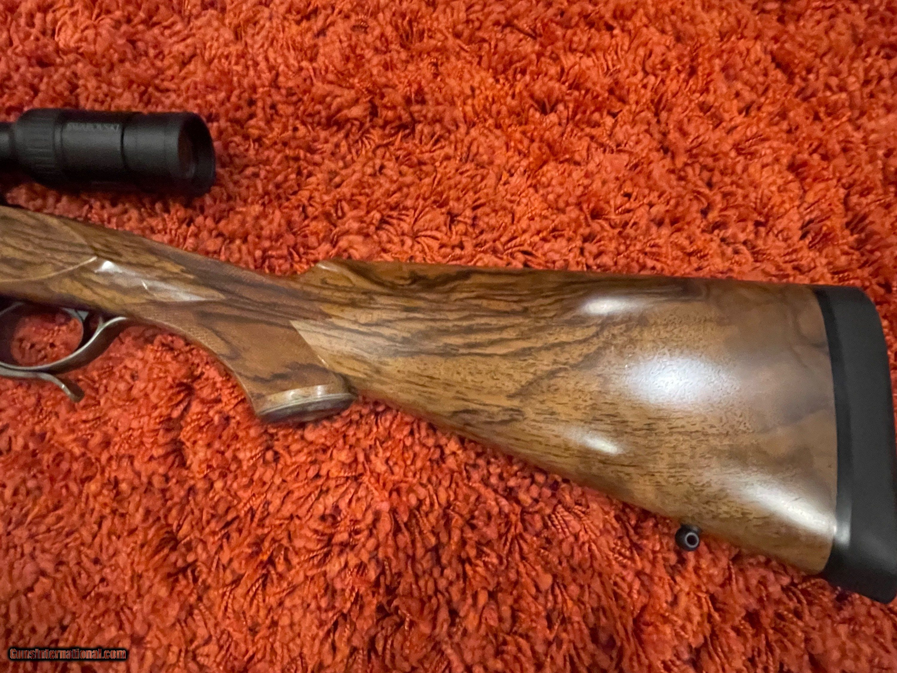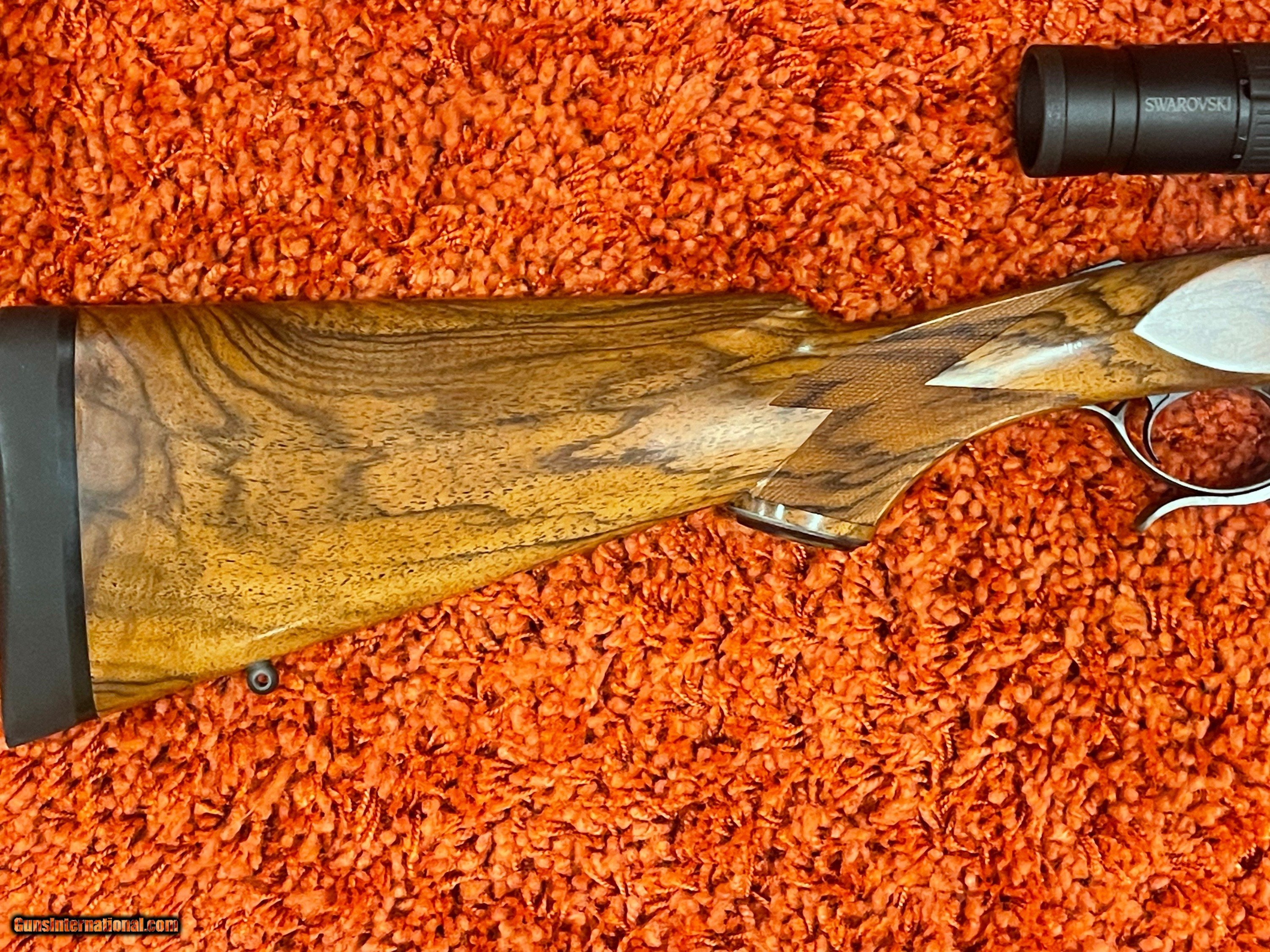 Description: Dakota M10 280 AI, Excellent condition, Color case hardening, Quarter rib banded front sight, Triple XXX English walnut, Hand cut point wrap checkering, Barrel band and Dakota swivel stud, 13 5/8"LOP, 24" barrel, Weight of rifle is 7lbs. 11 3/4 oz. as pictured with new Swarovski Z3 3-10x42 BRX. Replacement cost of this rifle with scope is 10,800. Small crease in bottom of recoil pad as seen in pictures. Payment by cashier check or postal money order. Price 6500 plus shipping. SOLD Rifle Caliber: .280 Ackley Improved Manufacturer: Dakota Model: 10 Barrel Length: 24 Condition: Excellent Metal Condition: Excellent Wood Condition: Excellent Bore Condition: Excellent |