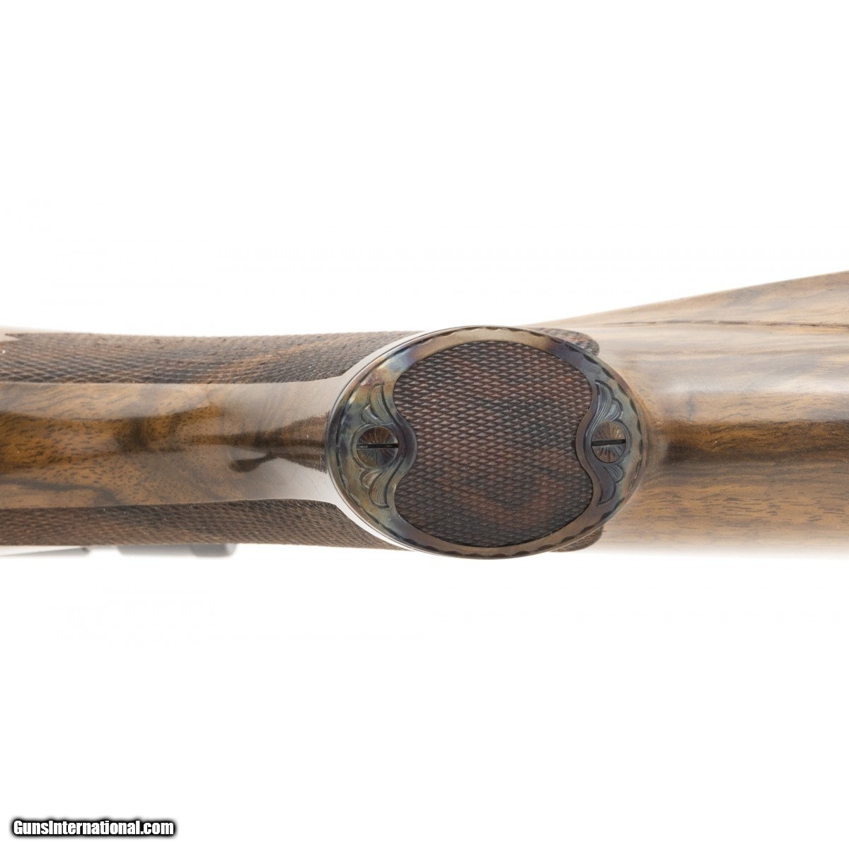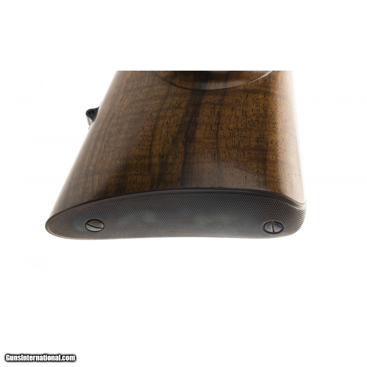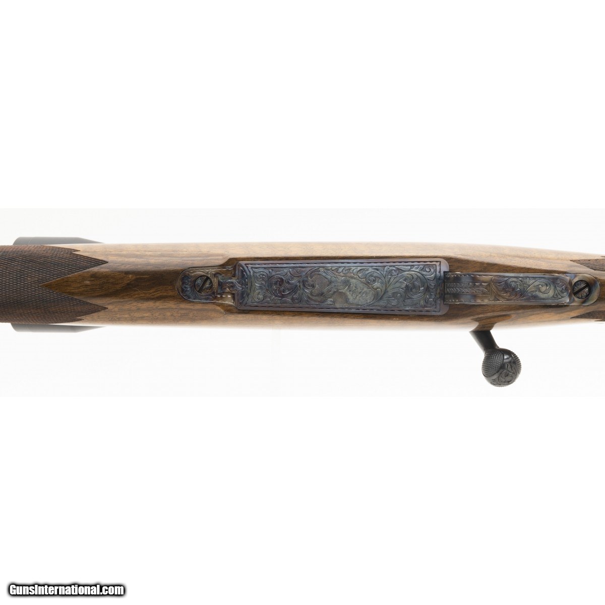 Description: " Beautiful deluxe sporting rifle with outstanding engraving. Engraving on receiver and small parts are elegantly engraved in a scroll motif. Floor plate also has a scroll motif with a game scene in center. Receiver, floor plate, rings, trigger, pistol grip cap and butt plate have vivid case colors. Stock is very fine with nicely figured walnut. Barrel is 26"". Swarovski 4-12X scope. An excellent example of Dakota's quality and craftmanship! SOLD |