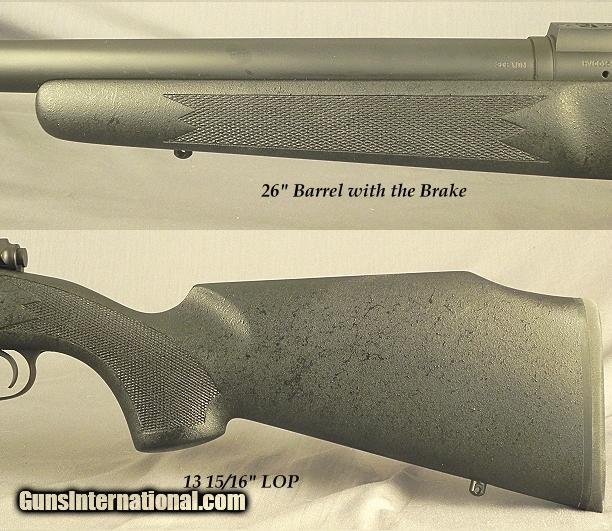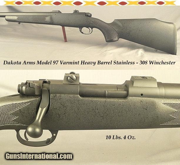 DAKOTA 308 WIN. MOD 97 VARMINT STAINLESS HEAVY BARREL- 26" BARREL with AAC MUZZLE BRAKE- SATIN BLACK METAL COATING- 3 SHOT GROUP at .532