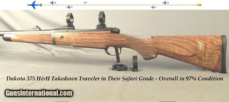 DAKOTA 375 H&H TAKEDOWN TRAVELER in THEIR SAFARI GRADE- BOTH 30mm & 1" TALLEY LEVER QD MOUNTS- NICE WOOD- OVERALL 97% COND.- ACCURATE