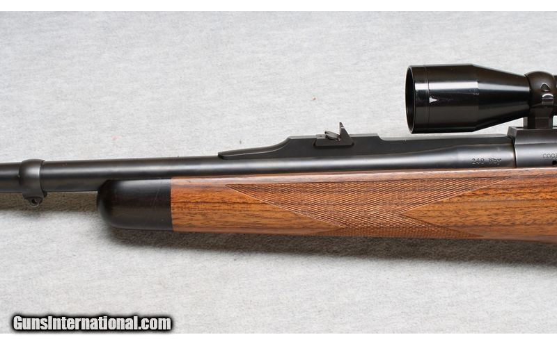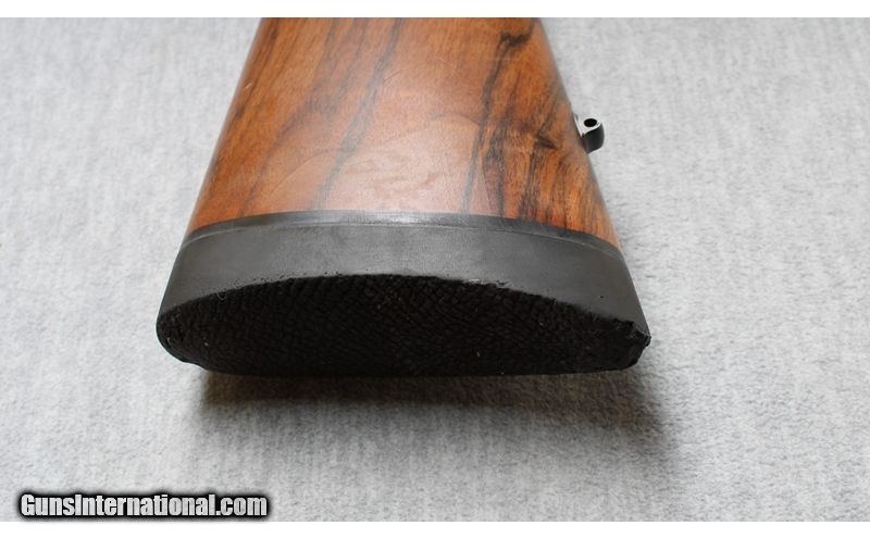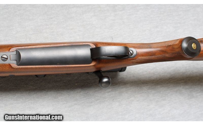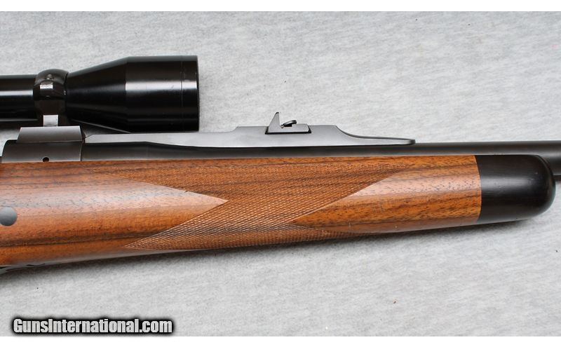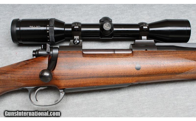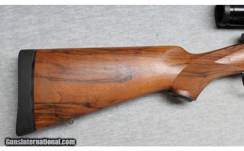 Description: Excellent, few light nicks and scratches. Outstanding bolt action rifle with ported barrel, express sights and a Swarovski 3-9x scope installed. Beautiful wood with RH cheek rest and factory recoil pad. Smooth action and crisp trigger pull, an excellent choice for hunting many types of game animals. .240 Weatherby Magnum SOLD Chambers: Bolt action Metal Condition: Excellent Wood Condition: Excellent Bore Condition: Bright Barrels: 23 1/2 Triggers: Factory Stock Dimensions: 13 1/2" LOP Fore End: Checkered with contrasting tip Butt Pad: Factory recoil pad Sights: Express sights and 3-9x Swarovski scope Item Location: La Vista, NE |