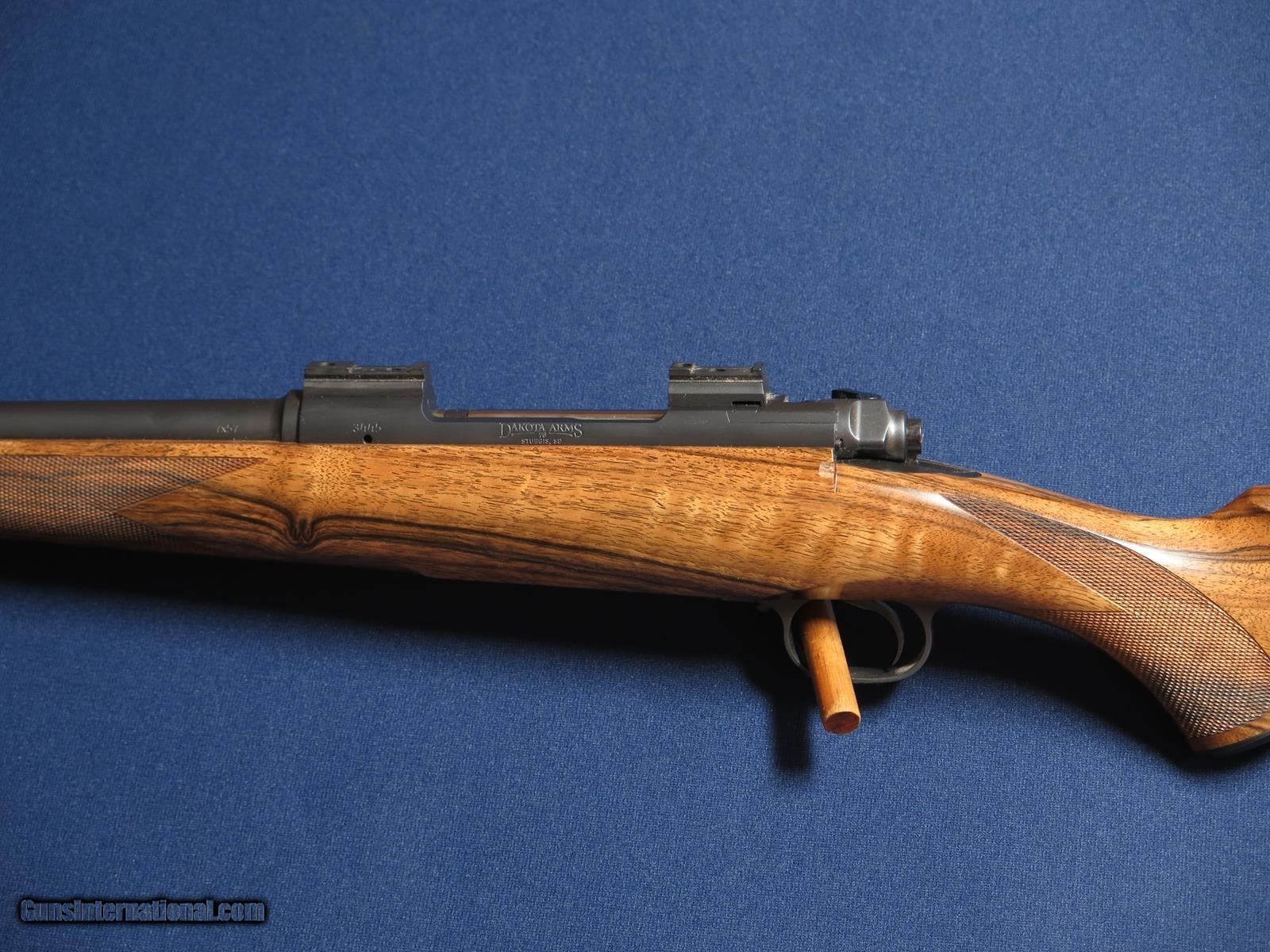 Description: Dakota 76 Alpine 7x57. 22 inch barrel. Barrel band. Beautiful grain in wood. 13 3/4 LOP. Control feed action. SN 344X. Excellent condition and bore. SOLD Rifle Caliber: 7x57mm Mauser |