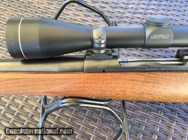 Description: New Price! Superb condition Dakota 76, cal 338 Win Mag. serial #0045. Leupold Vari X II 3X9 Scope. Beautiful walnut stock w/ point-pattern checkering. Solid Pachmeyer recoil pad. Seller pays shipping to FFL licensee. SOLD Rifle Caliber: .338 Winchester Magnum Manufacturer: Dakota Arms Model: 76 Classic Serial Number: 0045 Barrel Length: 23 Condition: Excellent Metal Condition: Excellent Wood Condition: Excellent Bore Condition: Excellent |
