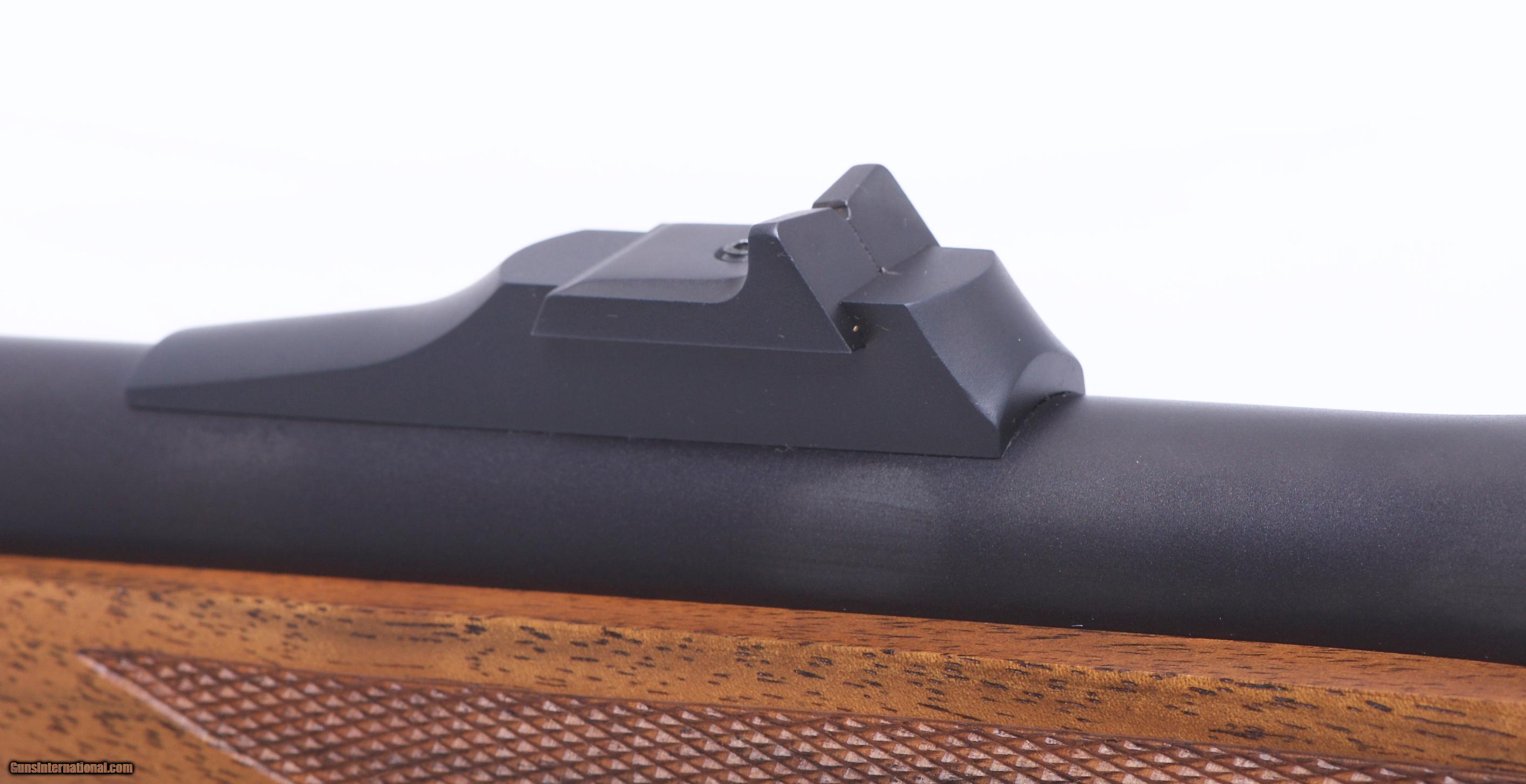 Description: Dakota 76 Safari grade bolt action rifle chambered in the ever popular .375 H&H. Standard 23” barrel with single standing rear sight and front sight with flip-up night sight. The action, floor plate, trigger guard and Talley QR 1” rings were special ordered with factory scroll engraving. Other special ordered features: bolt know was special ordered checkered and engraved as well, a skeleton style grip cap with checkered panel, and double recoil lugs. Everything about this gun is first class and it is in 98%+ condition with the sold detractor being a small “rubbed-in” mark in the cheek piece from a shooting vest button or ? 13 5/8” LOP over factory pad. 8 lbs. 8 oz. Factory case and all paperwork including targets. This is the ideal magazine rifle for an African safari. SOLD |