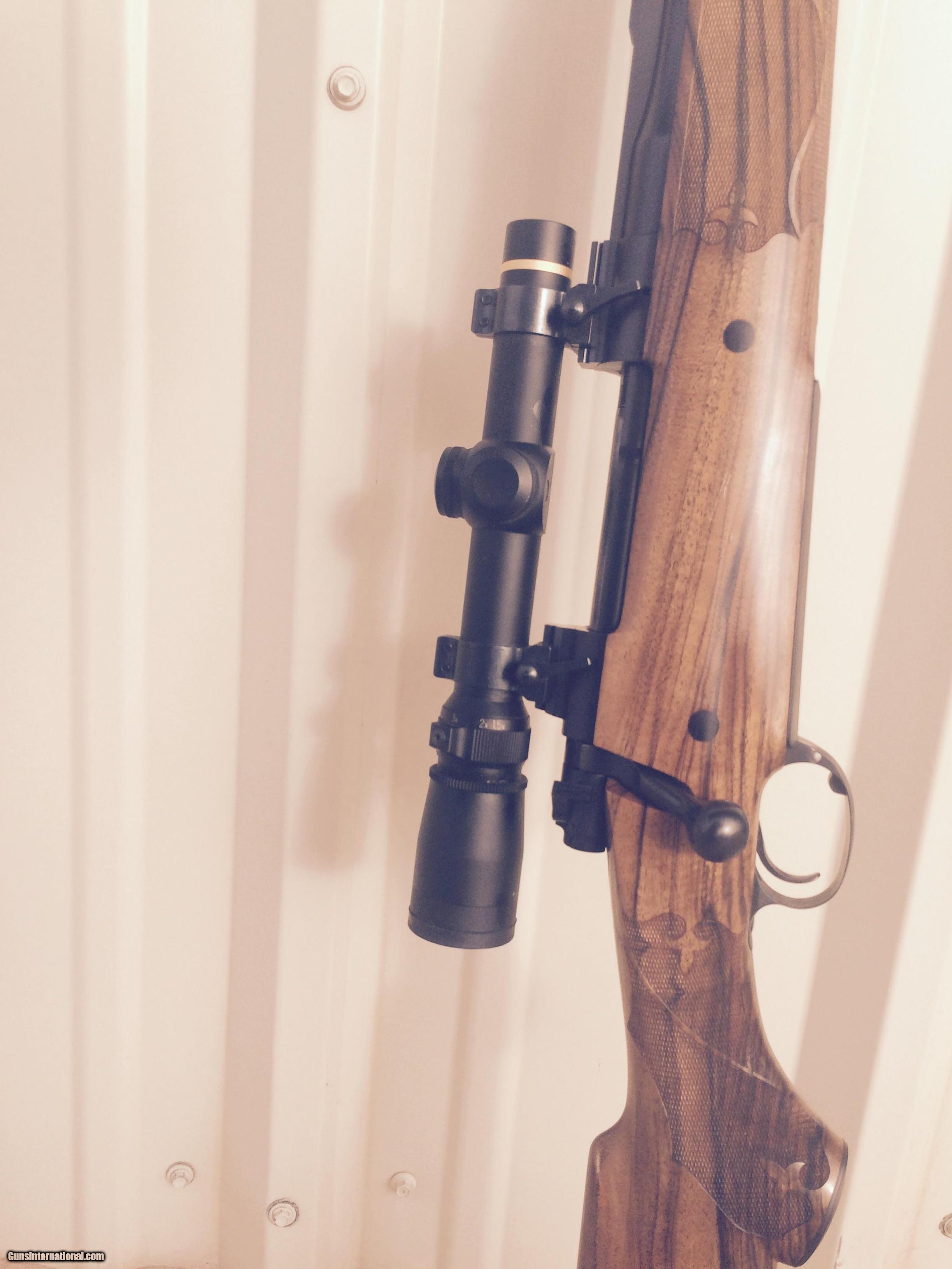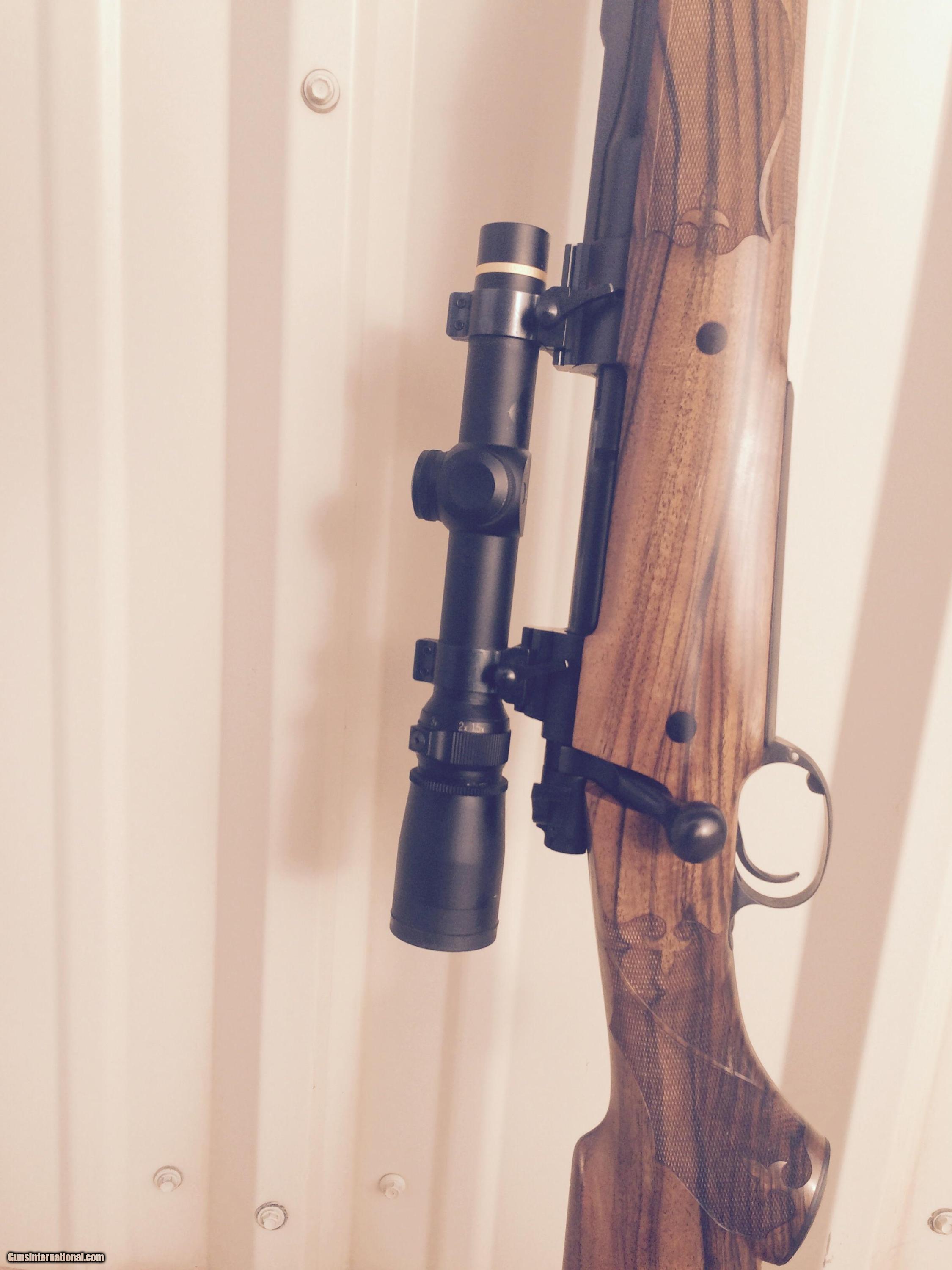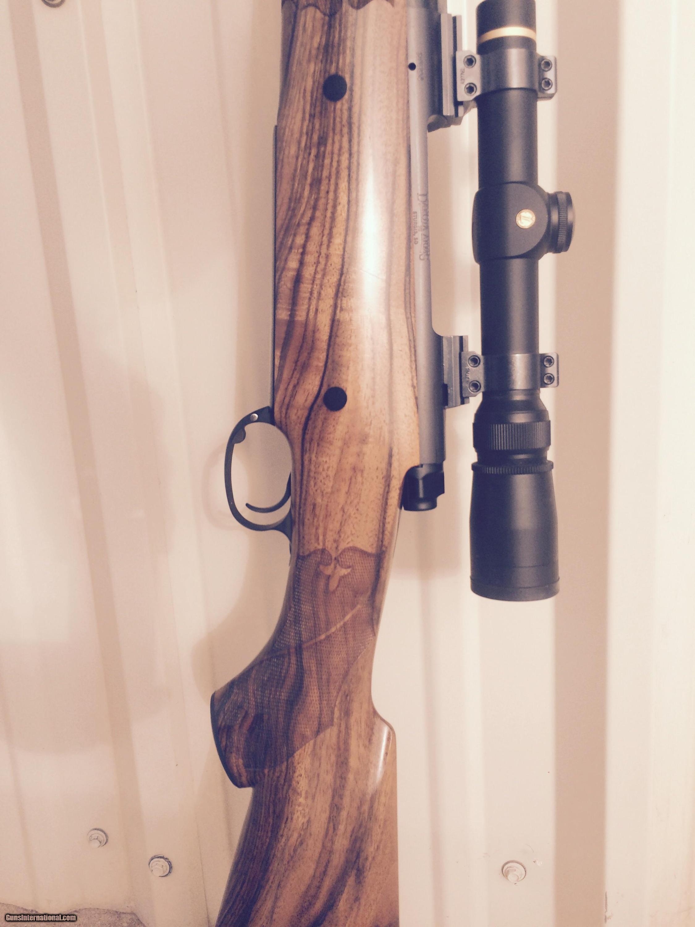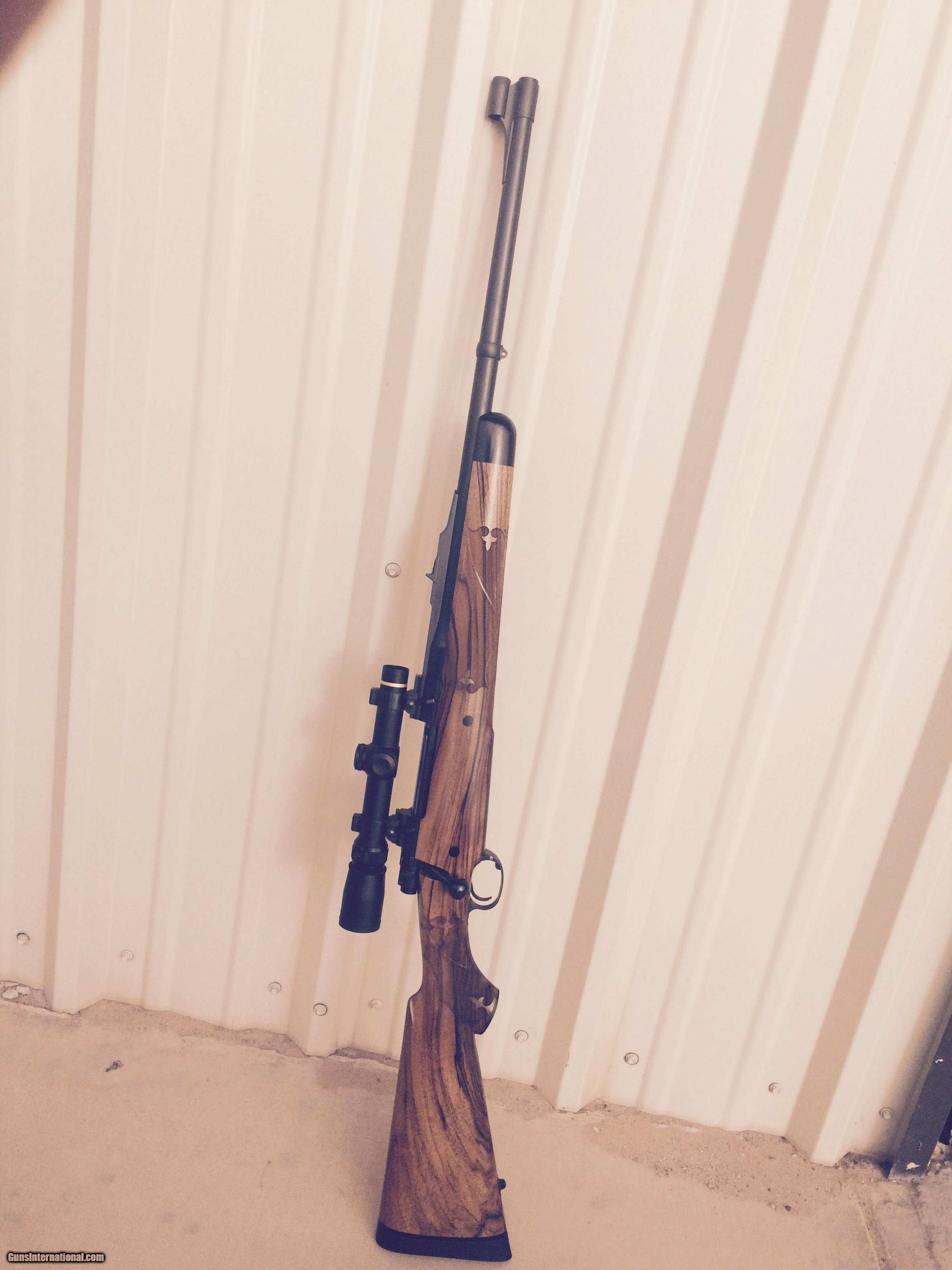 Description: 423 Dakota This is one of a few. Built for Charlie Kerkesh, ex CEO of Dakota Arms. 22 inch barrel with barrel band front site with nite sight. Quarter rib back site. 1.75X5 Leupold in Talley mounts. Fleur de Lis checkering around wrist and forearm. Barrel band sling stud with 2 screw inletted back stud. Fancy upgraded Turkish walnut stock. I have 900 rounds of new Lapua cases and dies that go with it. It has been to Tanzania and Uganda where it acquitted itself well. A rifleman's rifle. SOLD Manufacturer: Dakota Arms Model: 76 Safari Grade Custom Caliber Info: 423 Dakota Metal Condition: 99% Wood Condition: 98% Bore Condition: 99% Stock Dimensions: 13 3/4 Fore End: Enony LOP: 13 3/4 Rib: Quarter rib Finish: Oil Weight: 10 pounds Sights: Express Extras: 800 rounds new brass,ammo and dies Item Location: Gardendale, Tx |