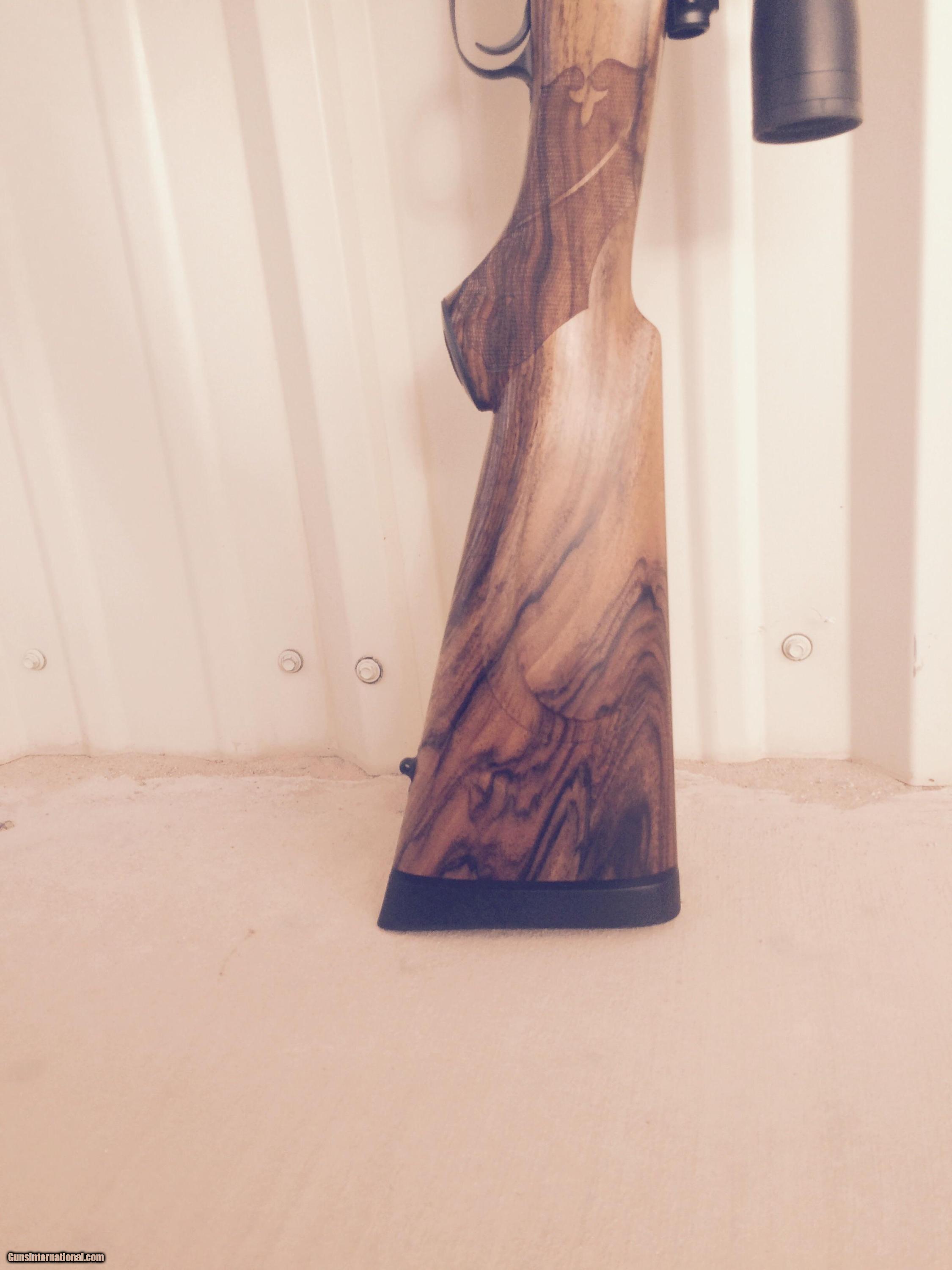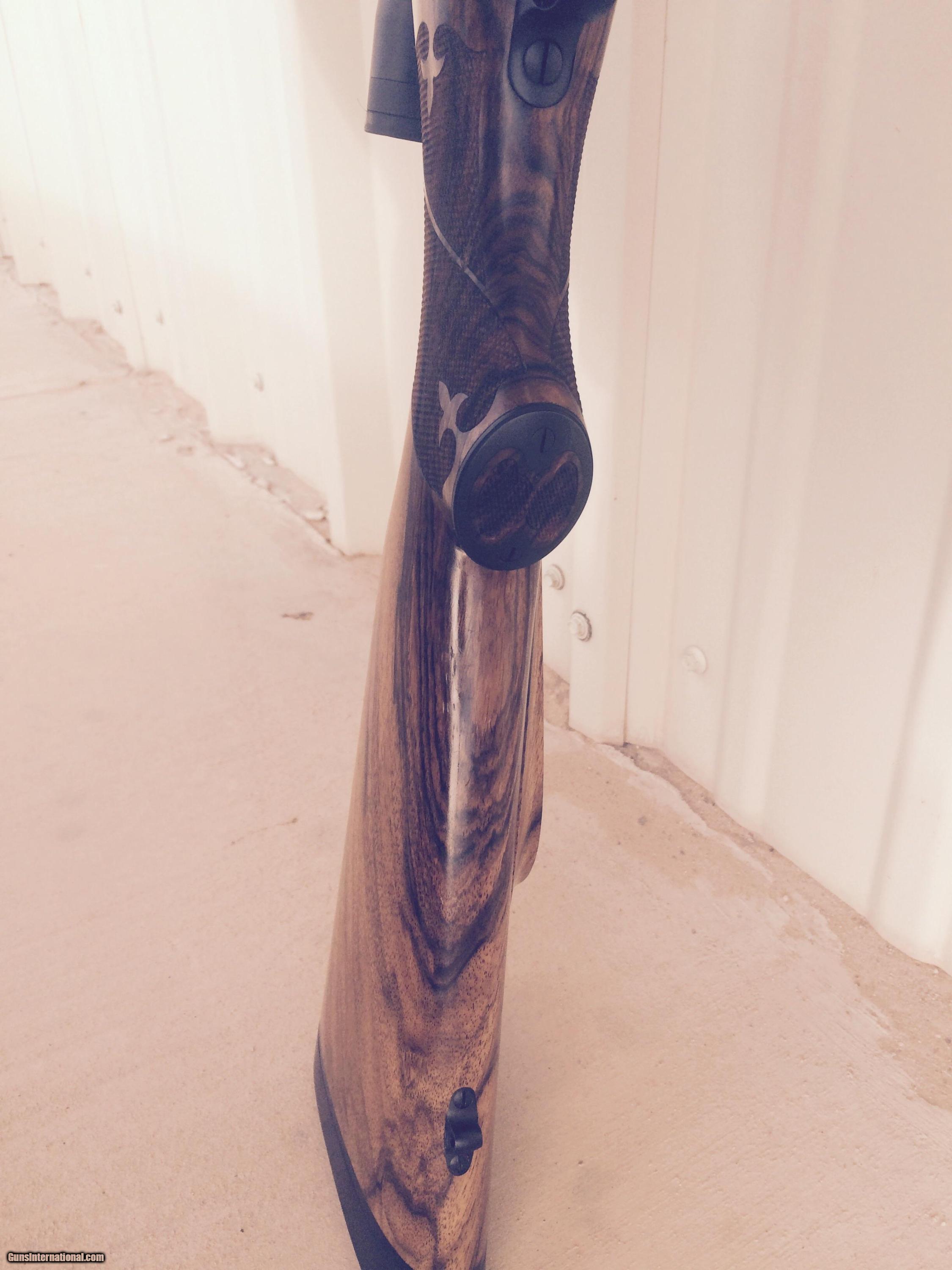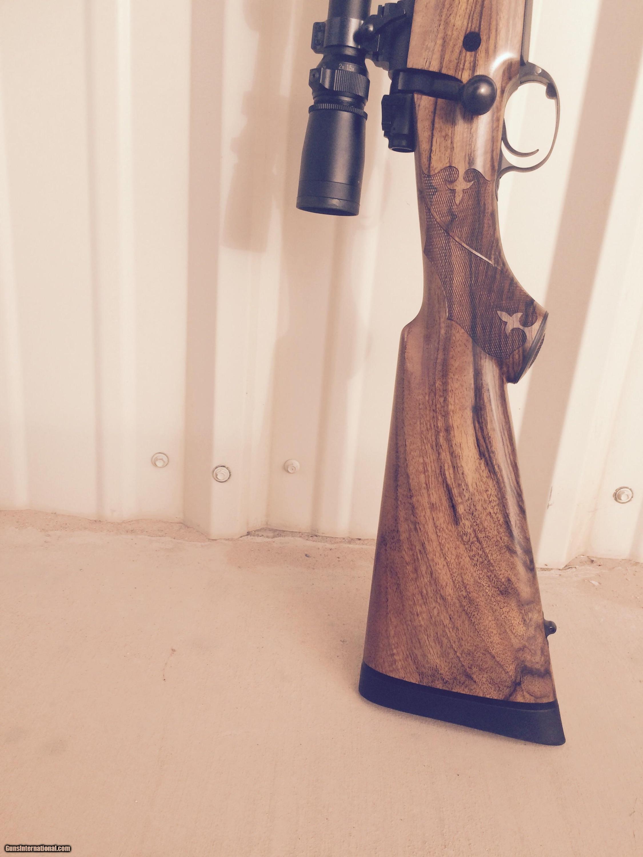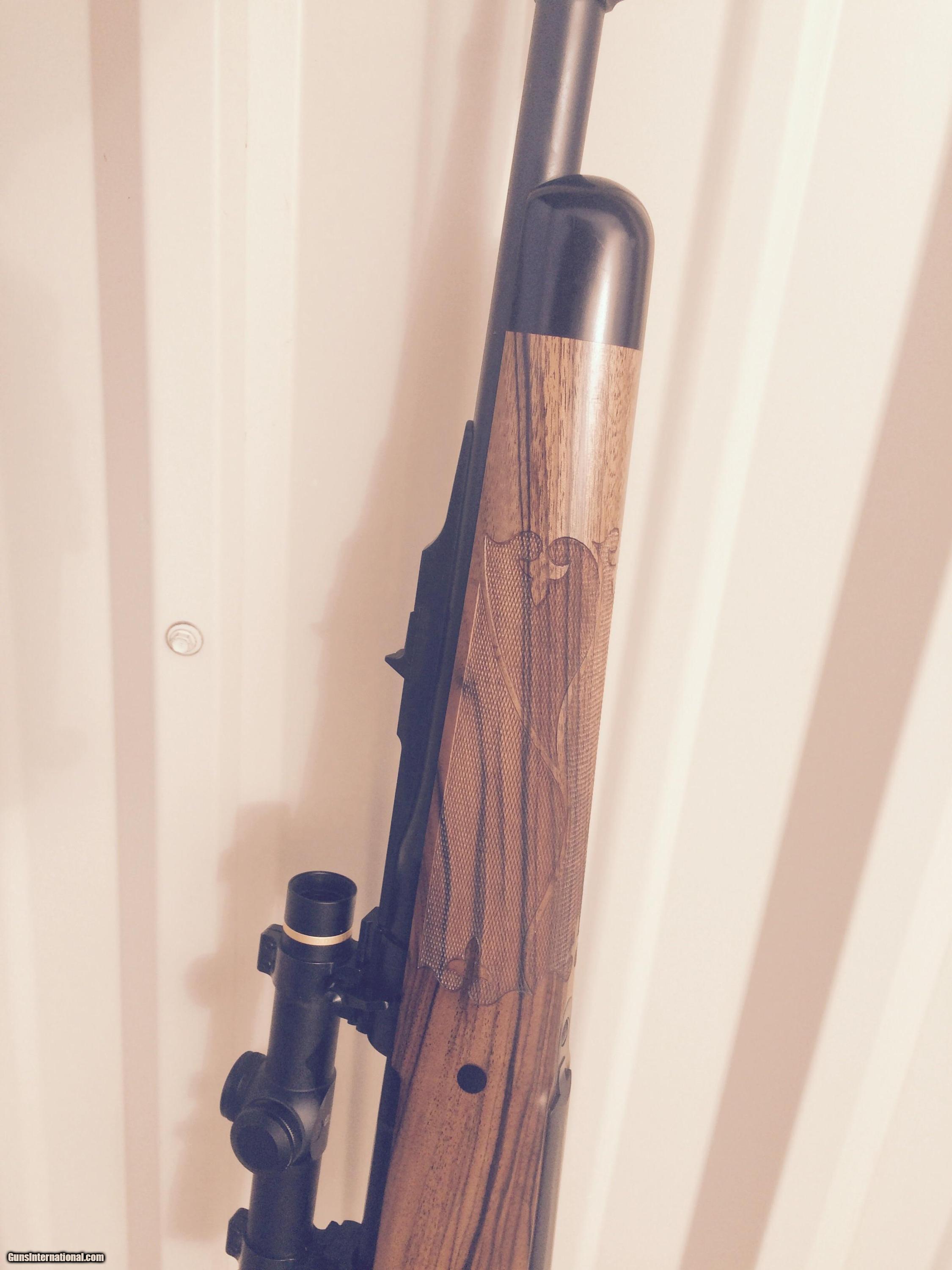 Description: 423 Dakota This is one of a few. Built for Charlie Kerkesh, ex CEO of Dakota Arms. 22 inch barrel with barrel band front site with nite sight. Quarter rib back site. 1.75X5 Leupold in Talley mounts. Fleur de Lis checkering around wrist and forearm. Barrel band sling stud with 2 screw inletted back stud. Fancy upgraded Turkish walnut stock. I have 900 rounds of new Lapua cases and dies that go with it. It has been to Tanzania and Uganda where it acquitted itself well. A rifleman's rifle. SOLD Manufacturer: Dakota Arms Model: 76 Safari Grade Custom Caliber Info: 423 Dakota Metal Condition: 99% Wood Condition: 98% Bore Condition: 99% Stock Dimensions: 13 3/4 Fore End: Enony LOP: 13 3/4 Rib: Quarter rib Finish: Oil Weight: 10 pounds Sights: Express Extras: 800 rounds new brass,ammo and dies Item Location: Gardendale, Tx |