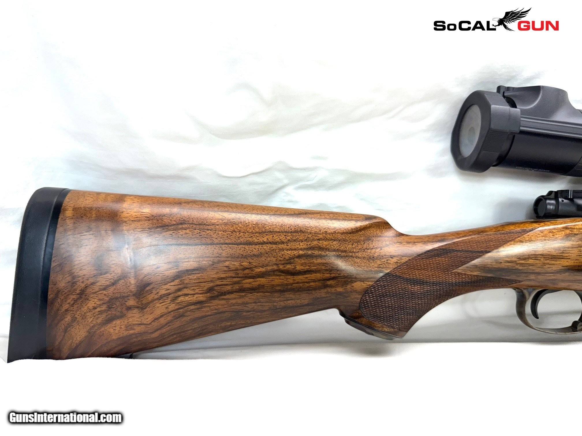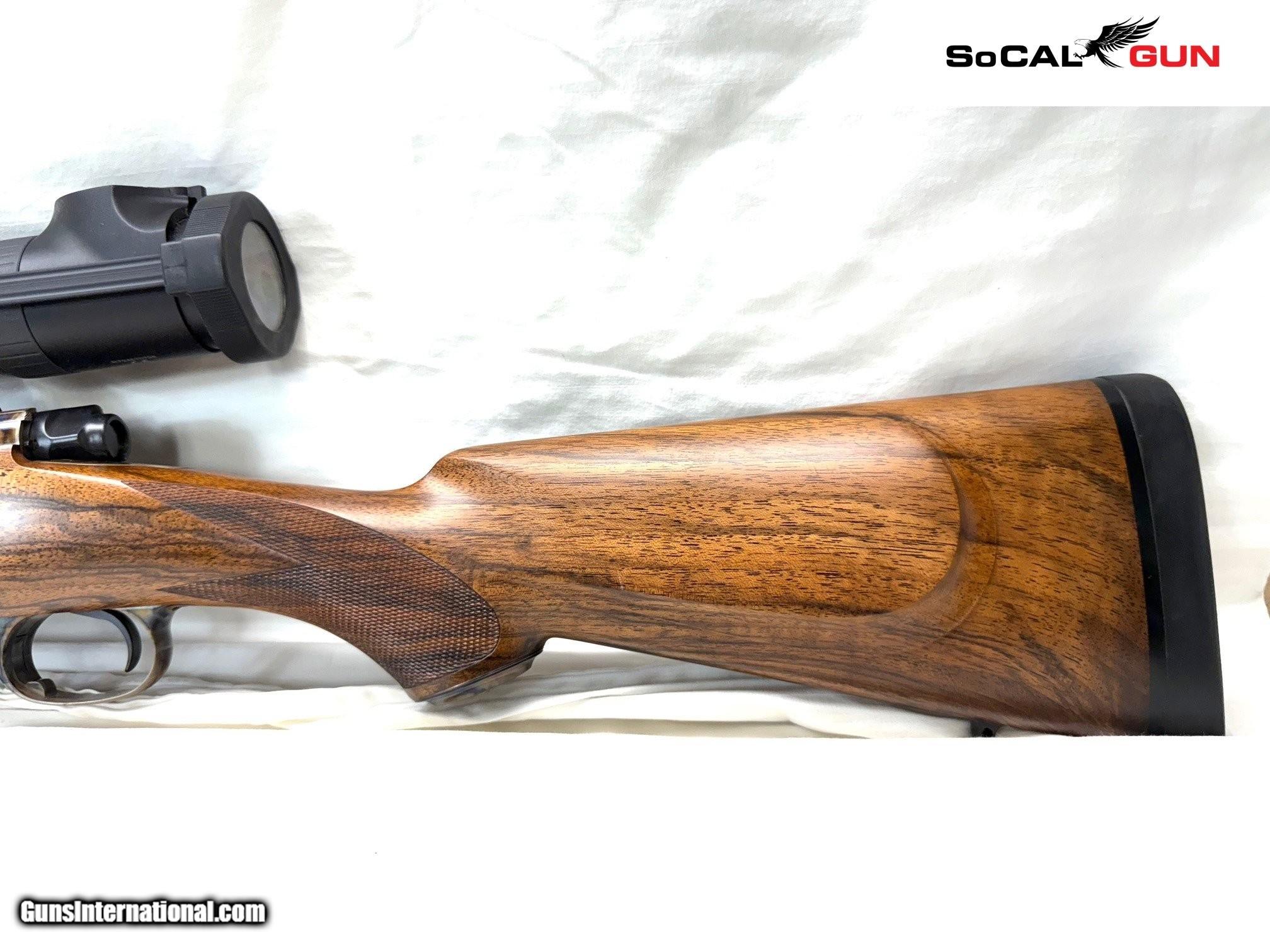 Description: Dakota 76 300 Win Mag 23” LOP 13 5/8” to end of pad. Metal is in excellent condition and retains all color case. Wood has a small handling mark on the cheek piece and a small linear impression on right hand side of the stock. Comes with Swarovski Z6i 1.7-10x42 Tally rings color cased to match the action. Shipping is Actual. Rifle Caliber: .300 Winchester Magnum Manufacturer: dakota Model: 76 Price: $6,500.00 Contact Seller |