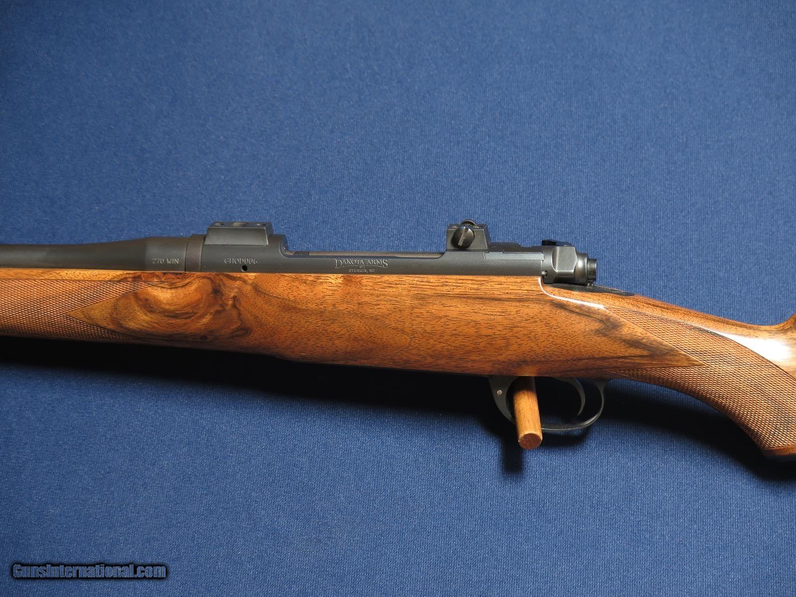 Description: Dakota 97 Hunter 270 Win. 24 inch barrel with barrel band. Beautiful grain in wood stock. 13 3/4 LOP. 97% condition with bases. Excellent bore. SOLD Rifle Caliber: .270 Winchester |