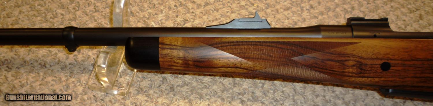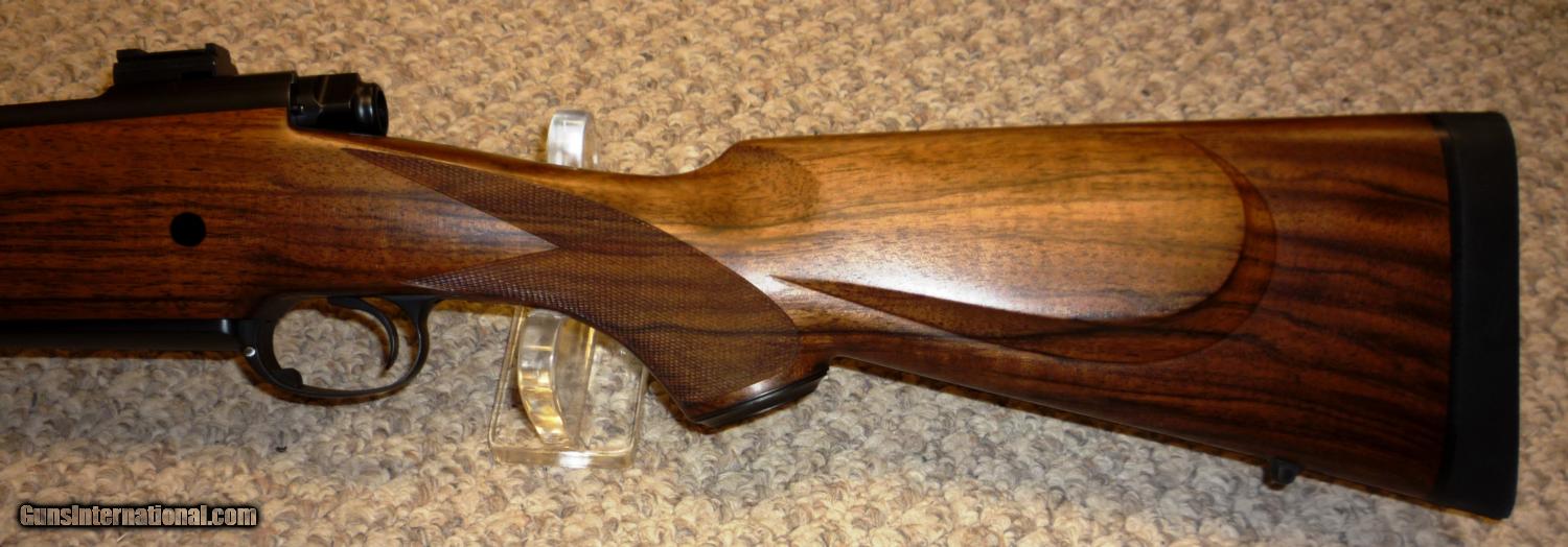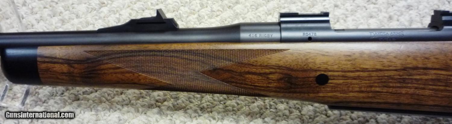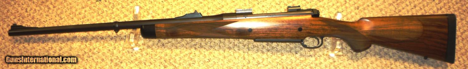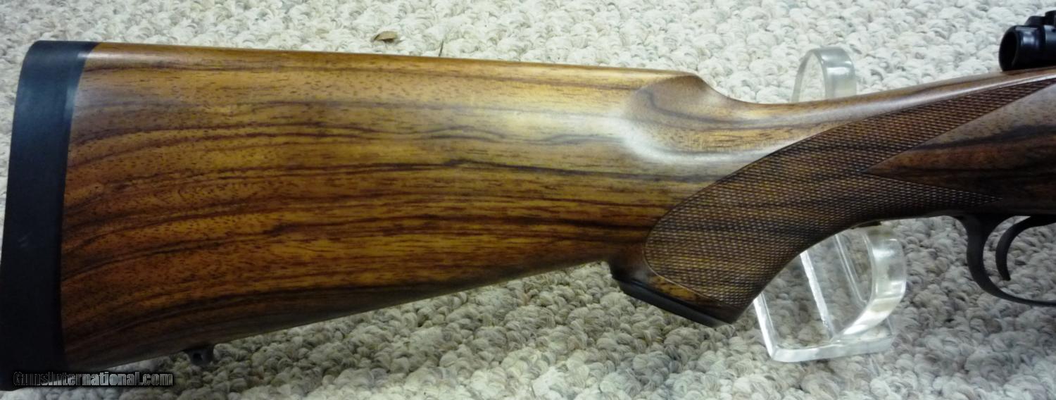 Description: Beautiful Dakota African rifle-great caliber for dangerous game-.416 Rigby. Has XXX English walnut stock, shadowline cheekpiece, inletted swivel in stock, front banded sling swivel, luminous flipup front sight, Talley bases. Wood has a few small marks, metal is 98%. Great gun for that next safari this summer, older gun when Dakota was better quality, and about half the price of a new one. Price reduced. SOLD Manufacturer: DAKOTA Model: AFRICAN Serial Number: R0478 Caliber Info: .416 RIGBY Metal Condition: 98% Wood Condition: 95% Barrels: 24 Stock: XXX ENGLISH |