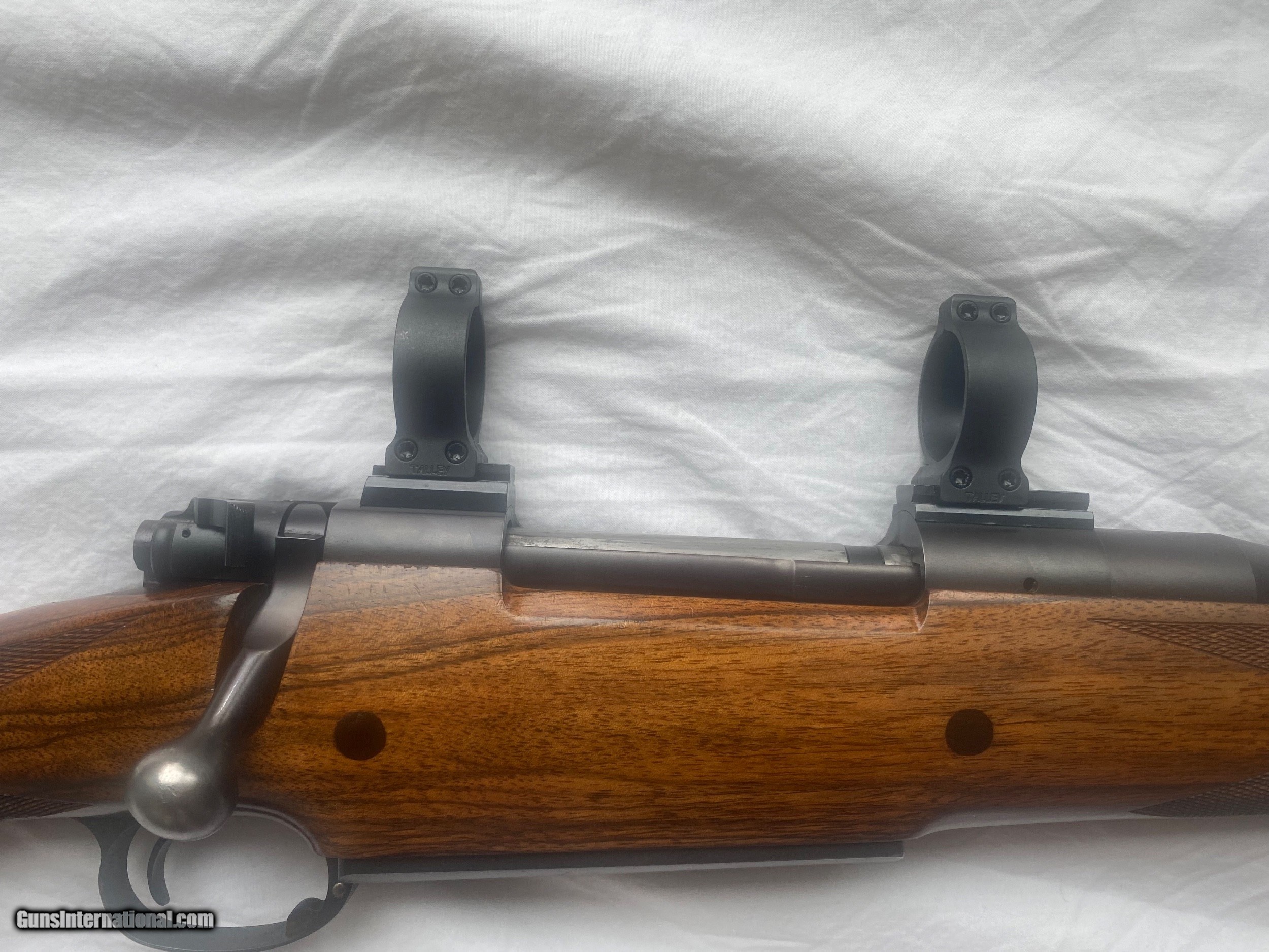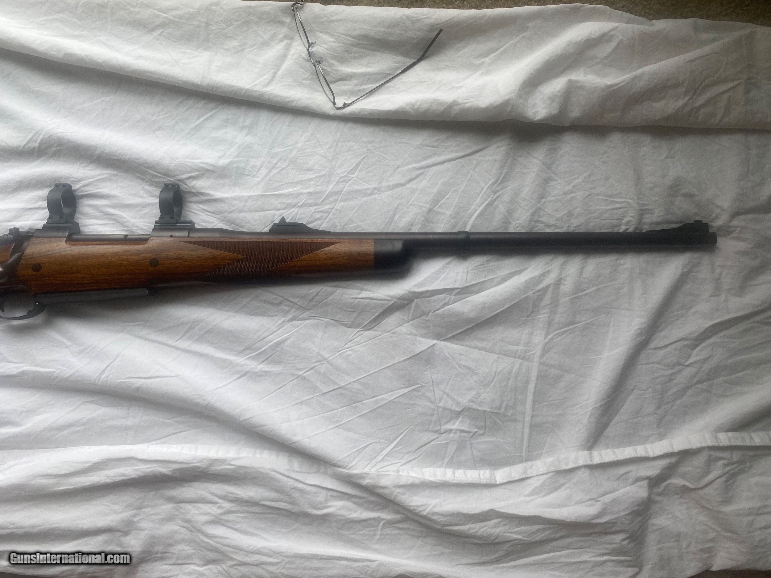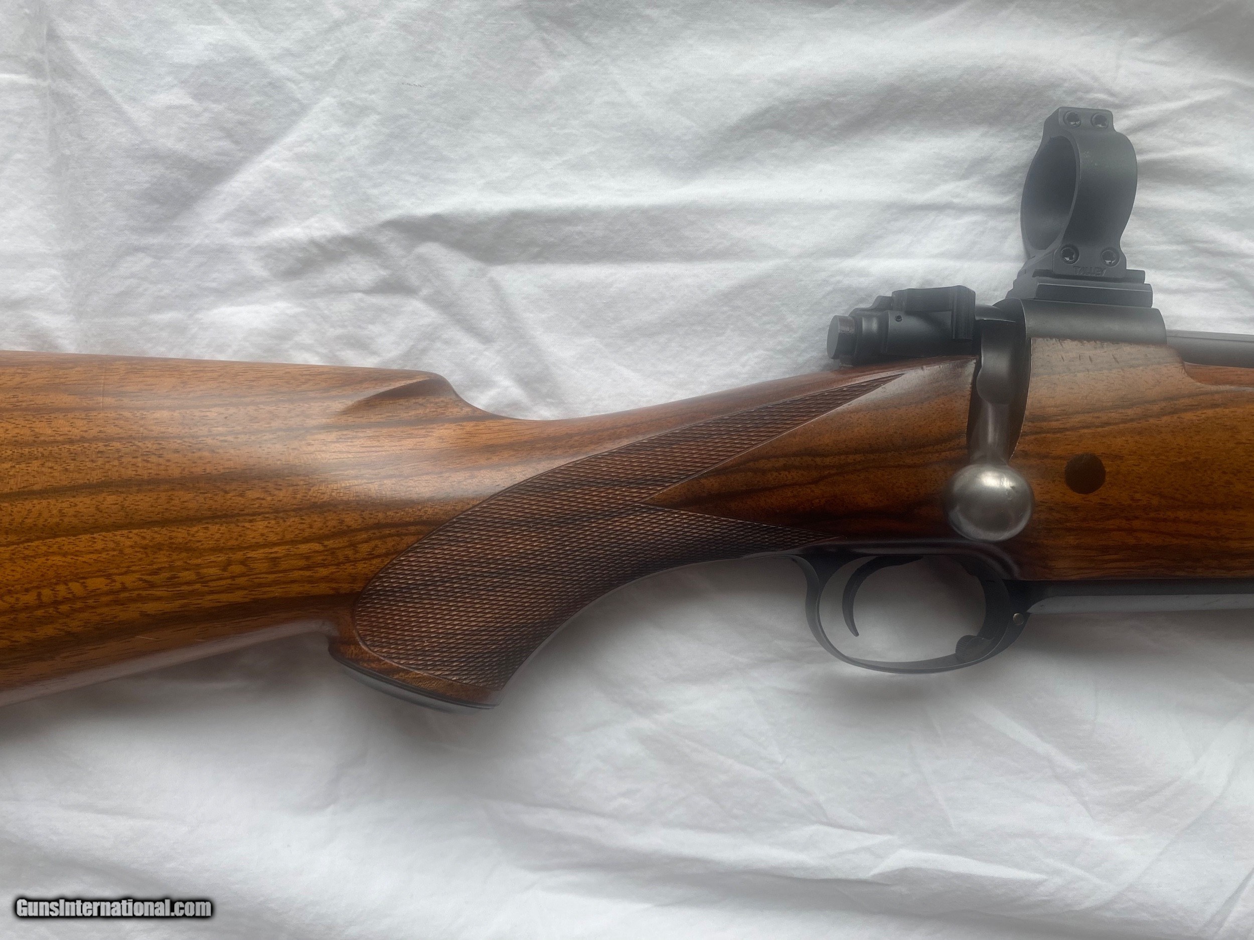 Description: I am selling my Dakota African 416 Rigby. It is in good condition with light, typical hunting wear. OAL is 45" with a 23 1/4" barrel and a 13 7/8" LOP. It has a Decelerator recoil pad over a 1/2" spacer. The rifle weighs 9 lbs 13 oz's including the 30" Talley rings. SOLD Rifle Caliber: .416 Rigby Manufacturer: Dakota Model: African Barrel Length: 23 1/4 Condition: Good Metal Condition: Good Wood Condition: Good Bore Condition: Good Action: Bolt LOP: 13 7/8 Weight: 9 lbs 13 oz Sights: Open Extras: 30" Talley Rigs Item Location: Texas |