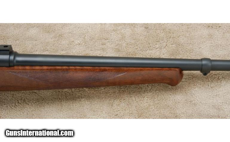 Description: Twenty two matte blued lightweight barrel with barrel band sling mount. Matte blued control round feed action with hinged floor plate and Talley scope bases. Deluxe checkered Walnut stock with rubber butt pad, grip cap and a Schnabel style fore arm. Excellent condition overall has a few handling marks from being on display. New with a hard carrying case. Manufactured in the United States of America. SOLD Manufacturer: Circa: 2011 Caliber Info: 7mm-08 Remington Metal Condition: Excellent Wood Condition: Excellent has a few handling marks on the stock Bore Condition: Excellent Barrels: 22" Light Weight Stock: Deluxe Checkered Walnut Stock Dimensions: LOP: 13 3/4 Butt Pad: Rubber Butt Pad Weight: 7 lbs. 2 ozs. Item Location: Hamburg, PA |
