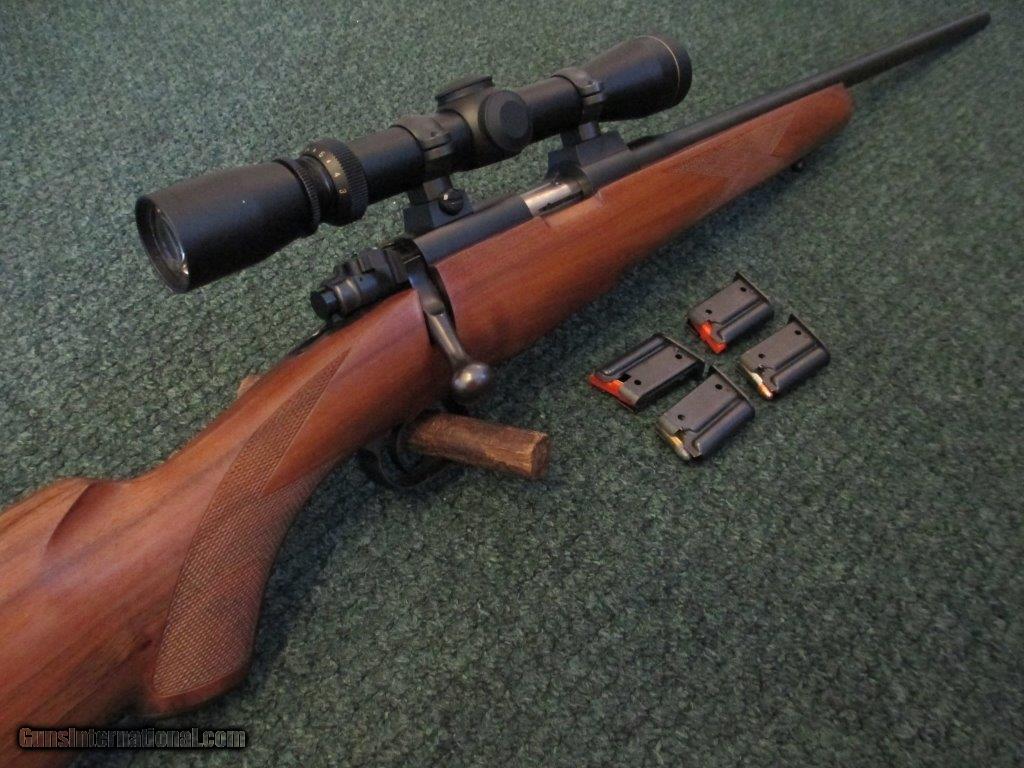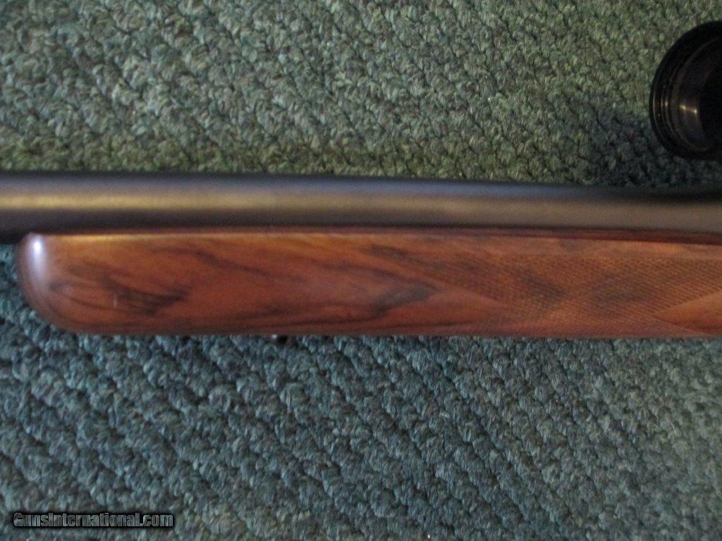 Description: Dakota Arms, 22LR, (.17) ,manufactured 1992-98. 6 1/2 lb., no sights, Leupold 3x9 compact scope with deplex reticle and matte finish, 3 stage model 70 style safety, leupold rings and bases, hinged floorplarw, sling swivels, original Dakota butt pad, 13 3/4" length of pull, 22" barrel with nice figured wood, checkered pistol grip and forearm, rings, scope and base match, few light handling marks on wood, very good overall condition, total of 5 clips. For further information call John at 941-748-7318. SOLD |