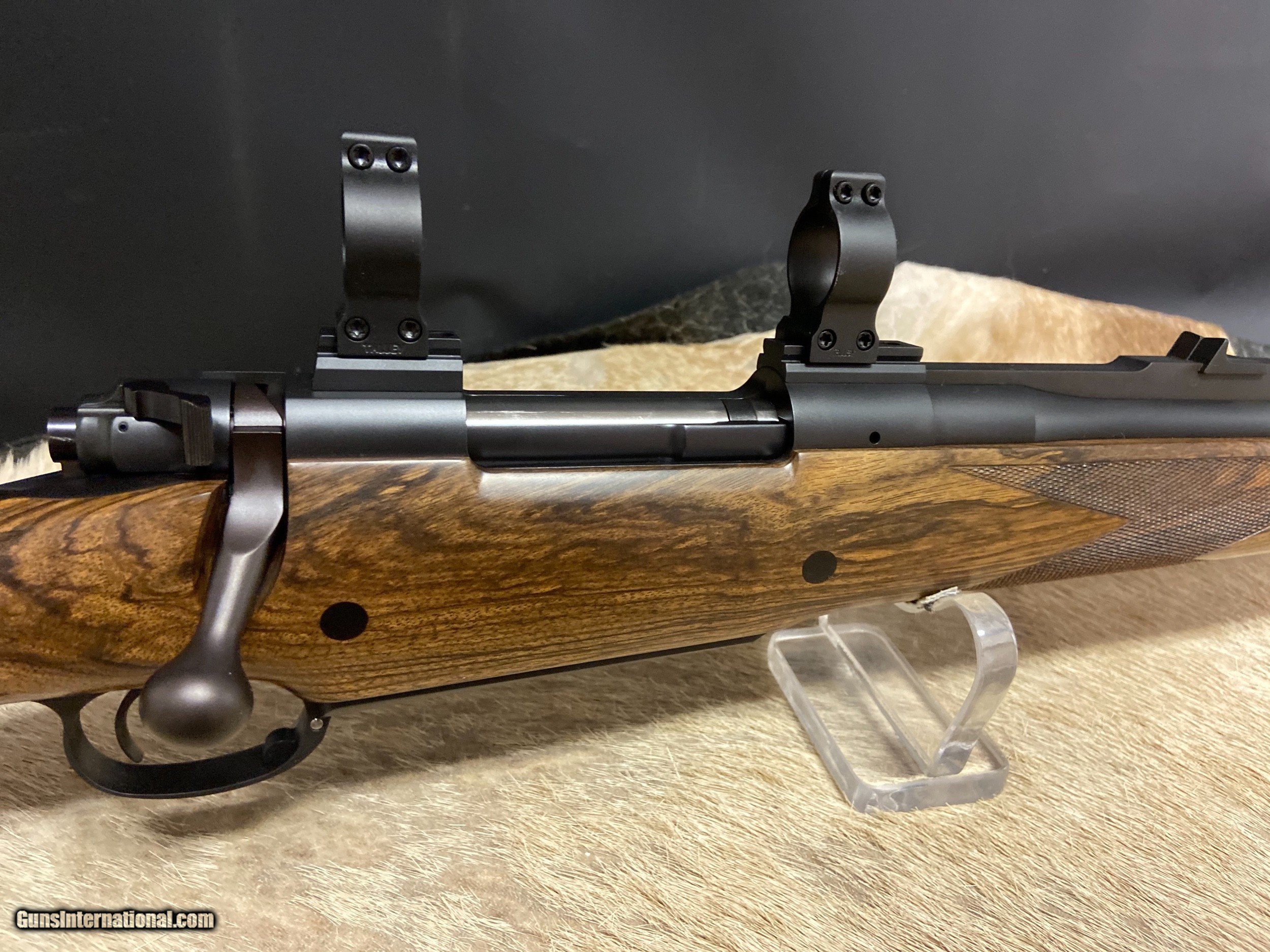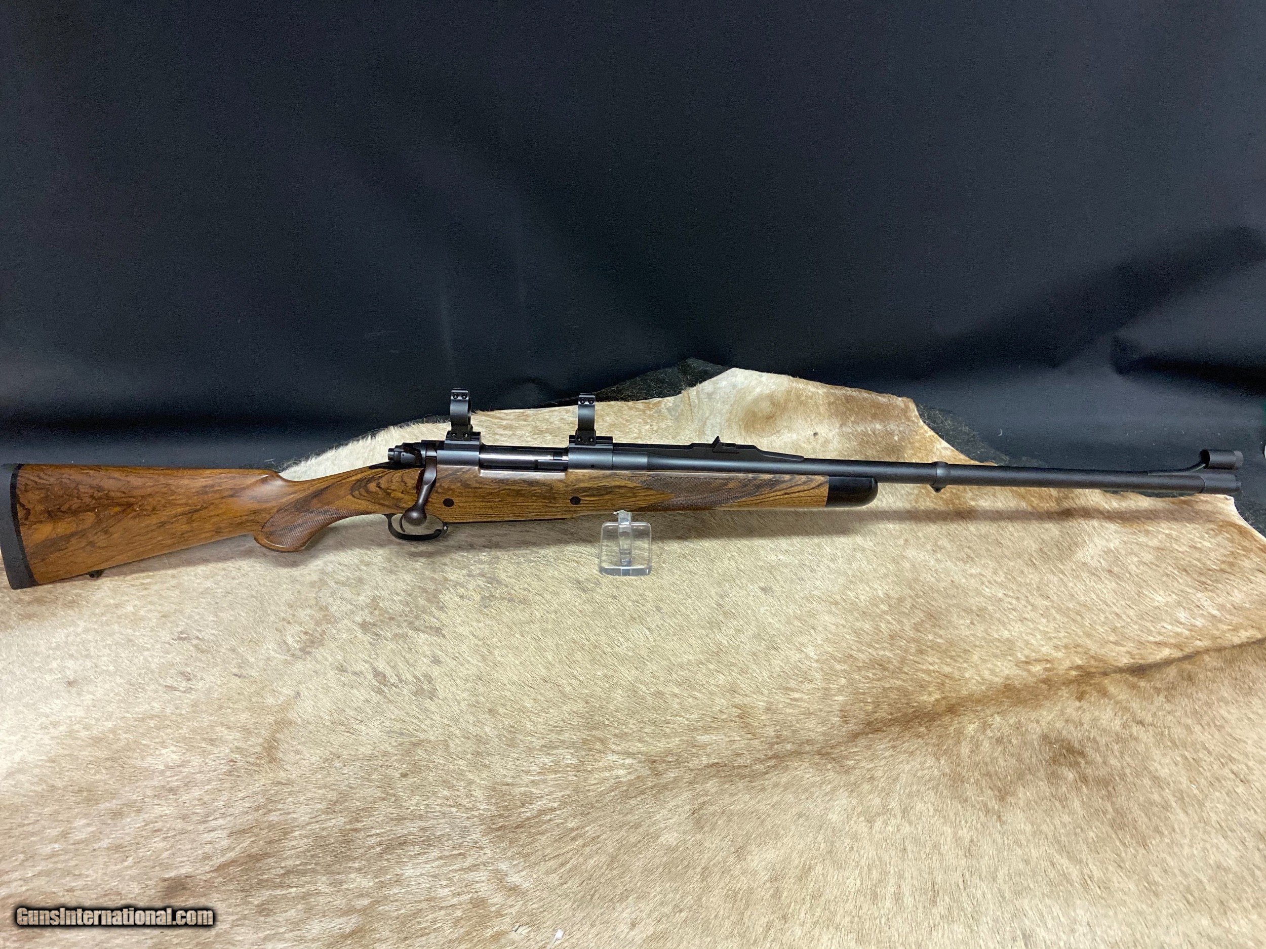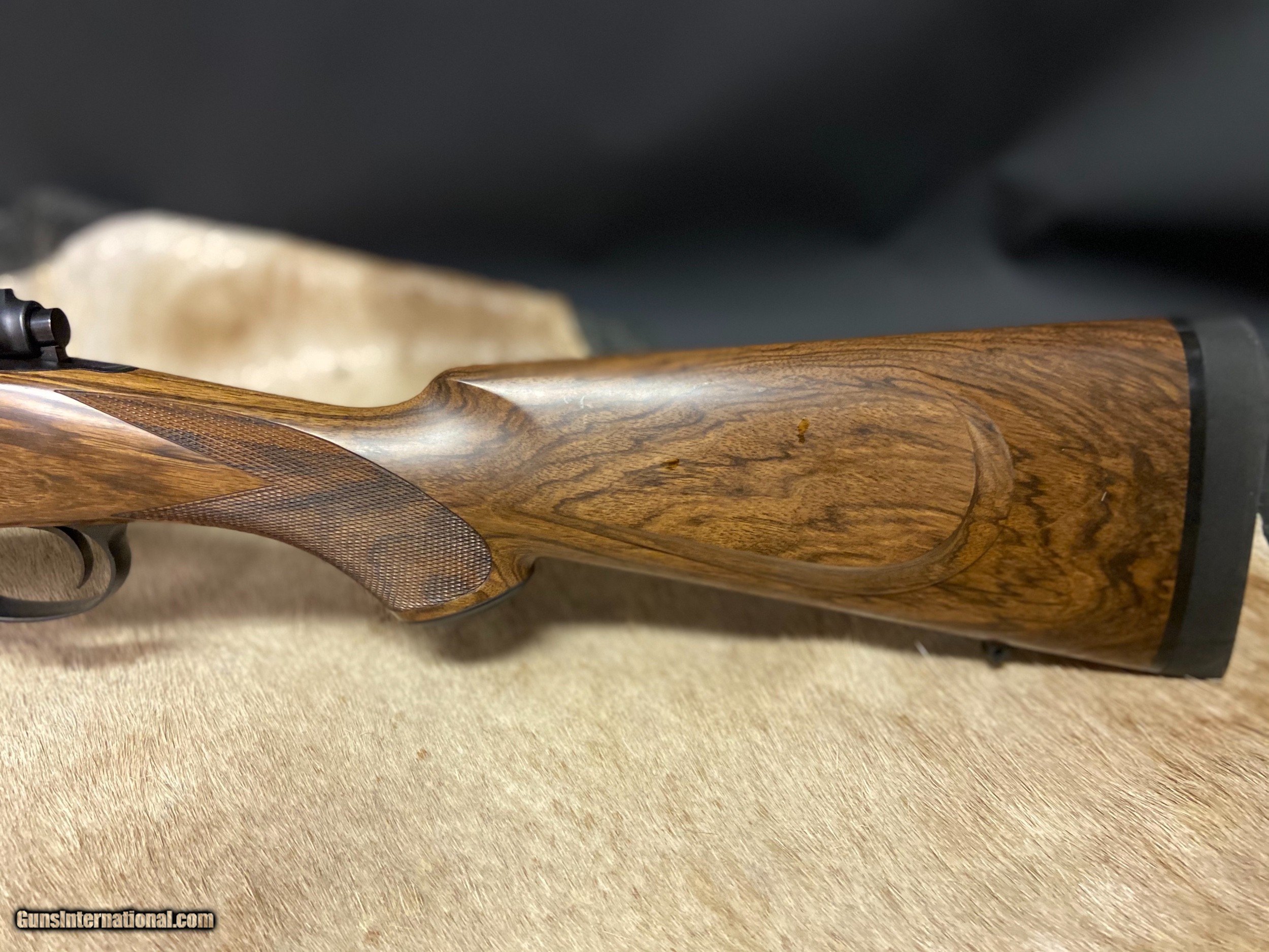 Description: 76 African with exhibition English walnut 1/4 rib with 1 standing sight banded hooded front sight talley rings & bases. This is a new rifle and is priced 40% below wholesale. This rifle has a blue finish on it and weighs 8lbs 3oz. The barrel lengthh is 24" and the length of pull is 14". Perfect bore. The serial number is 3571. SOLD Rifle Caliber: .416 Remington Magnum Manufacturer: Dakota Arms Model: 76 African Serial Number: 3571 Barrel Length: 24 LOP: 14 Weight: 8lbs 3oz |
