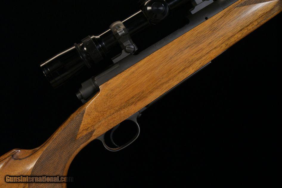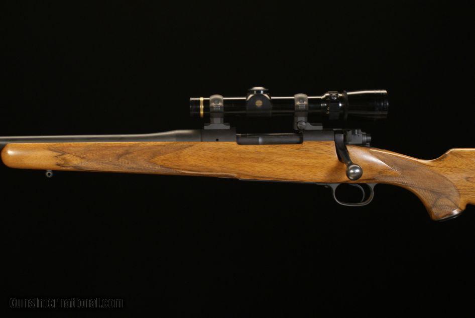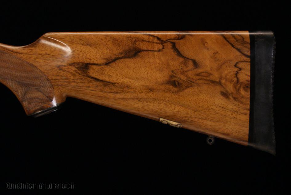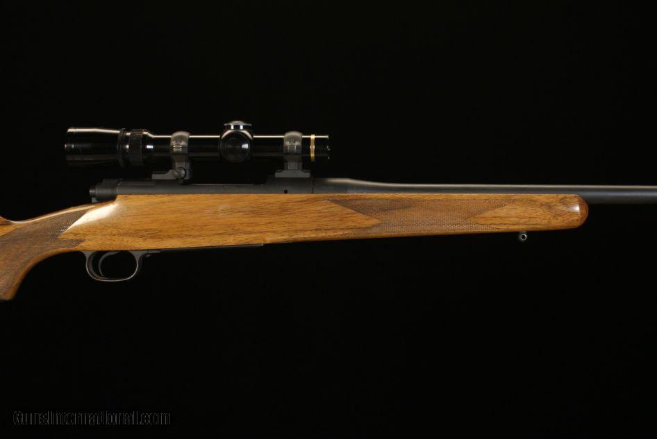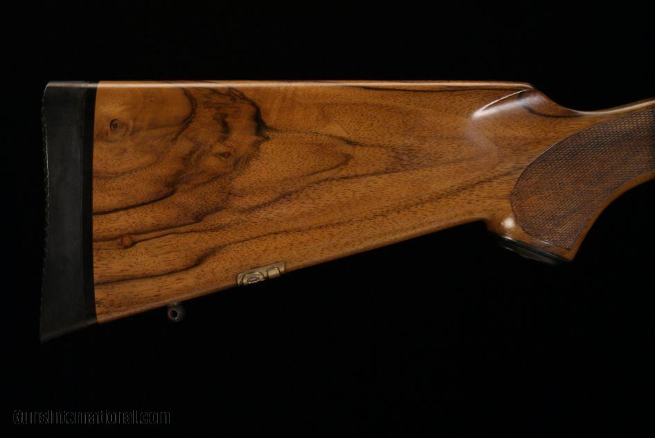 Description: Dakota Arms 76 Classic Left Hand, .30-06, 23" barrel, 8 lbs. 2 oz. (with scope), 13 5/8" LOP over a pad, standard Classic configuration, figured XX English walnut stock, with Leupold VX III 1.5-5x scope. Excellent condition showing minor use, with gold stock shield with raised initials "CAL". SOLD |