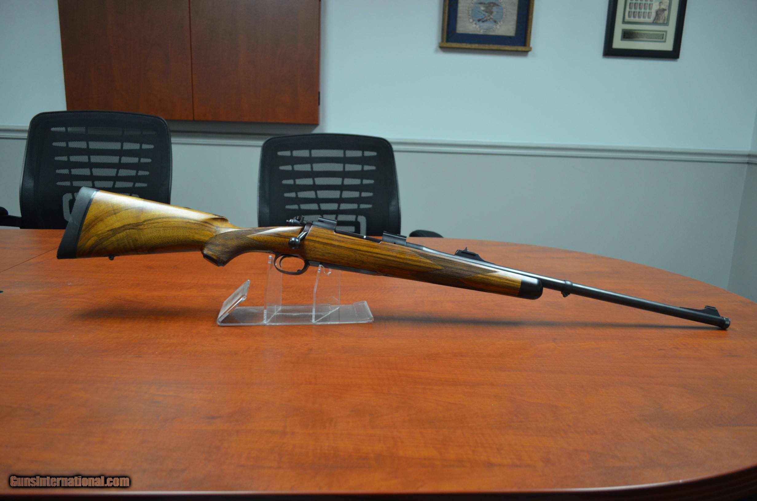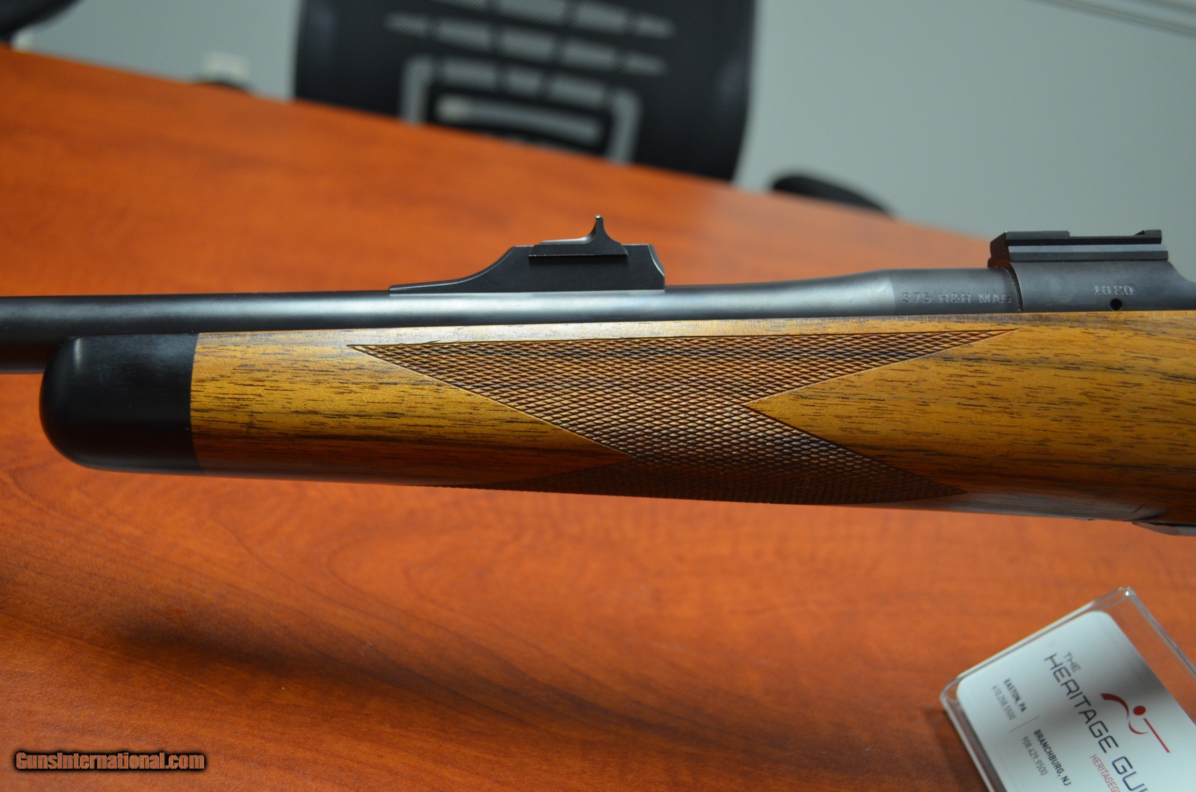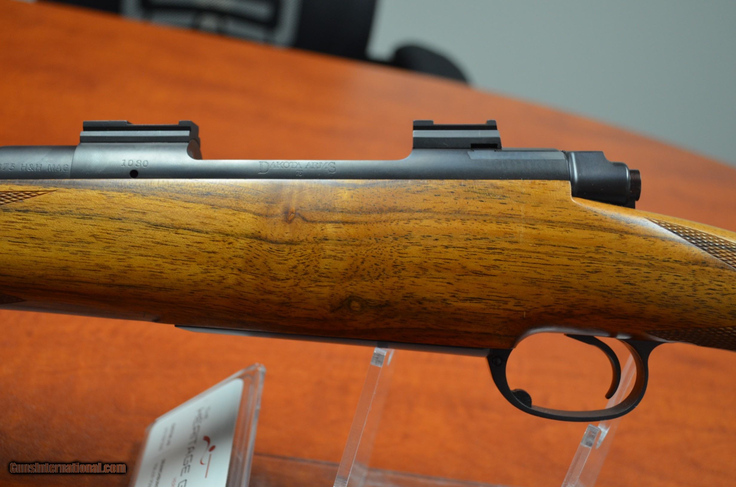 Description: This is a Dakota Arms Model 76 Safari in .375 H&H. The Wood is XXX Grade Walnut and has hand carved checkering. The finish on the wood is a hand rubbed oil finish. The overall rifle is in 98% with very few spots of wear or use. The bore is like new and will make for an excellent shooter. Included with this rifle is a Leupold Vari-X III 1.5-5 optic and Talley rings. ?Please contact Jason in sales with any questions at 610-258-5500 EXT 104 ALL FIREARMS SUBJECT TO SALE IN STORE!!!! SOLD Manufacturer: Dakota Arms Model: 76 Safari Caliber Info: .375 H&H Wood Condition: Very Good Bore Condition: Like New Action: Bolt Finish: Blued Sights: Leupold Vari-X III |
