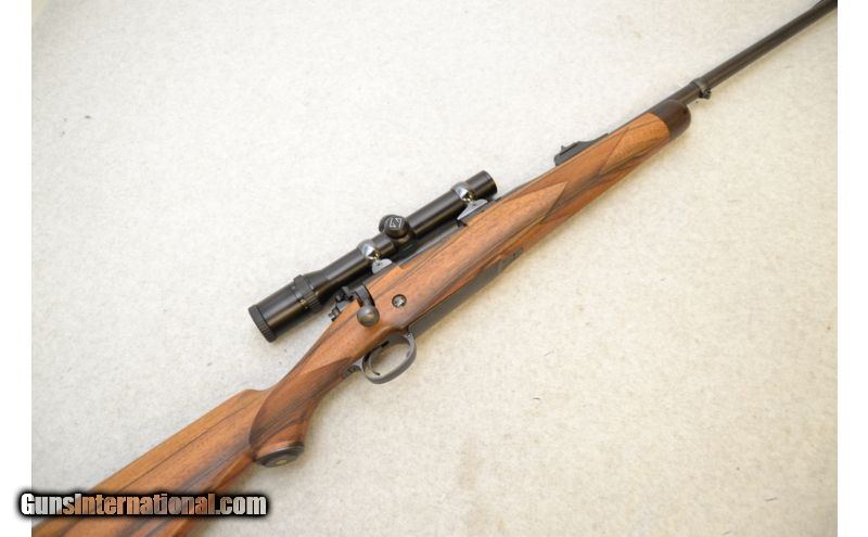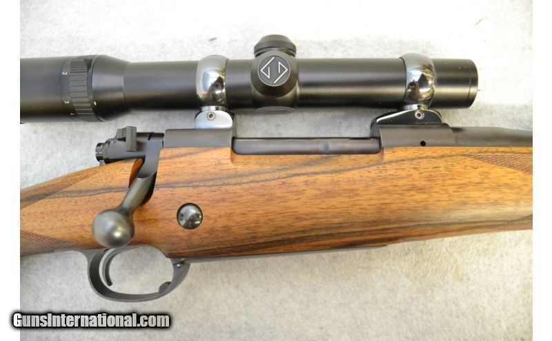 Description: Overall condition of this fine rifle is excellent. The metal is rust free but does have some handling marks to it and the right side of the front sight has some discoloration. The wood has some minor handling marks such as a dent in the pistol grip and a scratch in the stock (see pictures). The scratch on the stock looks far worse in the pictures than it actually is. The bore is in excellent condition with nice shine and strong lands/grooves. Combining modern manufacturing with time-honored techniques, the artisans at Dakota Arms have crafted a rifle that is as functional as it is elegant. The top tier grade walnut gives this rifle a grace that runs from the ebony grip cap to the branded grip cap and beyond in a way that cannot be found in synthetic furniture. The thick rubber pad helps to soak up some of the recoil of the heavy hitting .375 H&H round. SOLD Caliber Info: .375 Holland & Holland Magnum Chambers: Bolt action fed from an integral magazine with a hinged floor plate. Metal Condition: Very good to excellent. Wood Condition: Very good to excellent. Bore Condition: Excellent. Barrels: 23 1/2" Matte blued. Triggers: Narrow matte blued metal with smooth surface. Stock: Triple X grade walnut with shadow lined cheek piece. Stock Dimensions: 14" LOP Fore End: Triple X grade walnut with hand-cut point wrap checkering and ebony tip. Butt Pad: Black rubber. Weight: 9lbs 8oz Sights: Front ramp sight with rear island single blade; Zeiss Diavari 1.5-4x30mm scope w/ duplex reticle. Item Location: Green Bay, WI |