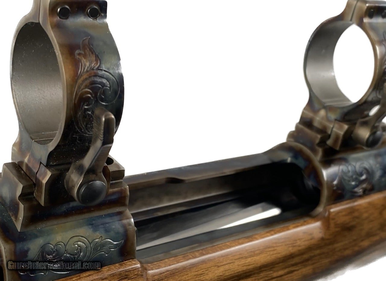 Description: Guns Listing ID: 679571 KW 12/7/22 1 of 10 Case Hardening by Turnbull Restoration Turkish Walnut High Grade Wood Jeweled Bolt SOLD Manufacturer: DAKOTA ARMS Model: Custom Model 76 Caliber Info: .375 H&H MAG Condition: Used - Non-Certified Barrels: 2.6 BARREL Finish: CASE HARDENED |
