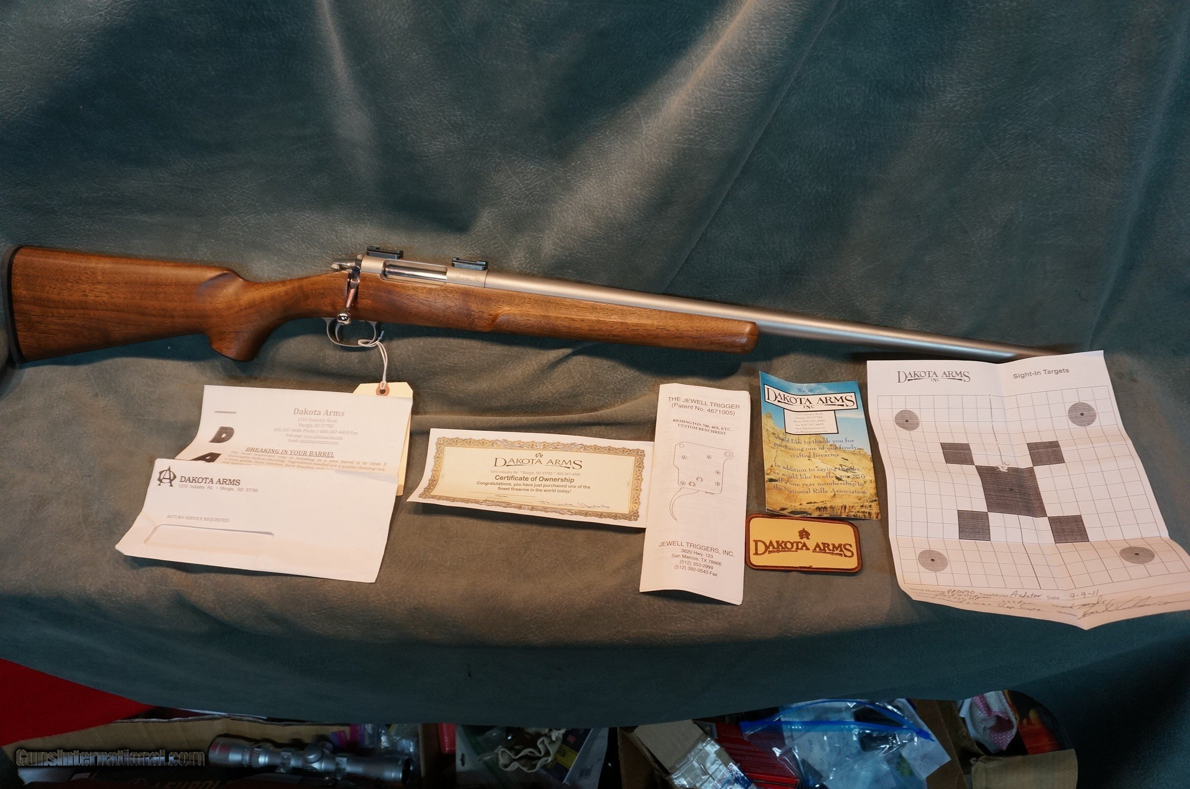 Description: Dakota Arms Heavy Predator 223 24" stainless heavy barrel,hand rubbed oil finish walnut stock,Jewell trigger,new in the case with paperwork and Talley bases. GUN COLLECTIONS WANTED FOR CASH! We buy, sell, consign and trade new and used firearms.We will pay finders fees and travel for large collections. This is our 46th year in business. We offer 90 day layaways with 20% down. No return on layaways. Firearms will need to be transferred through a FFL dealer. Prices reflect a cash discount. There will be 3% added to credit card sales. We trade for gold and silver. THANK YOU! SOLD |