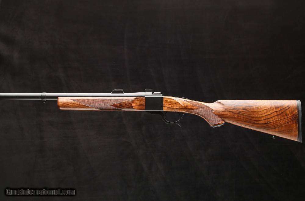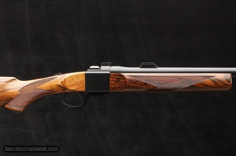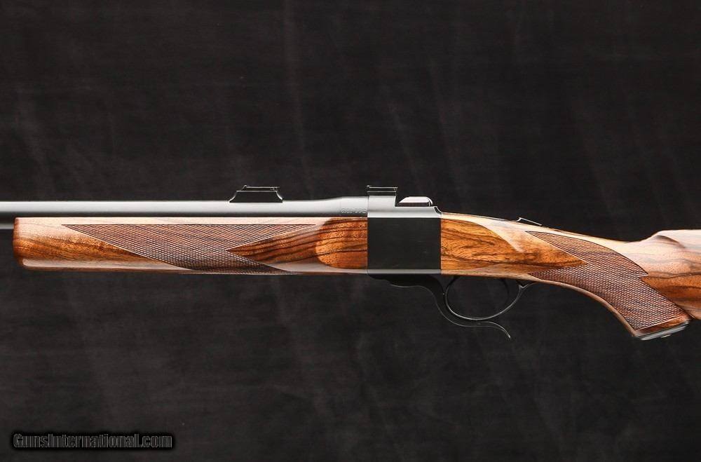 Description: Dakota Arms 6mm PPC Model 10 Single Shot Rifle. Black matte finish single shot falling-block receiver. Exhibition English walnut stock butt stock w/ 13 5/8" LOP over a black recoil pad. Special order beavertail forend and 24" barrel w/ a No. 4 contour Lothar Walther barrel. Ball rear swivel and barrel-band front swivel. Dovetail mounts for Dakota Rings by Talley. Rifle is as new. Price: $4,795.00 Contact Seller |