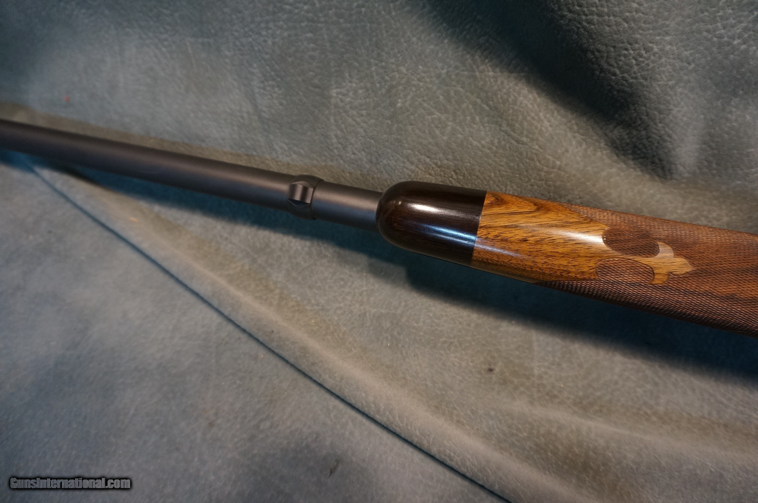 Description: Dakota Arms Model 76 Custom,330 Dakota,beautiful Morrocan Walnut stock,features fluer de lis checkering with ribbons,point skeleton grip cap,ebony forend tip,14 3/8" LOP,25" barrel with quarter rib and banded front sight,inletted rear swivel with barrel band,3 panel checkered bolt,jeweled bolt and follower,engraved and signed by Martin Rabeno with a Caribou and Bear on the floorplate,scroll engraving on the floorplate,action,barrel band and front sight,excellent condition with 99% bluing,1" rings and bases,over $15000 new. GUN COLLECTIONS WANTED FOR CASH! We buy, sell, consign and trade new and used firearms. This is our 44th year in business. We offer 90 day layaways with 20% down. No return on layaways. Firearms will need to be transferred through a FFL dealer. Prices reflect a cash discount. There will be 3% added to credit card sales. We trade for gold and silver. THANK YOU! SOLD |