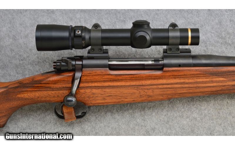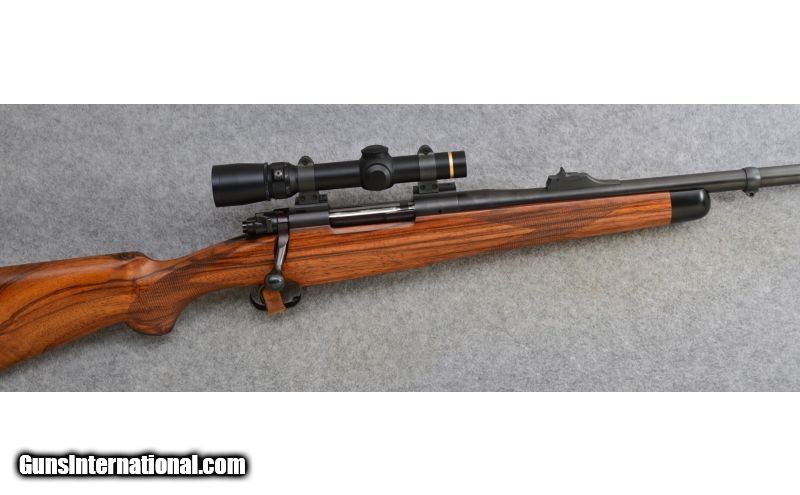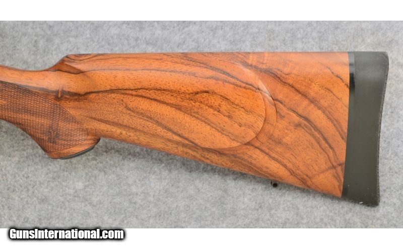 Description: Excellent condition overall. SOLD Caliber Info: .375 Holland & Holland Magnum Metal Condition: Excellent Wood Condition: Excellent Bore Condition: Excellent Barrels: 23" Matte Blued Steel with Threaded Muzzle (No Brake Included) Triggers: Adjustable Single Stage Stock: Deluxe Walnut with Raised Cheekpiece Stock Dimensions: LOP: 13 1/2 Fore End: Ebony Fore Arm Tip Butt Pad: Black Recoil Pad Weight: 9 lbs. Sights: Fixed Rear Sight with a Bead Front Sight, Leupold Vari-X III 1.5-5x Scope Item Location: Hamburg, PA |