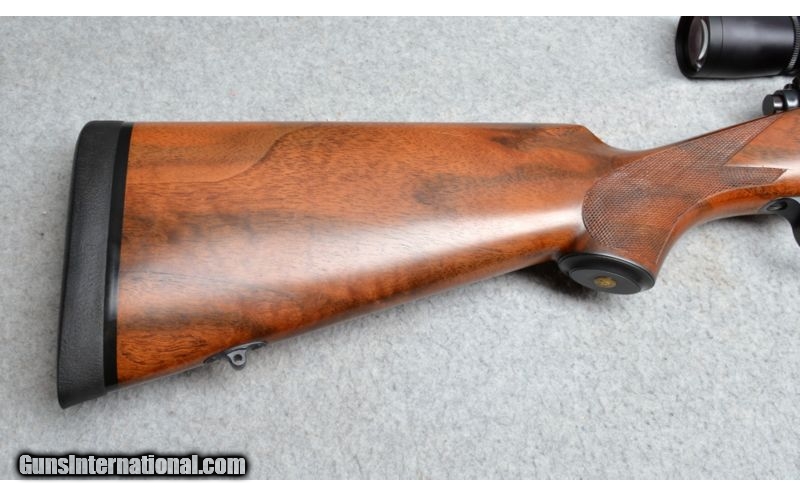 Description: This is a fine example of an Original Dakota 76 rifle. This one is chambered in .375 H&H Magnum and topped of with a Leupold Vari-X III 1.5x5 scope. This rifle is ready for your next safari. This rifle has very few marks and appears to be in very good condition. The Dakota 76 is one of the most desired hunting rifles due to the excellence in quality and craftsmanship. This would make another great piece in a firearms collection. SOLD Manufacturer: Newer production. Caliber Info: .375 H&H Magnum. Chambers: Bolt action repeater. Metal Condition: Very good with light handling and wear marks. Wood Condition: Excellent with very little signs of use. Bore Condition: Bright and shiny. Barrels: 23 inch matte blued barrel with sling mount. Triggers: Factory blue Steel. Stock: Checkered walnut with oil rubbed satin finish. Fore End: Checkered walnut with oil rubbed satin finish with ebony tip. Butt Pad: Black rubber recoil pad. Weight: 8 lbs, 14 oz. Sights: Leupold Vari-X III 1.5x5 scope. Item Location: Fort Worth, TX |