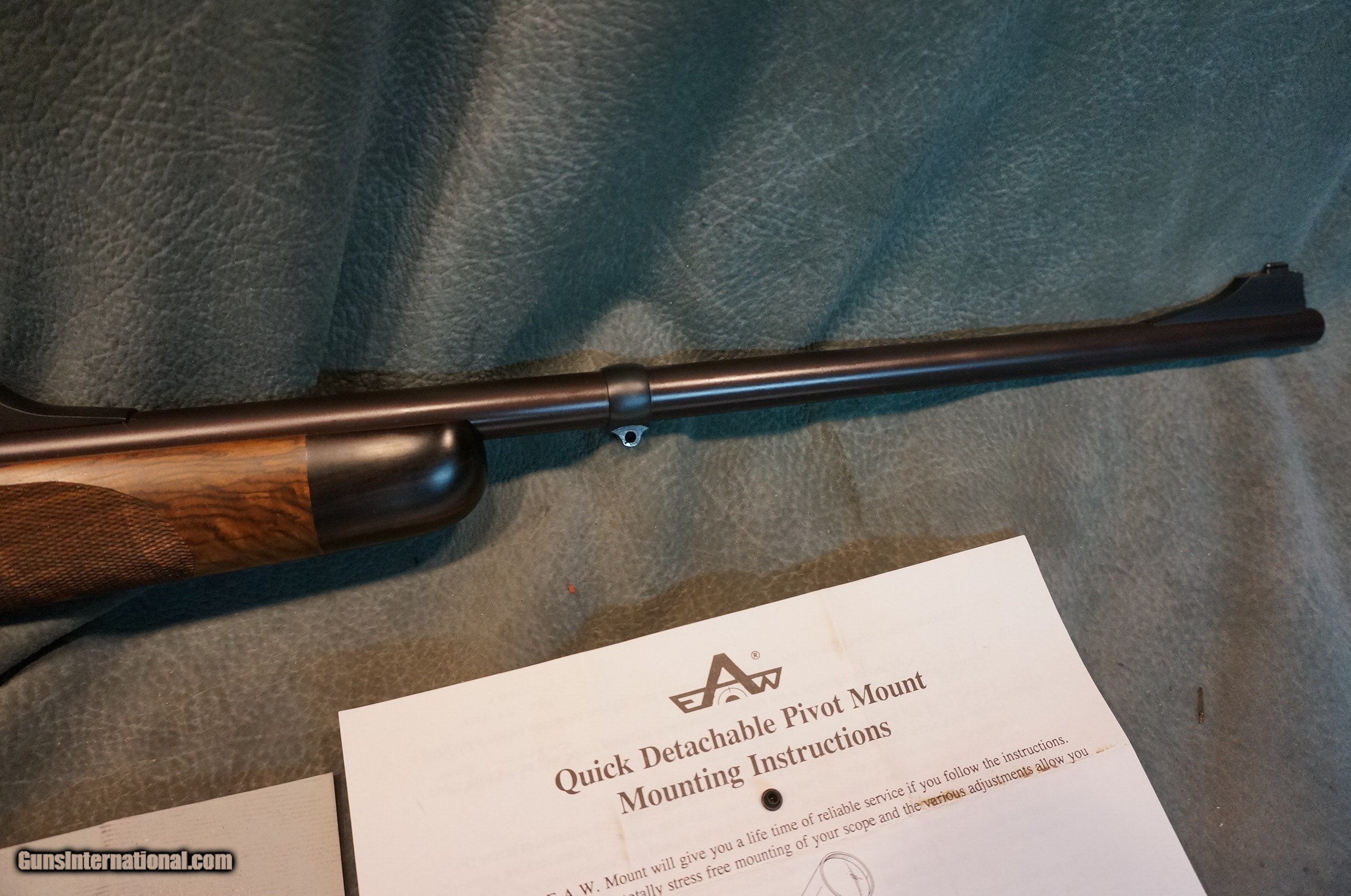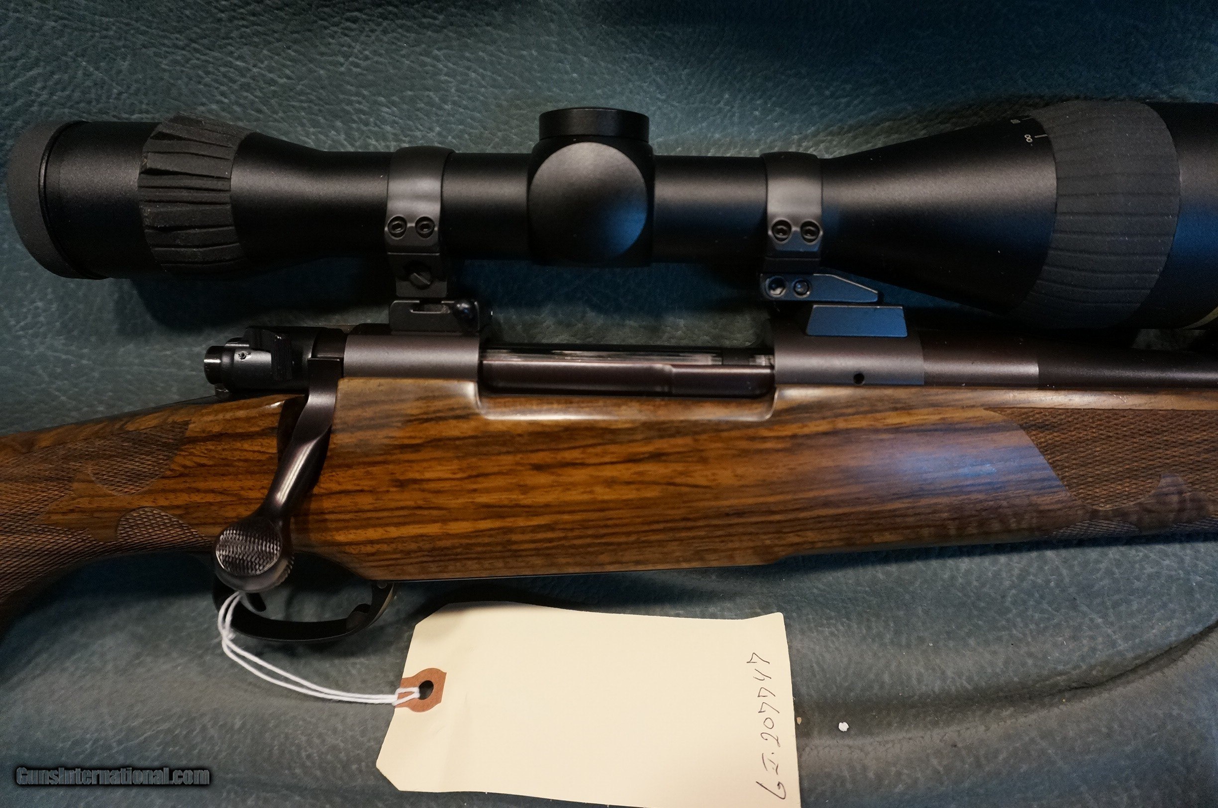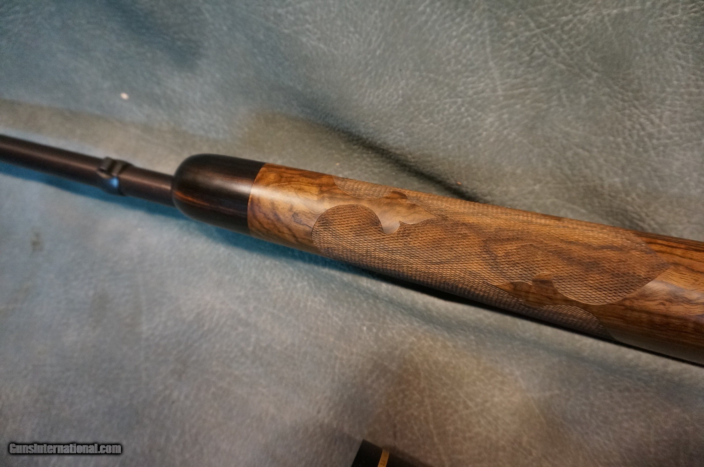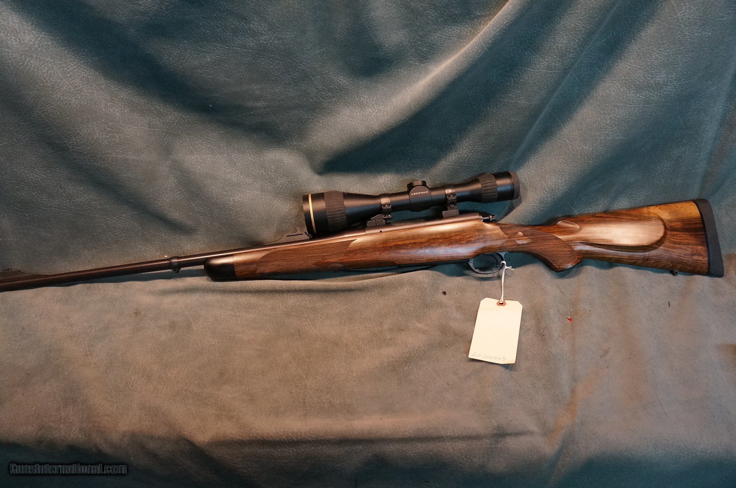 Description: Dakota Arms Model 76 Safari 300WinMag,23" barrel with island rear sight and front sight with flip up night sight,serial #2223,beautiful Exhibition grade English Walnut stock with great figure,cheekpiece with shadowline,fluer de lis checkering,ebony forend tip,skeleton grip cap,inletted rear swivel with barrel band,straddle floorplate,3 panel checkered bolt knob,EAW quick release 30mm rings and bases,98% overall $4995,with Leuplod LPS 4.5-14X A.O. 30mm scope $5595.With manual and owner certificate signed by Don and Norman Allen.A great set up for less than 1/2 of replacement cost. GUN COLLECTIONS WANTED FOR CASH! We buy, sell, consign and trade new and used firearms.We will pay finders fees and travel for large collections. This is our 45th year in business. We offer 90 day layaways with 20% down. No return on layaways. Firearms will need to be transferred through a FFL dealer. Prices reflect a cash discount. There will be 3% added to credit card sales. We trade for gold and silver. THANK YOU! SOLD |