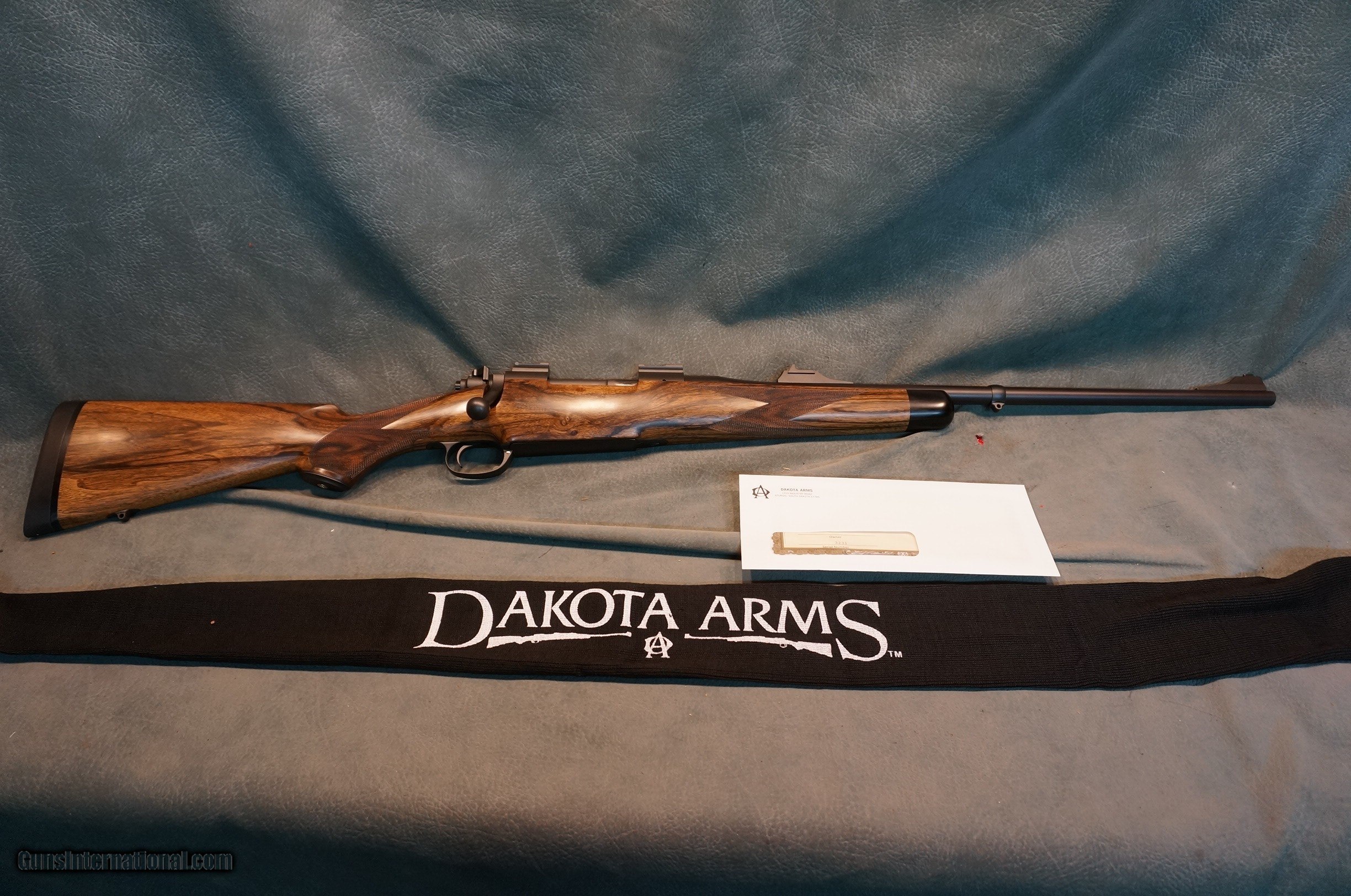 Description: Dakota Arms Model 76 Safari Grade 7mm Dakota,23" barrel with island rear sight and flip up front night sight,barrel band with inletted rear swivel,fancy exhibition grade English walnut stock with great figure,cheekpiece,wrap checkering,ebony forend tip,straddle floorplate,new in the box with papers,was $8869.ON SALE!! $3895!! GUN COLLECTIONS WANTED FOR CASH! We buy, sell, consign and trade new and used firearms. This is our 44th year in business. We offer 90 day layaways with 20% down. No return on layaways. Firearms will need to be transferred through a FFL dealer. Prices reflect a cash discount. There will be 3% added to credit card sales. We trade for gold and silver. THANK YOU! SOLD |
