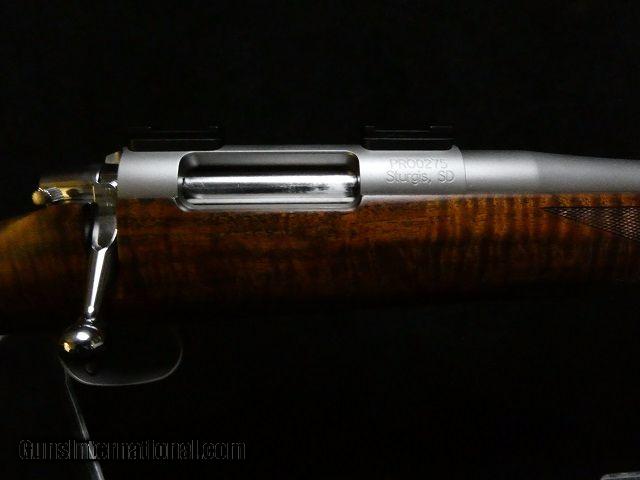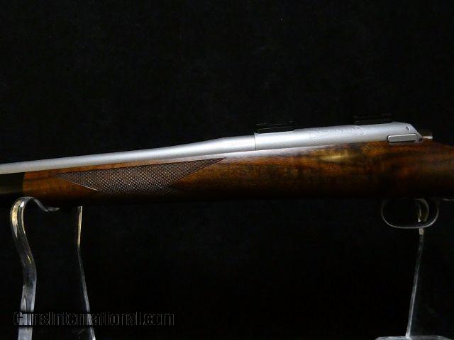 Description: This is an early production Dakota Predator with upgraded wood, panel checkering done by hand, shadowline cheekpiece, inletted sling swivels, ebony forend tip and talley bases, perfect condition. Stainless finish with a 24" bbl. Bolt action. SOLD Manufacturer: Dakota Arms Model: Predator Caliber Info: 223 Condition: As new Action: Bolt |