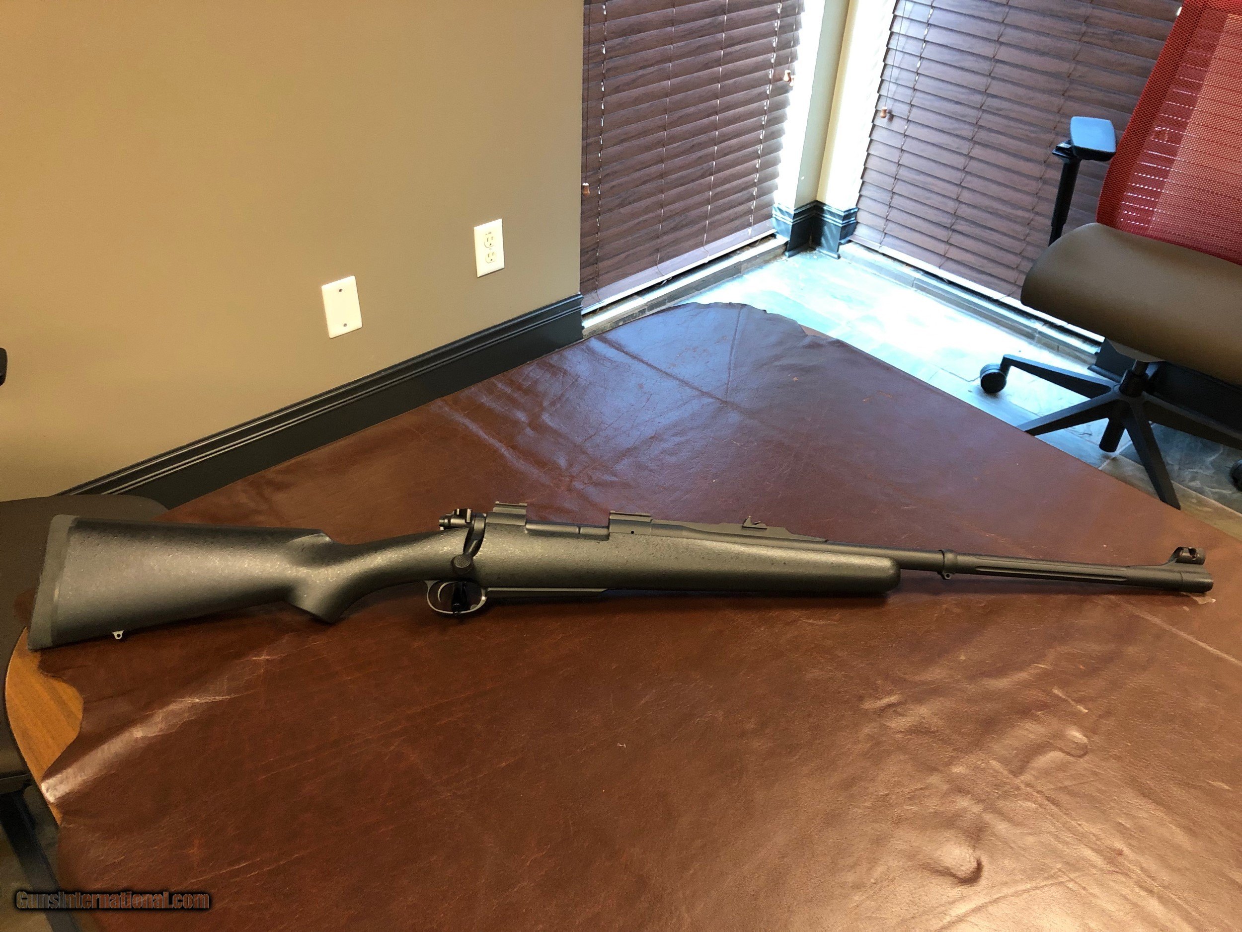 Description: Like New, Dakota Model 76 African in 400 H & H 23 Inch quarter rib and fluted barrel with standing / folding sights, Barrel band, hooded front sight with optic front bead. SOLD |