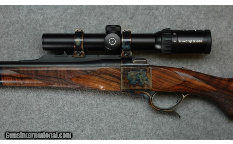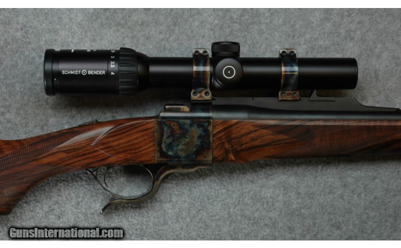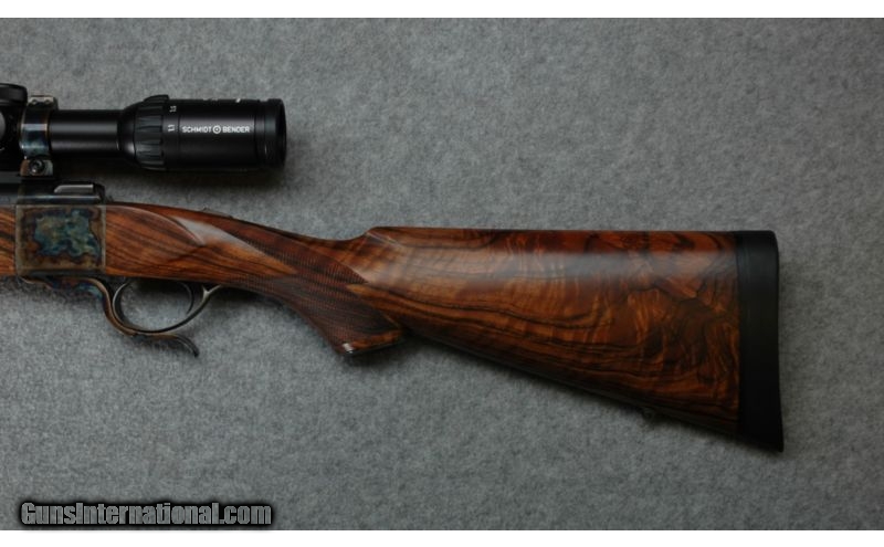 Description: • Firearms are subject to pending sales. • Replies to emails may take 24-72 hours to respond to (excluding weekends). • Although we strive for accuracy, we are not responsible for pictorial, editorial or typographical errors. The pictures provided are the actual pictures of the gun that is for sale, not a stock photo! PUT THE GUN ON YOUR CABELA'S CLUB VISA AND EARN POINTS TOWARDS YOUR NEXT PURCHASE! DON'T FORGET WE DO HAVE A LAYAWAY PROGRAM!Dakota Deluxe Model 10 with case hardened receiver, exhibition grade wood, and Schmidt and Bender Zenith 1.1-4X24 mounted scope with case hardened scope rings SOLD Caliber Info: .375 H&H Magnum Chambers: Single shot Metal Condition: Like new with very light handling and wear marks Wood Condition: Like new with very light handling marks Bore Condition: Like new bright shinny rifling Barrels: 23 inch Triggers: Single action Stock: Exhibition grade walnut with checkered pistol grip with case hardened pistol grip cap ring and sling mounting studs Stock Dimensions: LOP - 13 3/4 inch Fore End: Exhibition grade walnut with checkered hand hold and black fore end cap Butt Pad: Dakota black rubber butt pad Weight: 8 pound 14 ounce Sights: Side adjusted rear sight and hooded round top blade front sight with mounted Schmidt and Bender Zenith 1.1-4X24 scope with case hardened scope rings Extras: With no box and no extras Item Location: Hammond, IN |