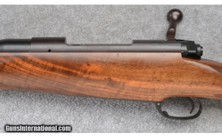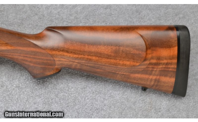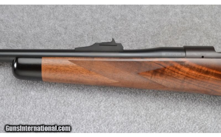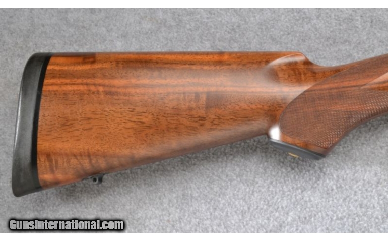 Description: Wood shows a few light hunting marks and barrel blue has one small mark. Bore is excellent. No box. SOLD Manufacturer: S/N 32XX Caliber Info: .375 H&H Metal Condition: Excellent Wood Condition: Very Good Bore Condition: Excellent Barrels: 23 Triggers: Original Stock: Checkered Walnut Pistol Grip with Steel Cap Stock Dimensions: 13 3/4" LOP Fore End: Checkered Walnut with Ebony Cap Butt Pad: Black Rubber Butt Pad Weight: 8 1/2 LB Sights: Bead Front - Notch Rear Item Location: Wheeling, WV |