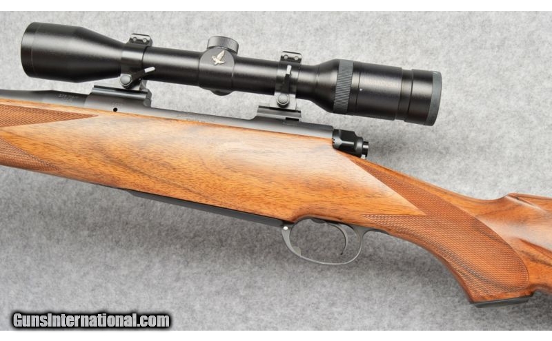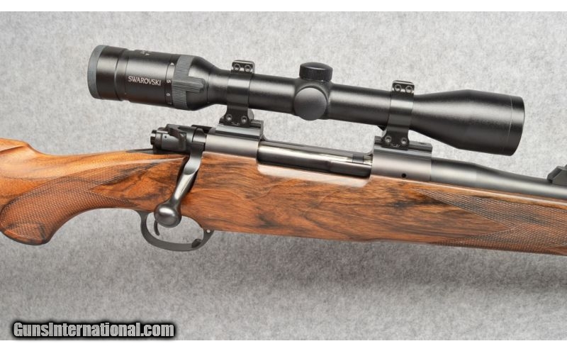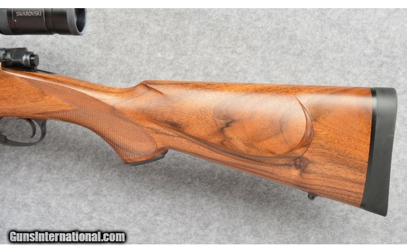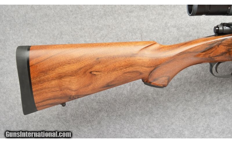 Description: Excellent condition overall. SOLD Manufacturer: S/N 2639 Caliber Info: .375 Holland & Holland Magnum Metal Condition: Excellent, Slight scratch on the trigger guard Wood Condition: Very good condition with several light handling marks. Bore Condition: Very Good Condition. Bright and shiny. Good rifling. Barrels: 23" Blued Steel Stock: Checkered Pistol Grip, High Grade Walnut, Stock Dimensions: LOP: 13 5/8 Fore End: Ebony Fore End Tip Butt Pad: Dakota Recoil Pad Weight: 9 Lbs 2 Ozs Sights: Fixed front blade / rear leaf. Drilled and tapped for scope. Item Location: Lone Tree, CO |