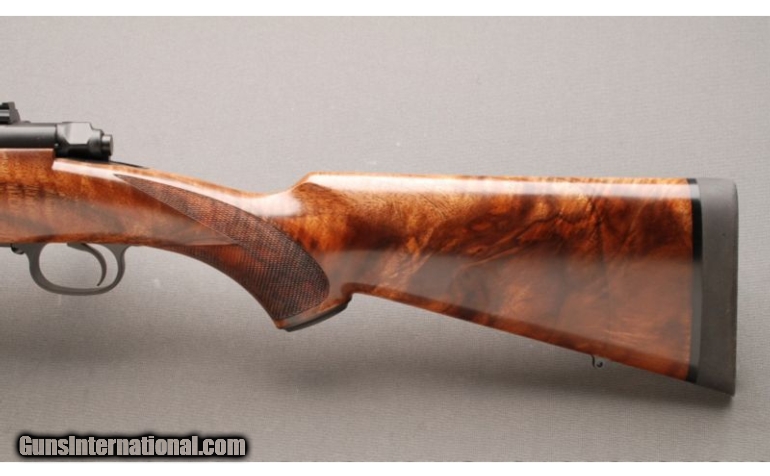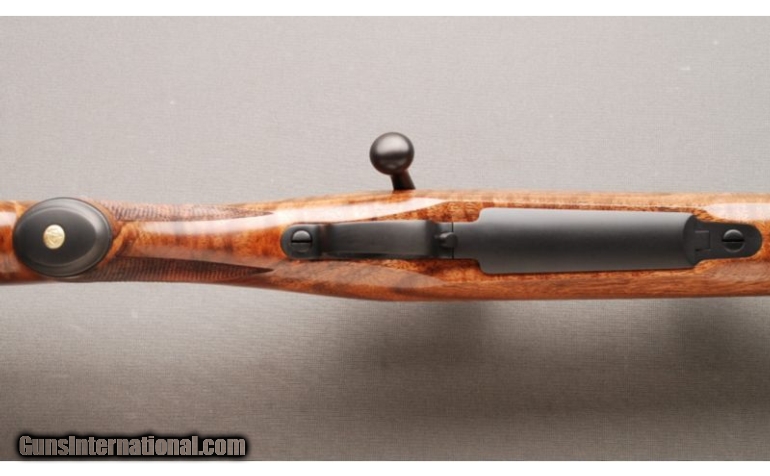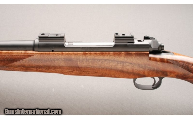 Description: This Dakota Arms Model 76 Alpine Grade in .257 Roberts is a new rifle. This Dakota has a 22 inch light barrel with non-reflective finish and comes with factory mounted custom bases on the receiver. Rifle features a three position wing style safety and four round blind magazine with easy drop plate release. The stock is of XX Fancy European Checkered Walnut with gloss finish, pistol grip with metal grip cap, Schnabel forearm, and has a Pachmayr rubber recoil pad. This rifle comes in factory full length hard case certificate and test target. SOLD Manufacturer: 2011 Caliber Info: .257 Roberts Chambers: Hinged, Drop Plate Magazine Metal Condition: New Rifle! Wood Condition: New Rifle! Bore Condition: New Rifle! Unfired Save For Factory Test Fire Barrels: 22 Inch Light Barrel with Barrel Band and Sling Stud; without Sights Triggers: Smooth Factory Trigger Stock: XX Fancy European Checkered Walnut with Pistol Grip and Metal Grip Cap with Dakota Emblem Stock Dimensions: LOP: 13 1/2". Fore End: 2-Panel Checkered Fore End with Schnabel Tip Butt Pad: Pachmayr Rubber Recoil Pad Weight: 7 1/2 Lbs. Sights: Receiver has Factory Mounted Custom Bases Extras: Comes in Factory Hard Plastic, Full Length, Gun Case w/ Certificate and Test Target. Item Location: Lehi, UT |