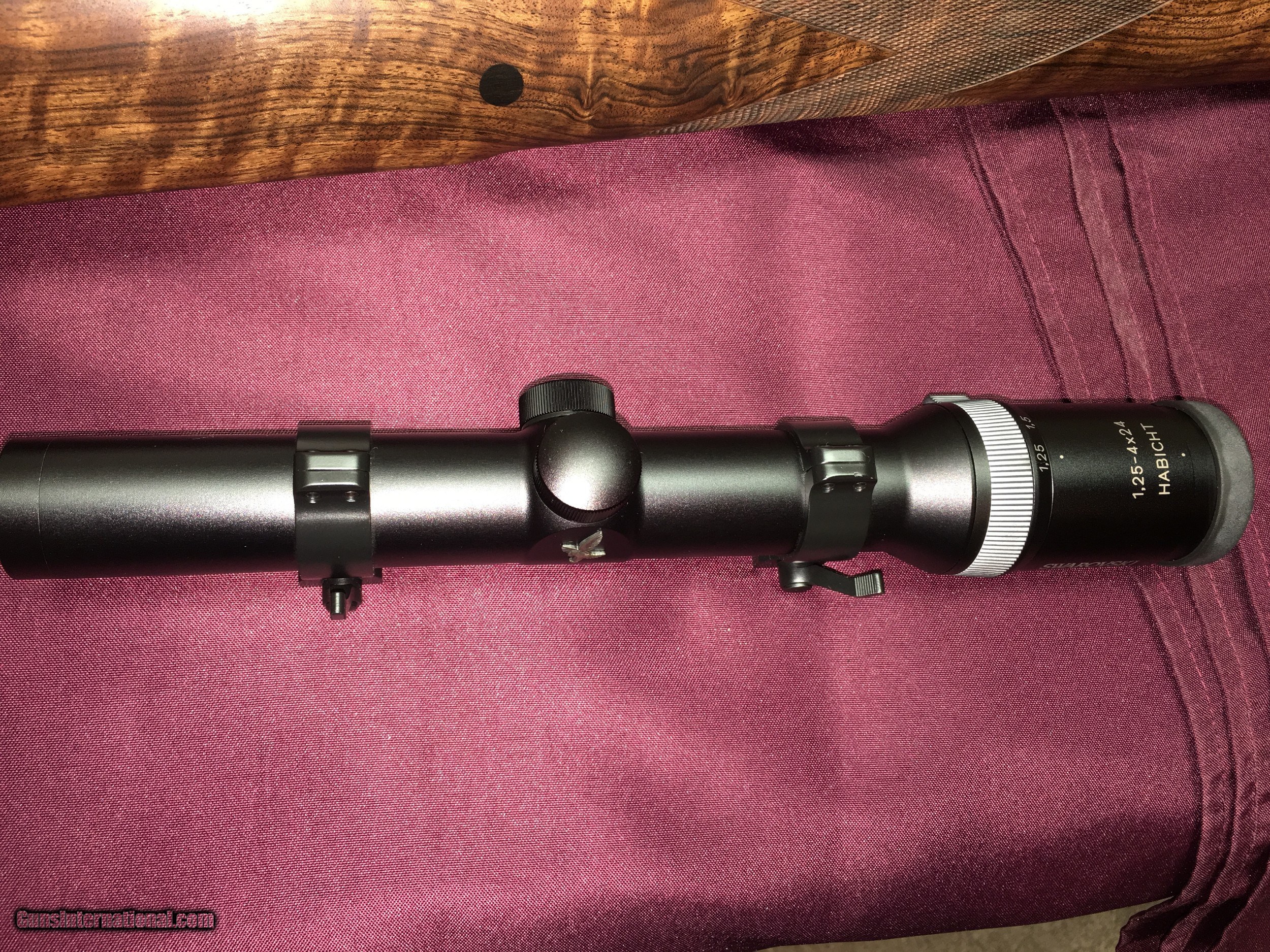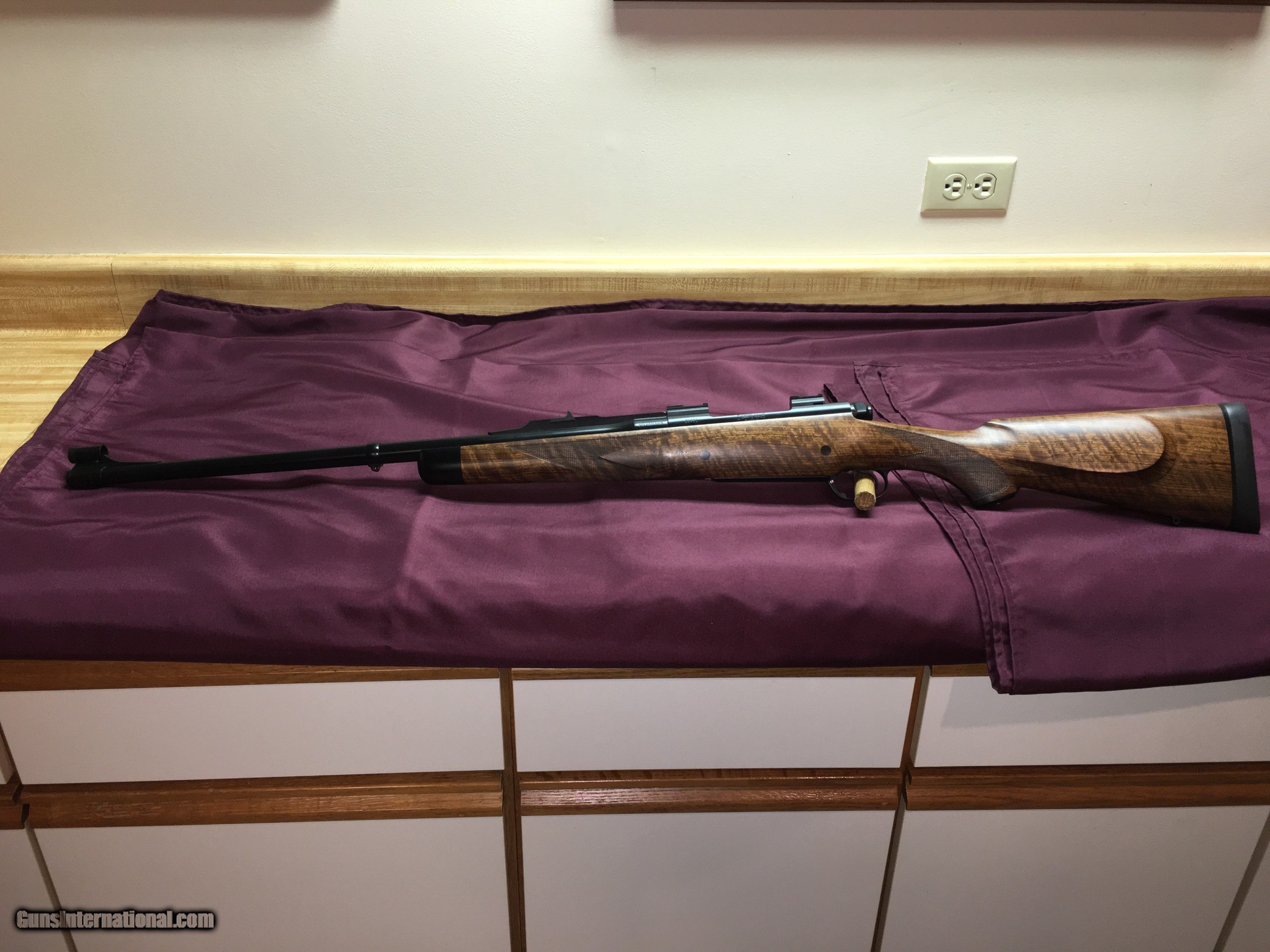 Description: Dakota Safari .375 H&H Safari double cross bolts, 3X English walnut, standard LOP, 24 inch #5 premium Walther stainless barrel, front sight barrel band, with flip up night sight, gold inlayed rear sight, 1/4 rib, three-panelled checkered bolt, Talley QD 30mm rings, Dakota Teflon coating, with all paperwork for gun and box and paperwork for scope, as new. built in 2003.It's test fired only. One owner. Never hunted. Swarovski 1.25 X 4 30mm scope not included, but available for extra charge. FFL only. Shipping and insurance. SOLD |