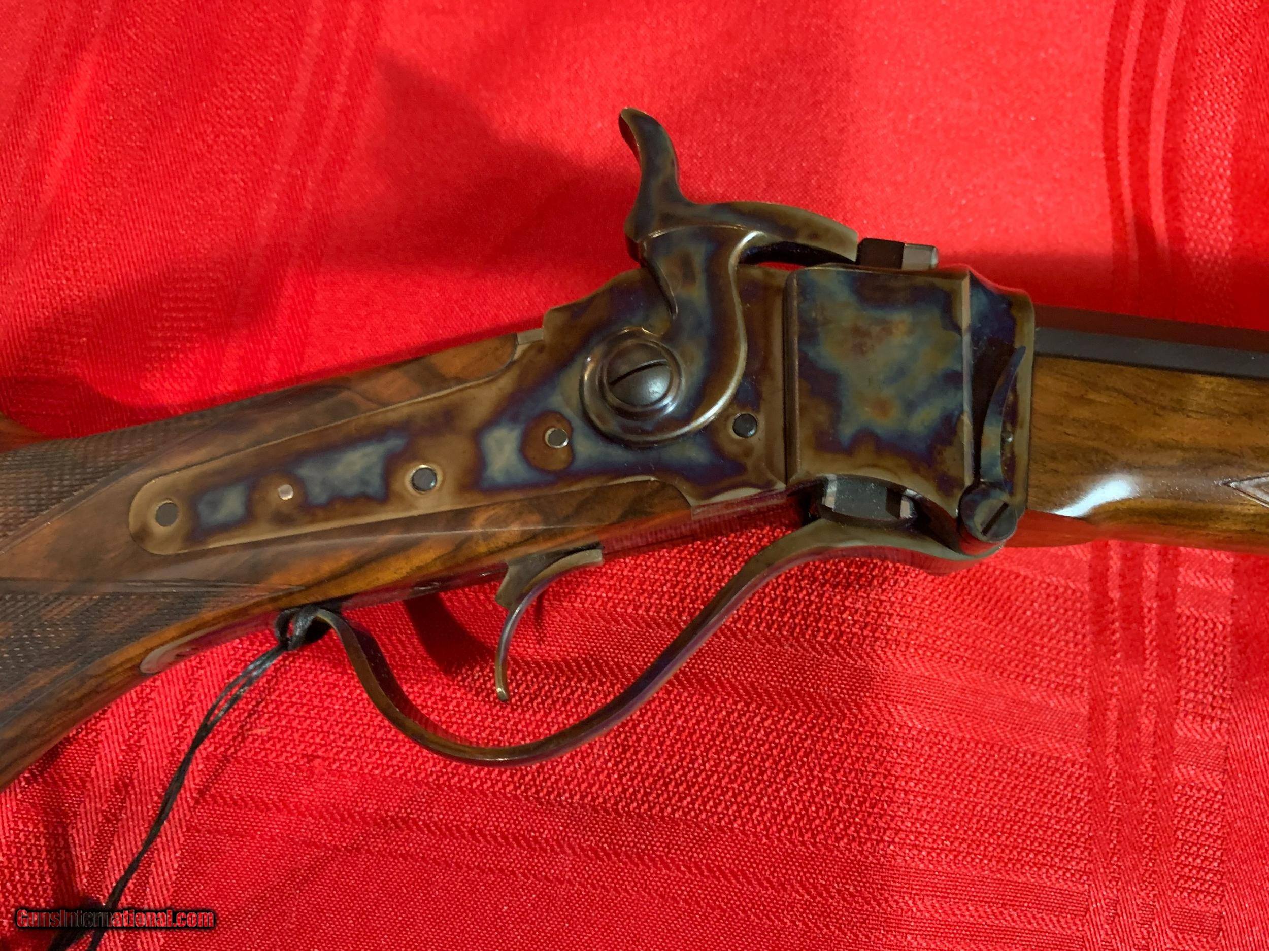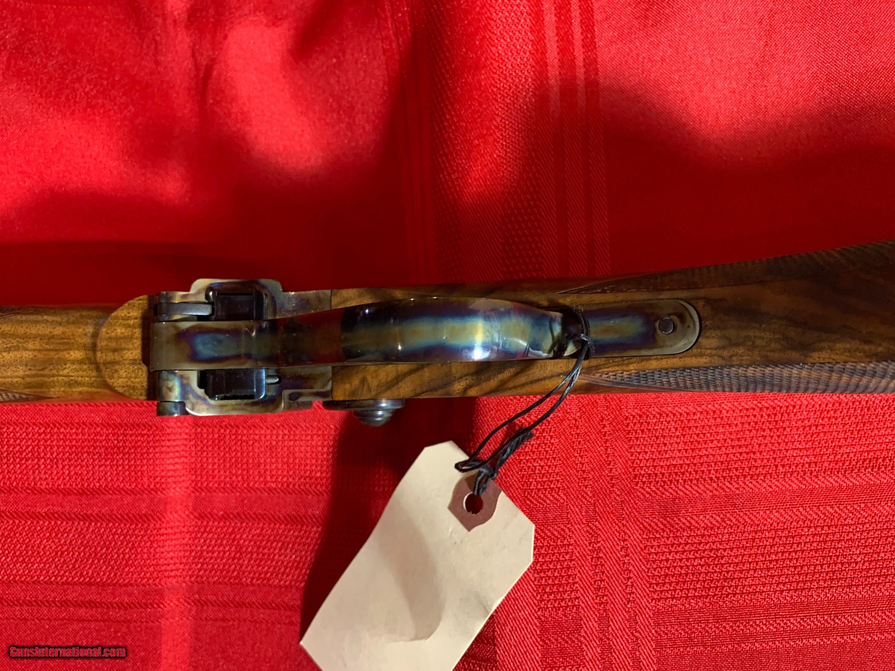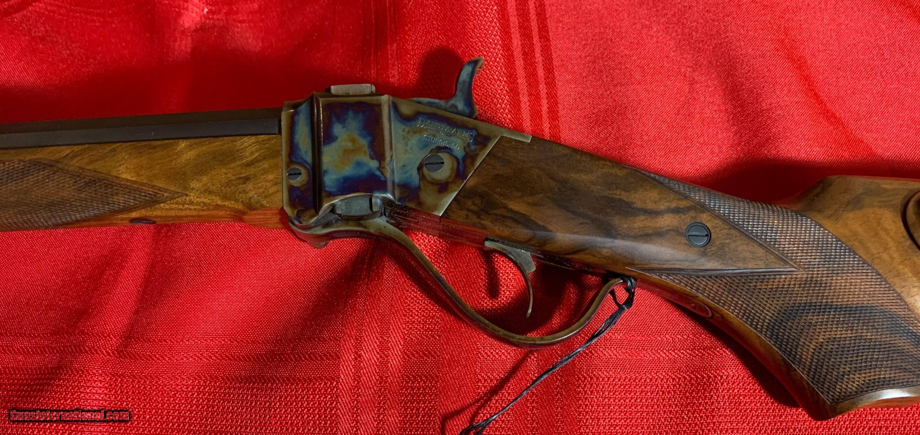 Description: Dakota,s sharps rifle. Rifle is 80% size of original sharps. 30-40 Krag caliber. Gun has optional 24" round heavy barrel. Extra fancy pistol grip stock with cheek piece. Case colored action, hammer and lever. Blued barrel. Believe unfired. Flawless. SOLD Rifle Caliber: .30-40 Krag |