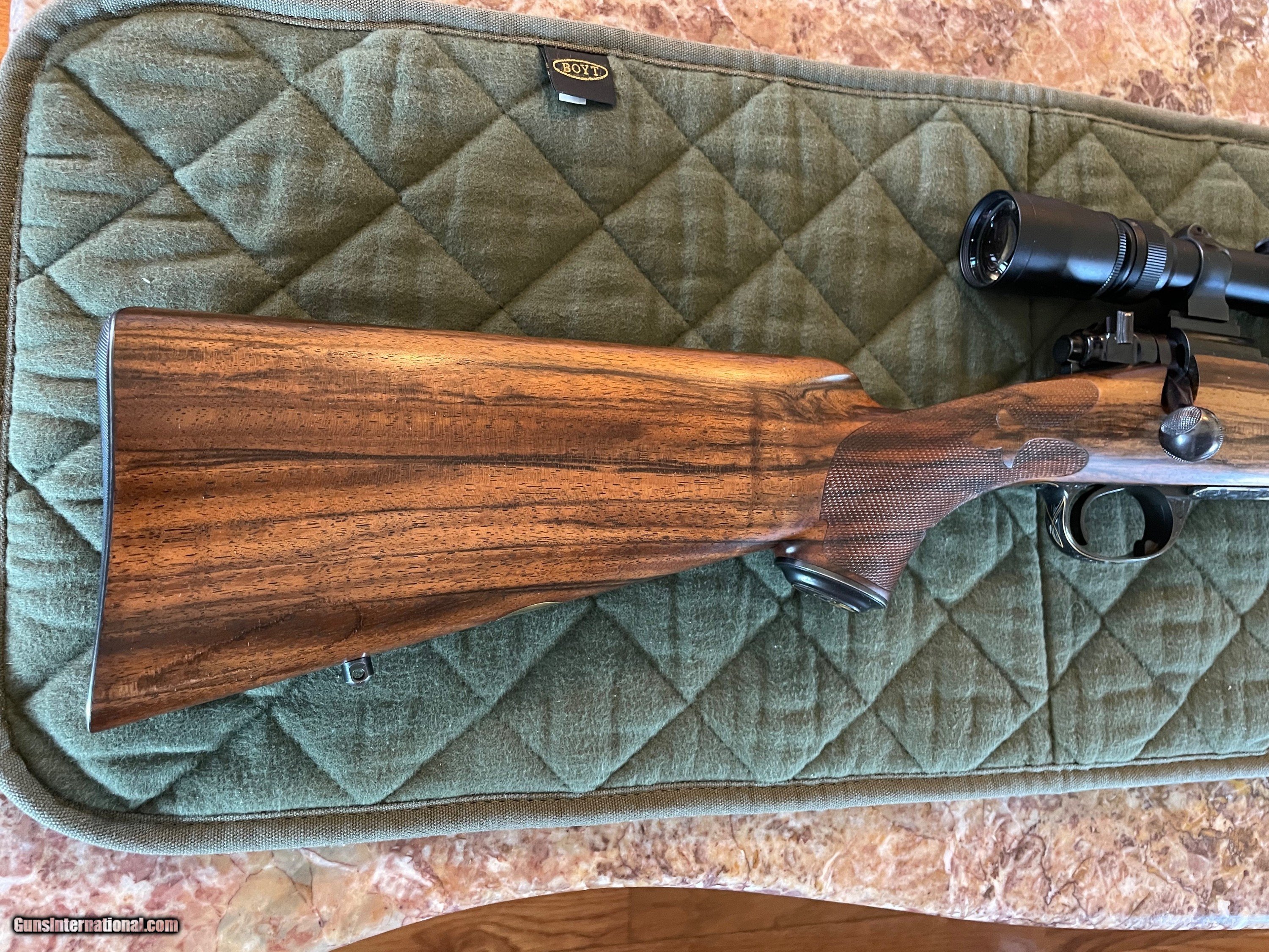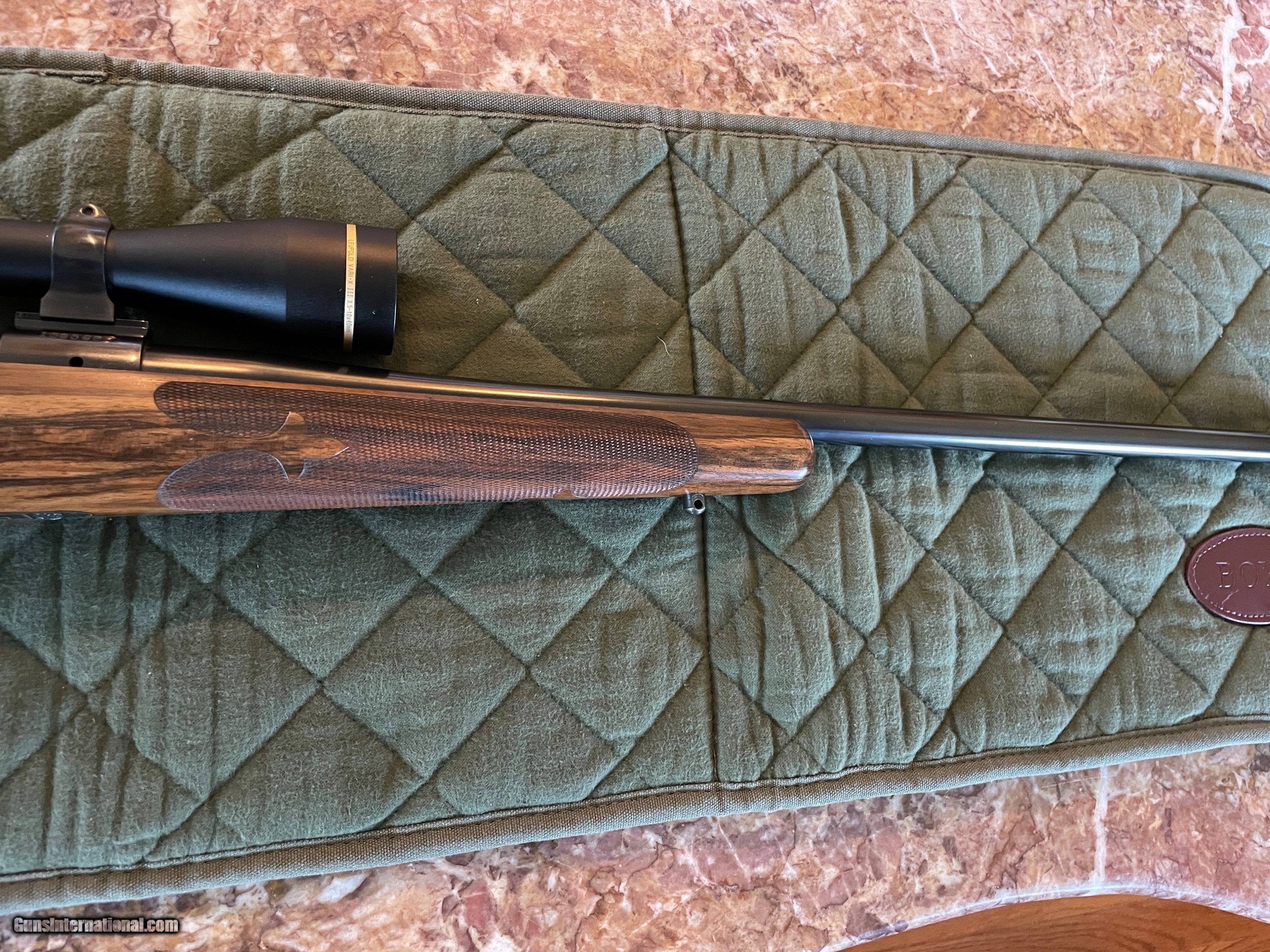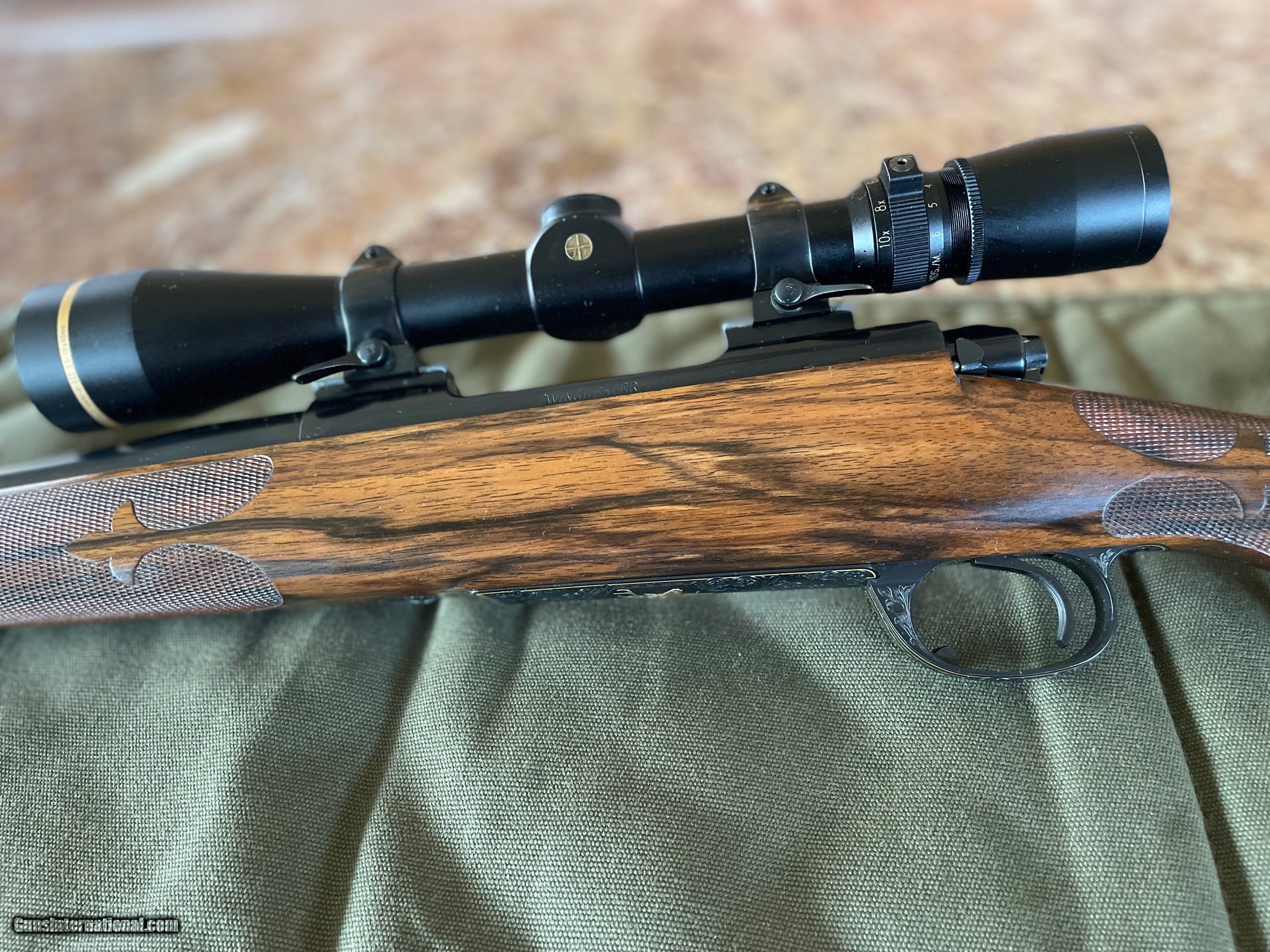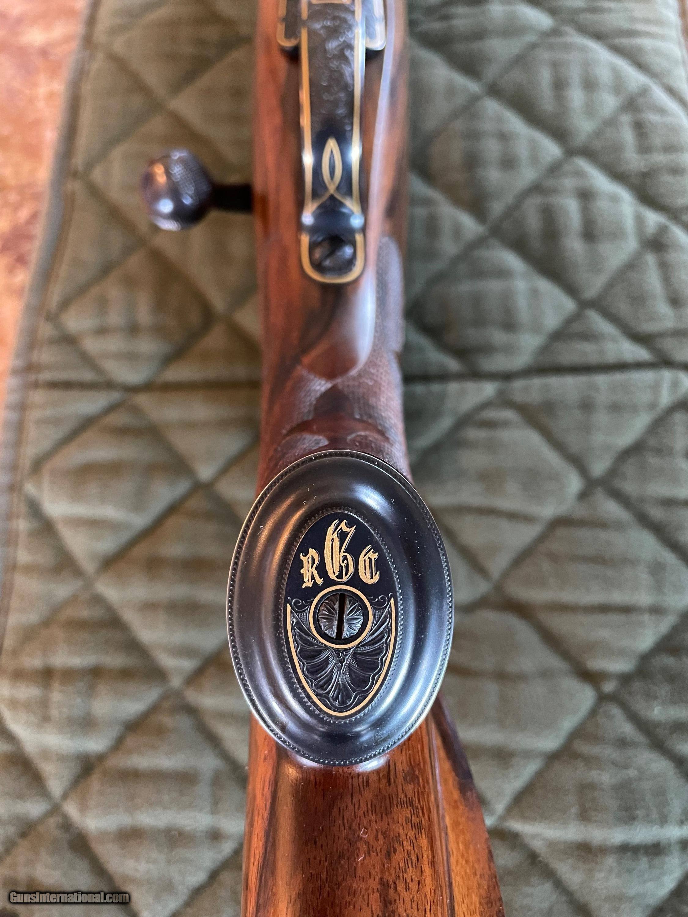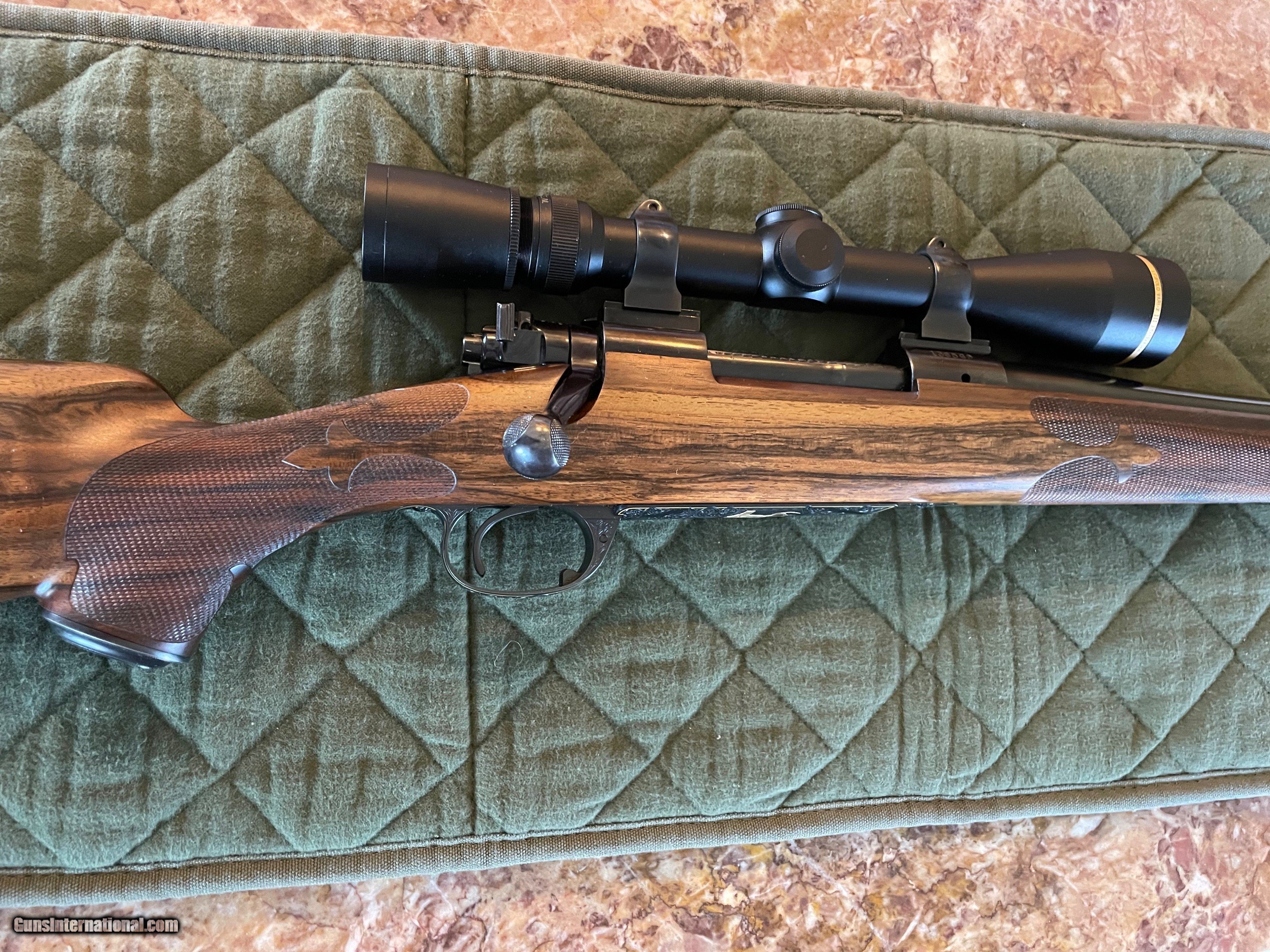 Description: This is a Model 70 Pre 64 Winchester Action Custom Rifle Built By Pete Grisel of Bend Oregon In 30-06 with a Leupold Vari Xlll 3.5X10X40MM Scope With Quick Detach Rings,Pete was the co founder of Dakota Arms Beautiful English Walnut Stock with Presise checkering Engraved By Koevening This is one Beautiful Rifle And very accurate. SOLD Manufacturer: Winchester/HL Grisel Model: Custom Serial Number: 138569 Barrel Length: 23” Butt Pad: Checkerd Steel with Trap Door LOP: 13 3/4” Sights: No Sights Manufacture Date: Built in 1981 Engraving: KoEvening |
