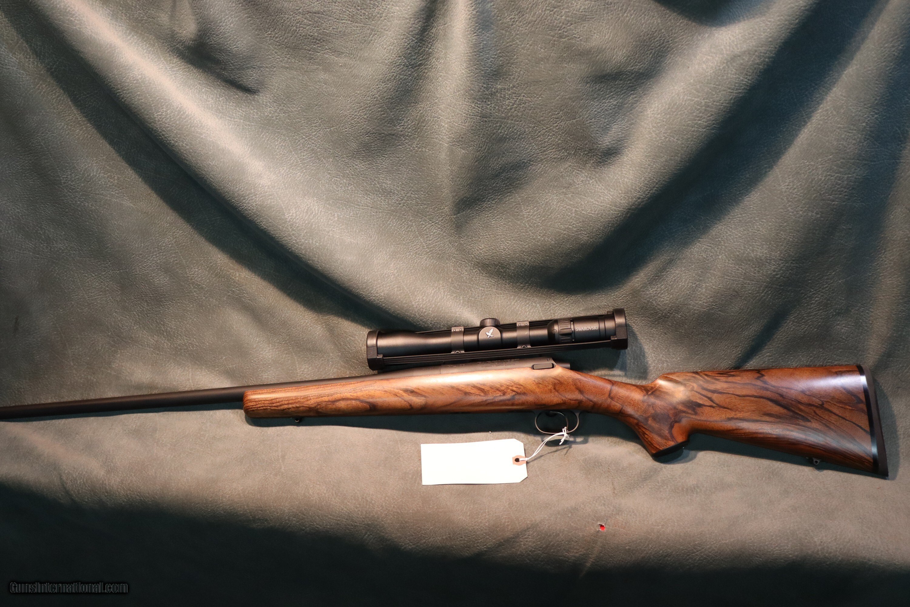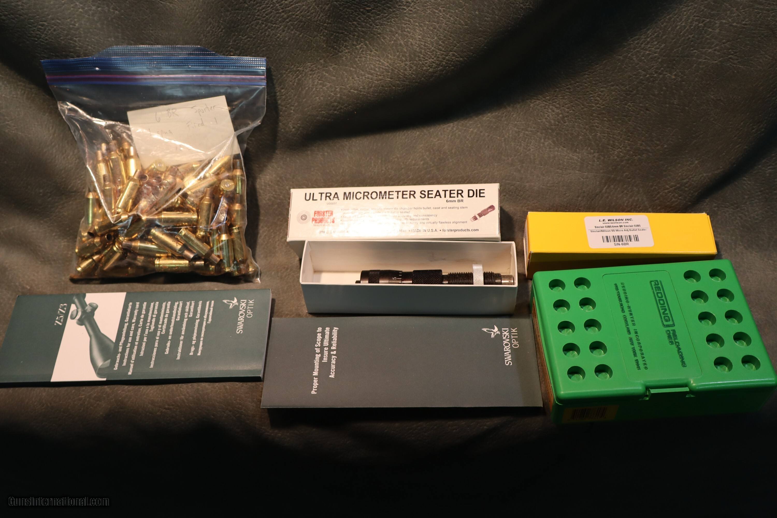 Description: Parkwest Arms Sporter Ace 6mmBR,24" barrel,stainless receiver and barrel with graphite black cerakote finish,highly figured exhibition grade English Walnut stock,Parkwest metal grip cap,inletted slng swivels,Trigger Tech special 2# trigger,Swarovski Z3 3-9x scope,with Talley rings and bases,excellent condition with the case,papers,dies,brass,Wilson bullet seater,seater die. GUN COLLECTIONS WANTED FOR CASH! We buy, sell, consign and trade new and used firearms.We travel for large collections,finders fee available. This is our 50th year in business. We offer 90 day layaways with 20% down. No return on layaways. Firearms will need to be transferred through a FFL dealer. Prices reflect a cash discount. There will be 3% added to credit card sales. We trade for gold and silver. THANK YOU! Price: $3,995.00 Shipping: $55.00 Contact Seller |