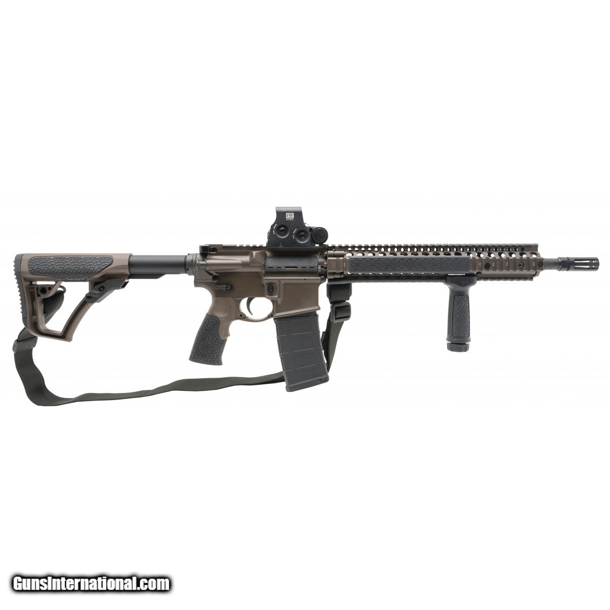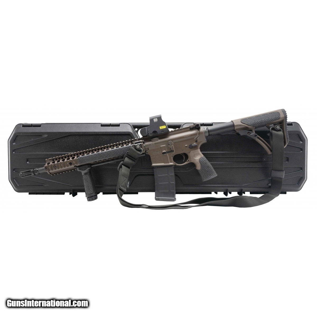 Description: " SN: DDM4339942. Modern production. 5.56 with a 14.5"" Pin & welded barrel. Bore is excellent. Semi-automatic rifle with FDE cerakote. Finish is in excellent condition. Rifle comes with foregrip, Eotech sight, rifle case, and sling. Overall excellent condition. SOLD |