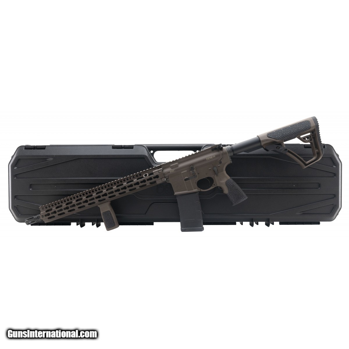Description: " SN: DDM4205391. Modern production, .300 AAC Blackout. Semi-auto tactical rifle with 16"" barrel, 15"" keymod rail and Daniel Defense stock, rip and vertical grip. In brown cerakote. Overall excellent condition. Comes with Hard case. SOLD |