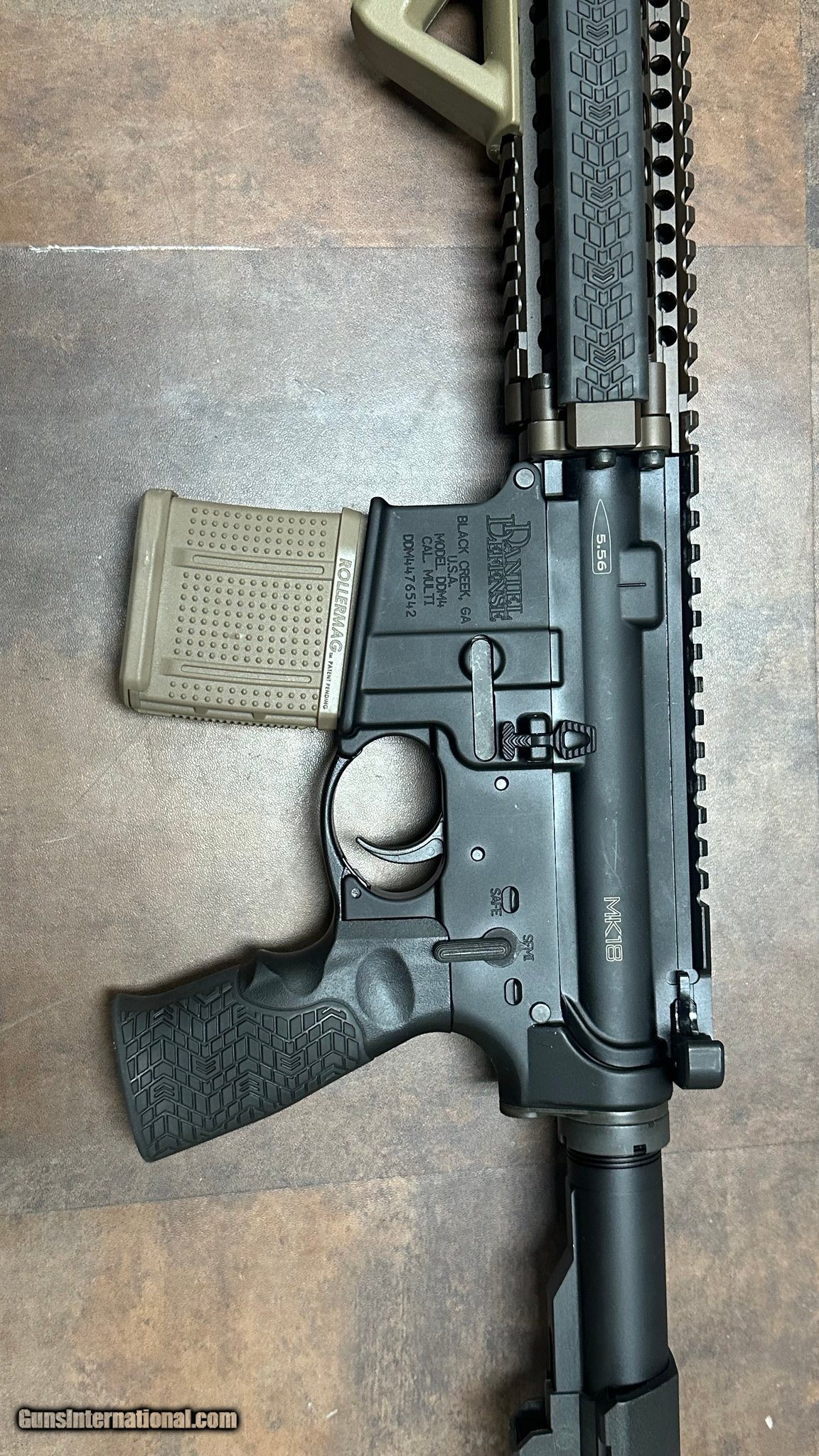 Description: Guns Listing ID: 1300468 Pre-Owned Daniel Defense DDM4 MK18 with Surefire Warcomp, adjustable brace and 2-20rd magazines. SOLD Manufacturer: DANIEL DEFENSE Model: DDM4 MK18 Caliber Info: 5.56X45MM NATO Condition: Used - Non-Certified Barrels: 10.3 BARREL Finish: BLACK AND BRONZE |