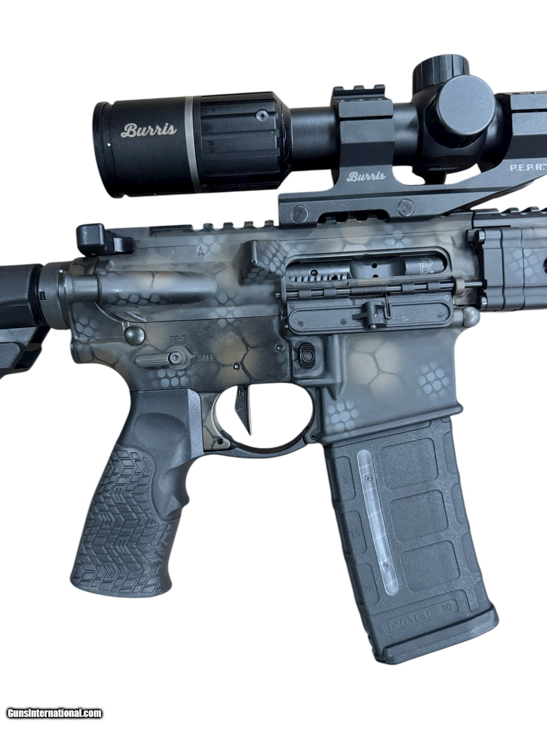 Description: Daniel Defense DDM4 V7 Pro 5.56 – 18" Kryptek Finish – Burris RT-6 LPVO + Magpul PMAG This Daniel Defense DDM4 V7 Pro is a high-performance AR-style rifle built for competition-ready accuracy and reliability. Chambered in 5.56 NATO, it features an 18" cold hammer-forged barrel, rifle-length gas system, and a lightweight MFR 15.0 M-LOK handguard, ideal for enhanced control and balance. This rifle has been Cerakoted in a custom Kryptek finish, giving it a sleek and aggressive look. It also comes topped with a Burris RT-6 1–6x24 LPVO in a Burris PEPR mount, ideal for quick target acquisition and mid-range versatility. Outfitted with a Magpul PMAG, Daniel Defense furniture, and textured Mission First Tactical grip and stock, this package is both refined and battle-ready. Features: Daniel Defense DDM4 V7 Pro semi-auto rifle 18” cold hammer-forged barrel 5.56 NATO chamber Kryptek Cerakote finish Burris RT-6 1–6x LPVO optic with Burris PEPR mount MFR 15.0 free-float M-LOK handguard DD muzzle brake Mission First Tactical stock and grip Includes one 30rd Magpul PMAGThis rifle is clean, professionally upgraded, and ready to perform. BUYER PAYS ACTUAL SHIPPING 3% CREDIT CARD FEE Rifle Caliber: 5.56x45mm NATO Serial Number: DDM4502191 -JF Price: $1,899.00 Contact Seller |