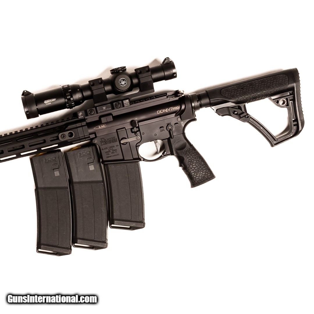 Description: Guns Listing ID: 854770 For sale is a Daniel Defense DDM4 V7 Pro. This is a competition-ready rifle and is widely regarded for its impressive performance among competitors but is excellent for tactical applications and personal protection as well. This DDM4 V7 Pro has a rifle-length gas system and a 1/7 twist. It‚‚s equipped with a Daniel Defense vertical foregrip and a Strike Eagle 1-6x24 scope with Vortex quick-release mount. Purchase includes the original case, manuals, three 32-round Daniel Defense magazines, and two recoil pads. Get the best bang for your buck when you get a Certified Used Firearm . When you see the Certified Used stamp on any of our firearms, you can be confident that you’re getting exactly what you want – a gun only in very good to excellent condition and held to the highest quality standard. All Certified Used Guns come with a ‘no questions asked’ return policy . PLUS, ALL CERTIFIED USED GUNS SHIP FREE SOLD Manufacturer: DANIEL DEFENSE Model: DDM4 Caliber Info: 5.56X45MM NATO Condition: Used - Certified Barrels: 18 BARREL Finish: BLACK |