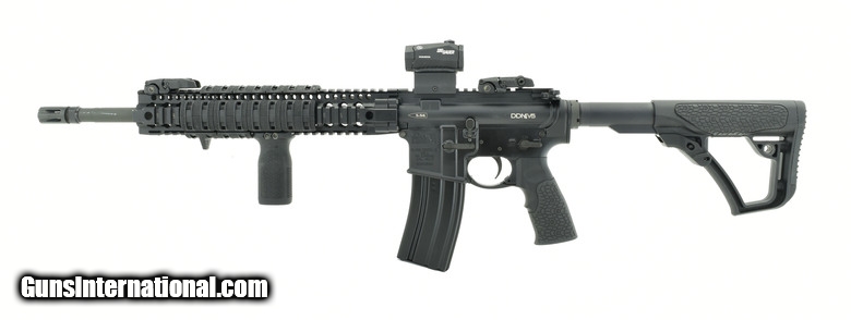 Description: Daniel Defense DDM4V5 5.56mm caliber rifle. Daniel Defense DDM4V5 chambered in 5.56mm with 12” quad rail handguard, Magpul RVG vertical grip and flip-up sights, Magpul rail covers adjustable stock and Sig Romeo 5 red dot optic in excellent condition.