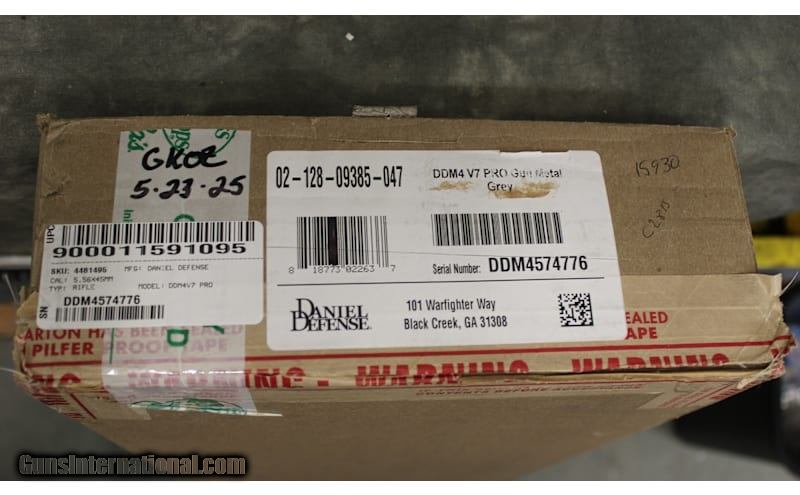 Description: Daniel Defense DDM4V7 Pro Gun Metal Grey 5.56 (02-128-09385-047) New in Box condition. Comes with all the original acessories and paperwork, orignal hard case and the factory shipper. MSRP is $2505 5.56x45mm NATO SOLD Metal Condition: NIB Barrels: "18"" S2W Profile (Daniel Defense's proprietary Heavy Barrel), Chrome Lined, Mil-Spec Heavy Phosphate Coated, and HP/MPI Tested Triggers: Geissele Automatics Super Dynamic 3 Gun Trigger Fore End: Mil-Spec with Indexing Marks and M4 Feed Ramps. CNC Machined of 7075-T6 Aluminum Weight: 7.4 lbs. Item Location: Auburn Hills, MI |